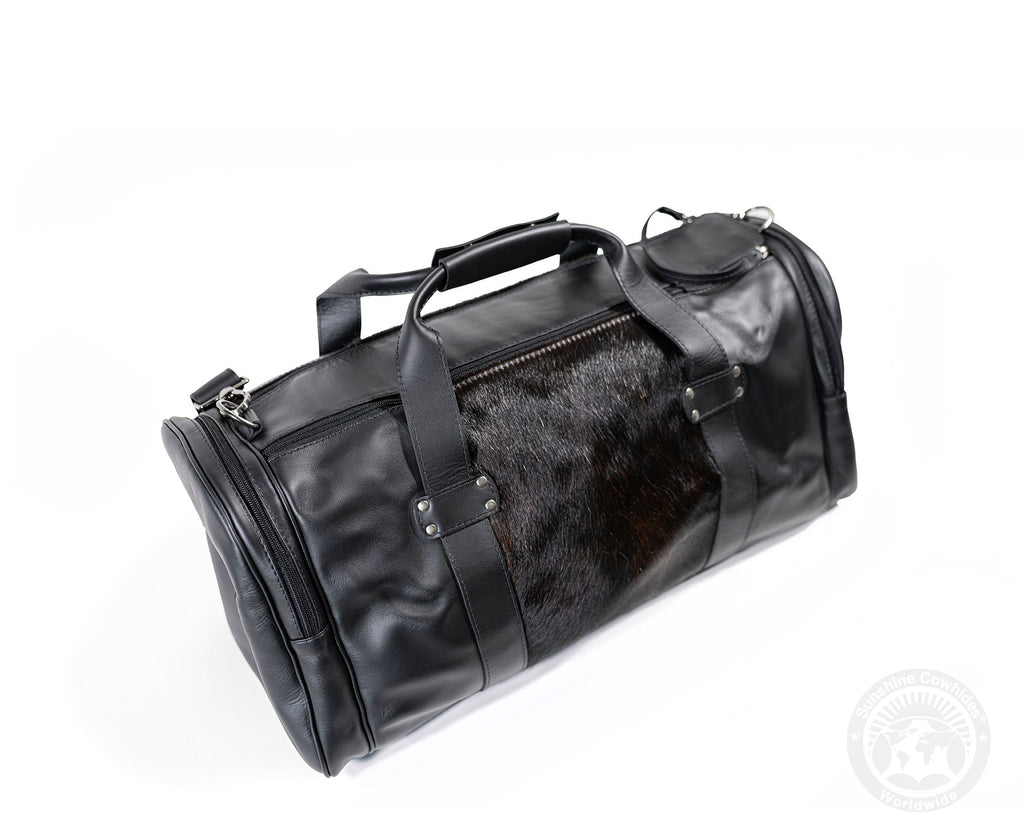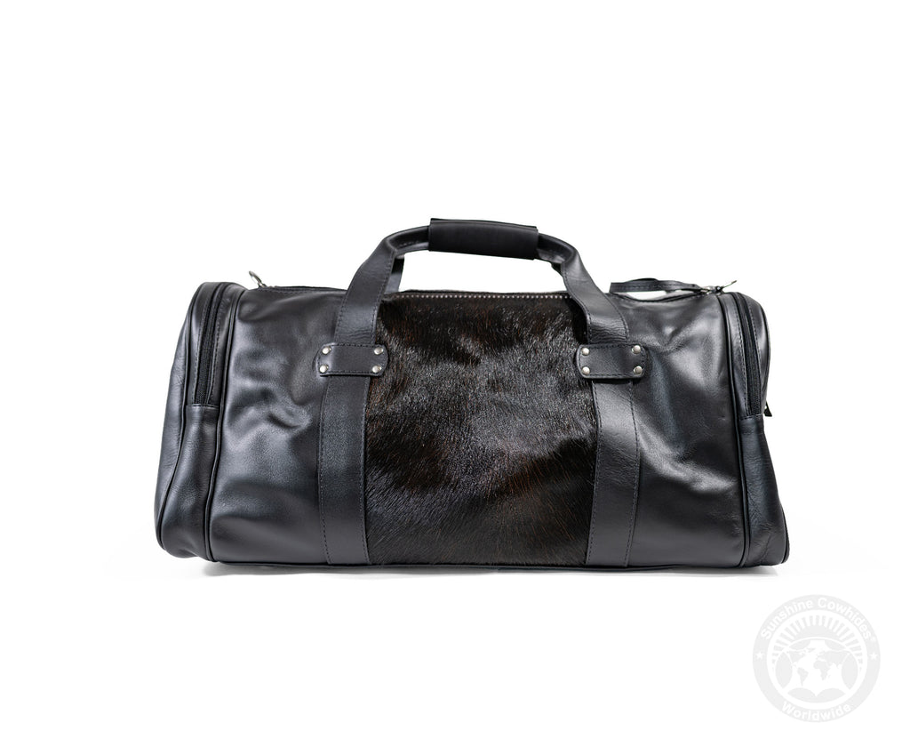 Black Leather Duffle Bag – Black Cowhide Accents