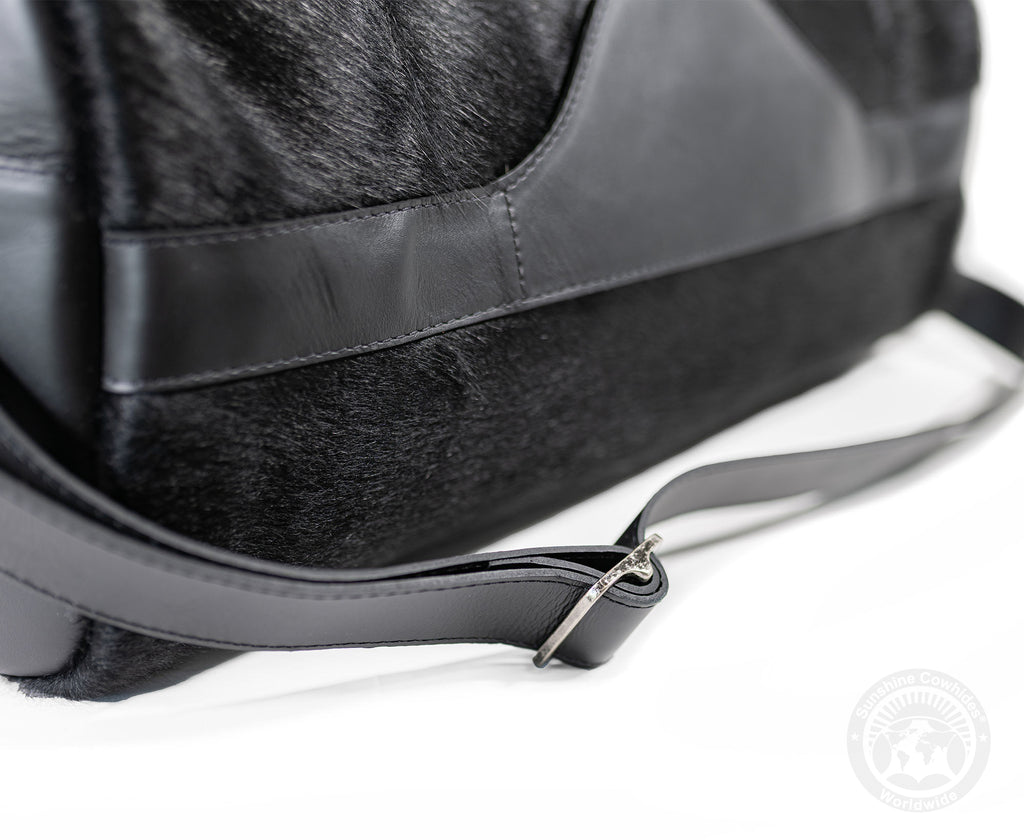 Each bag is made from premium leather and natural cowhide, making every piece one-of-a-kind with unique hide patterns and tones.