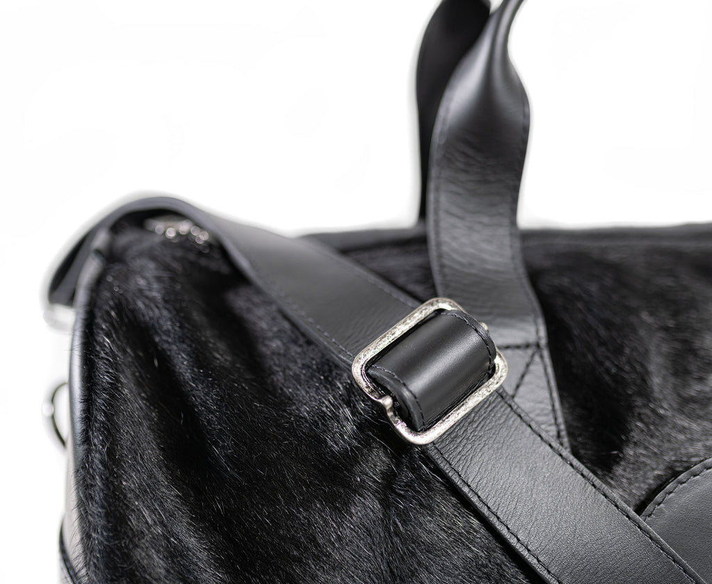 Black Leather Duffle Bag – Black Cowhide Accents