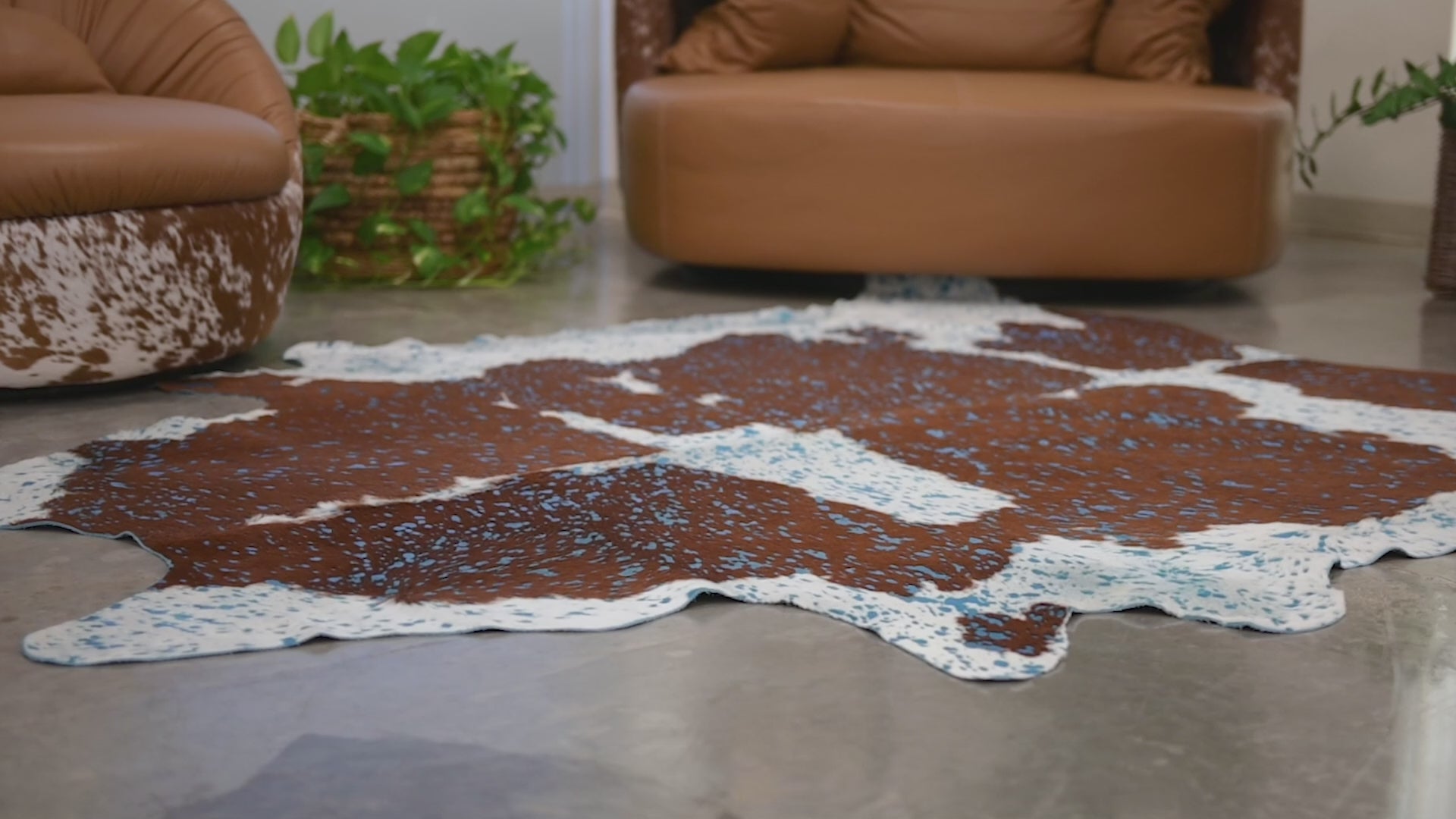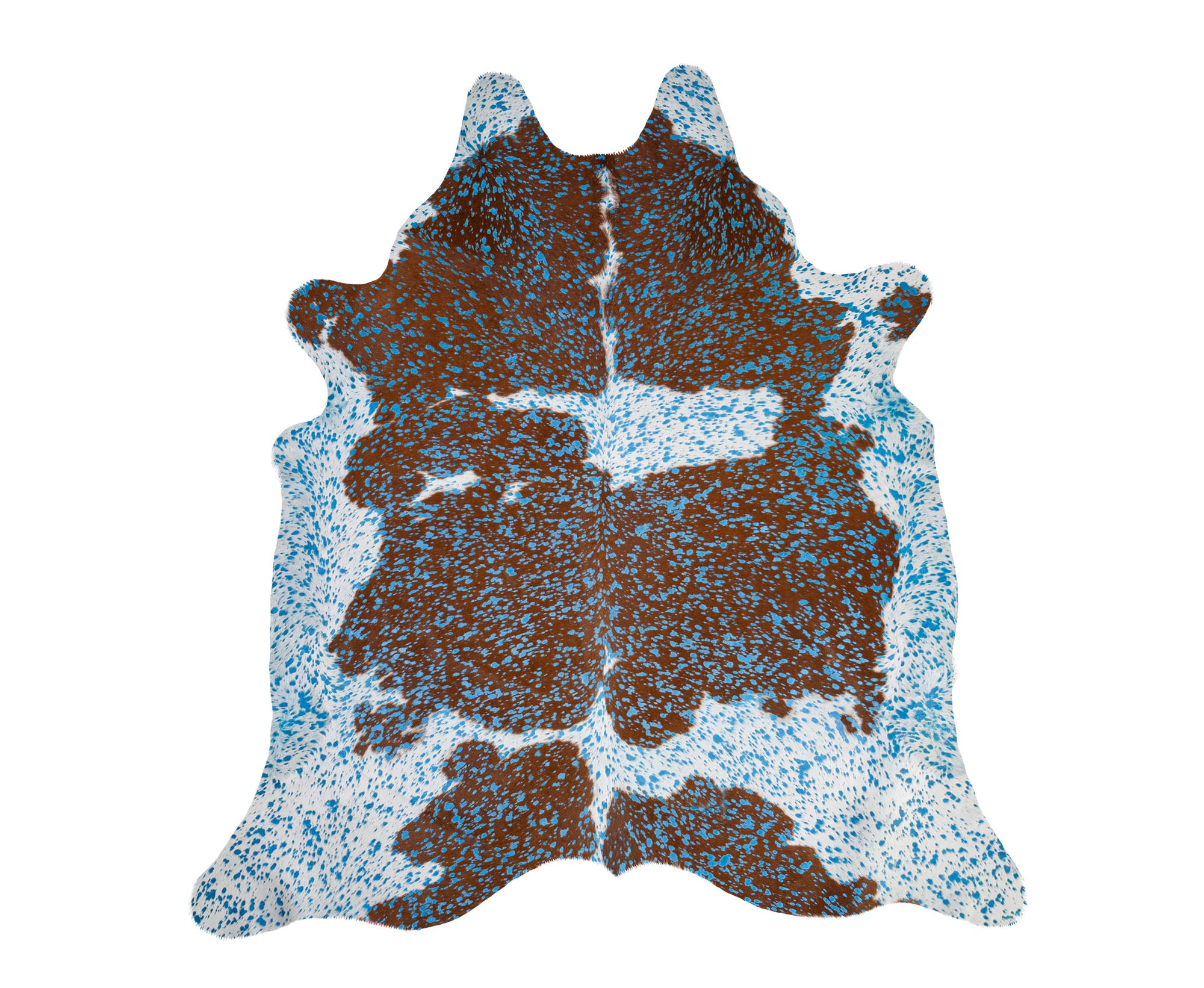 COWHIDE HAIR ON ACID WASH TURQUOISE ON BROWN AND WHITE CLOUDED