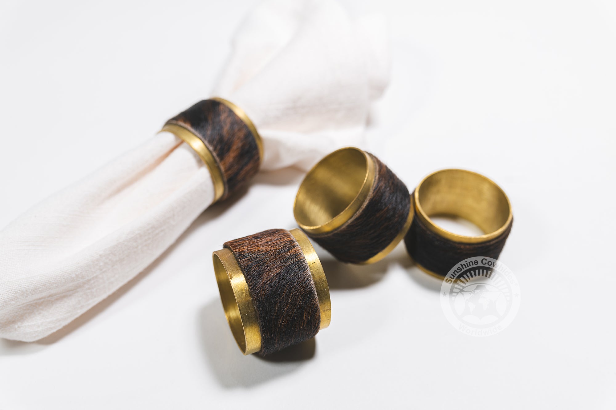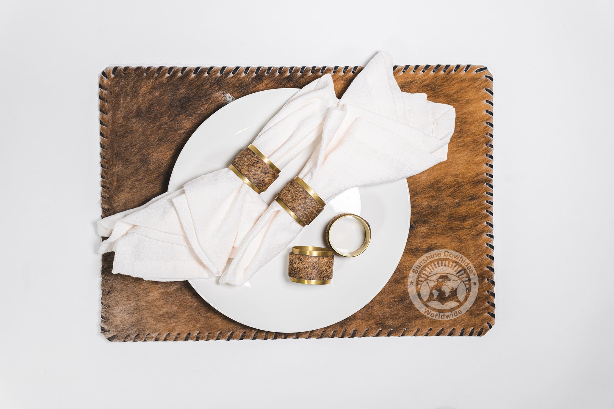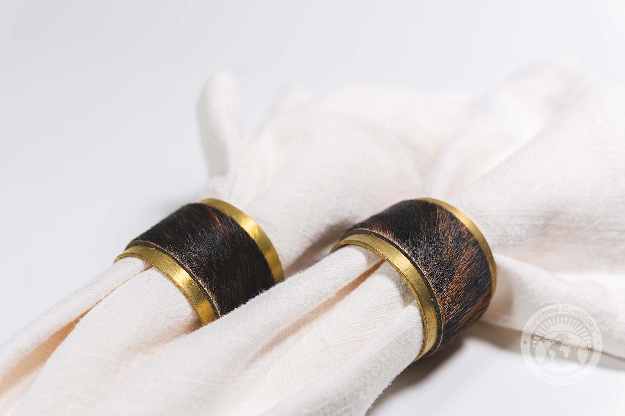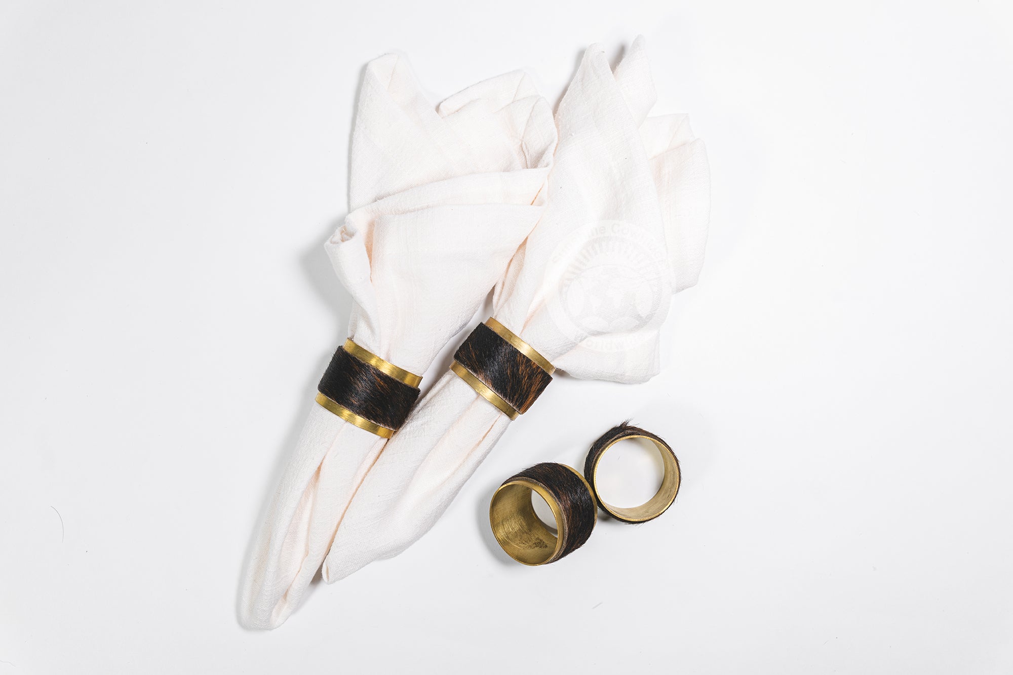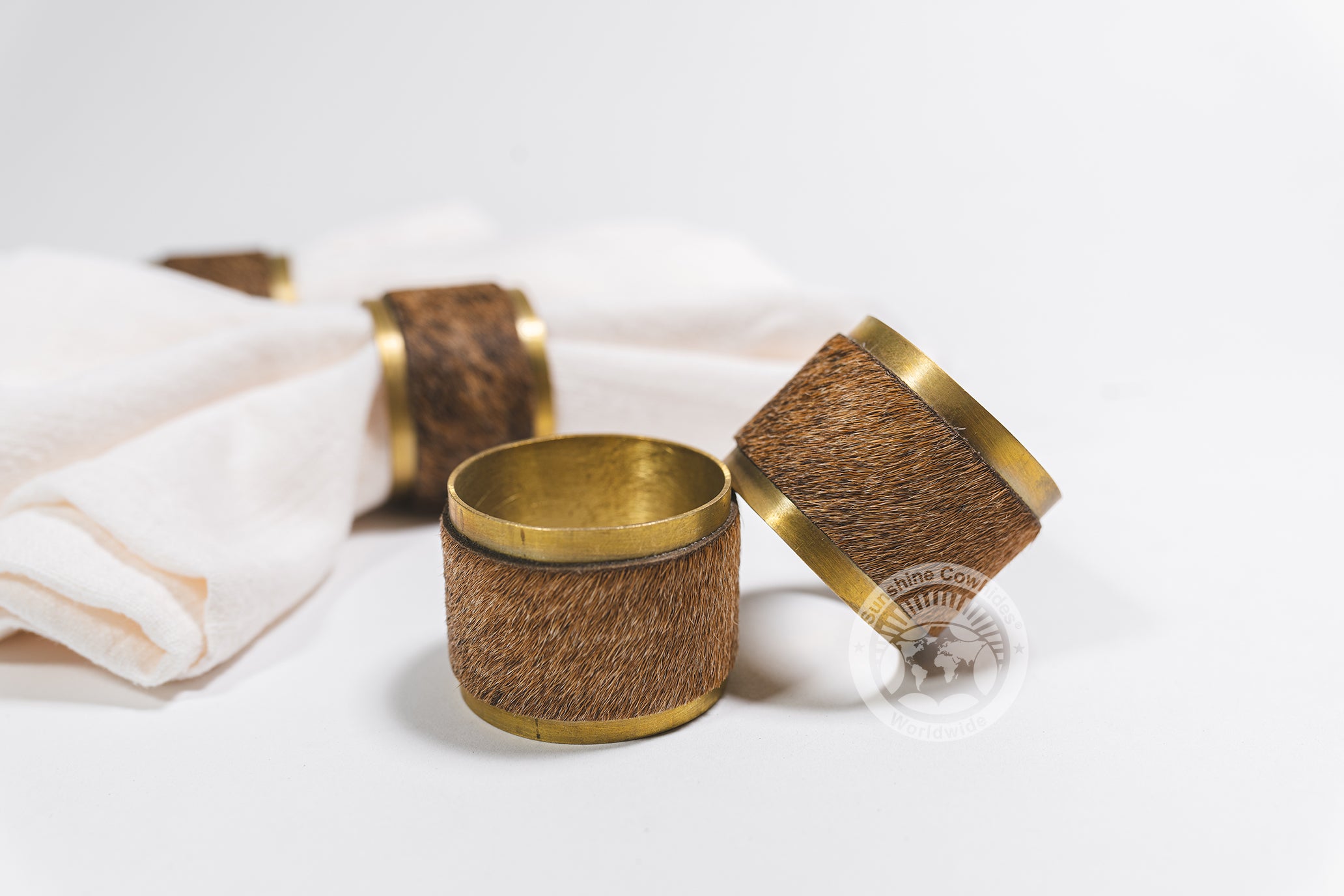 Cowhide Napkin Holder/Rings - Rustic Copper + Cowhide