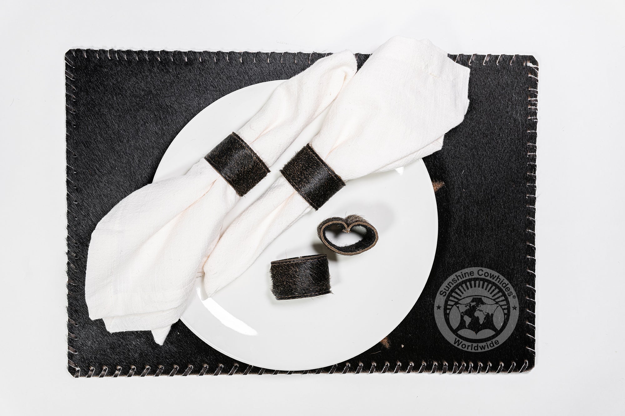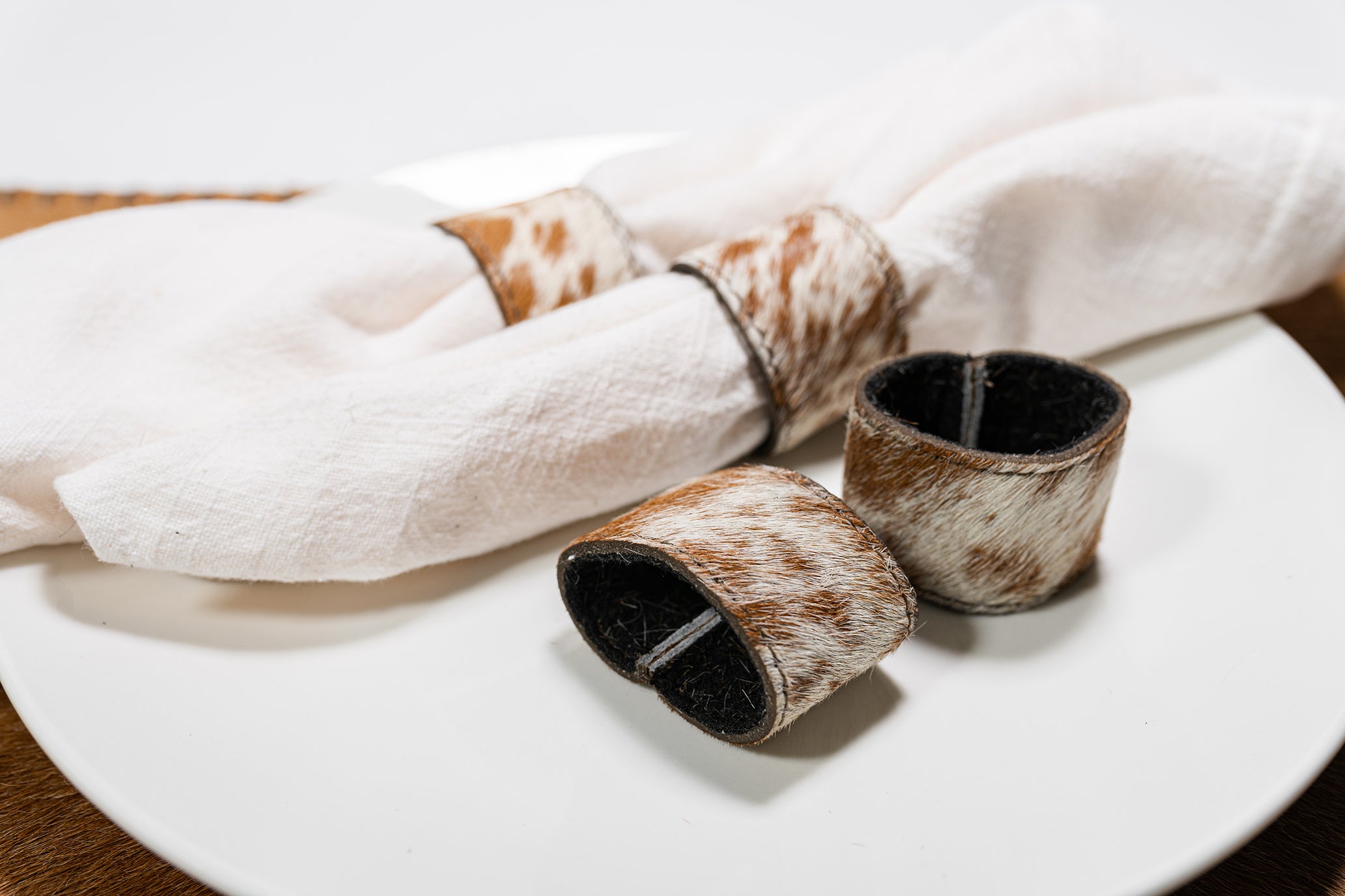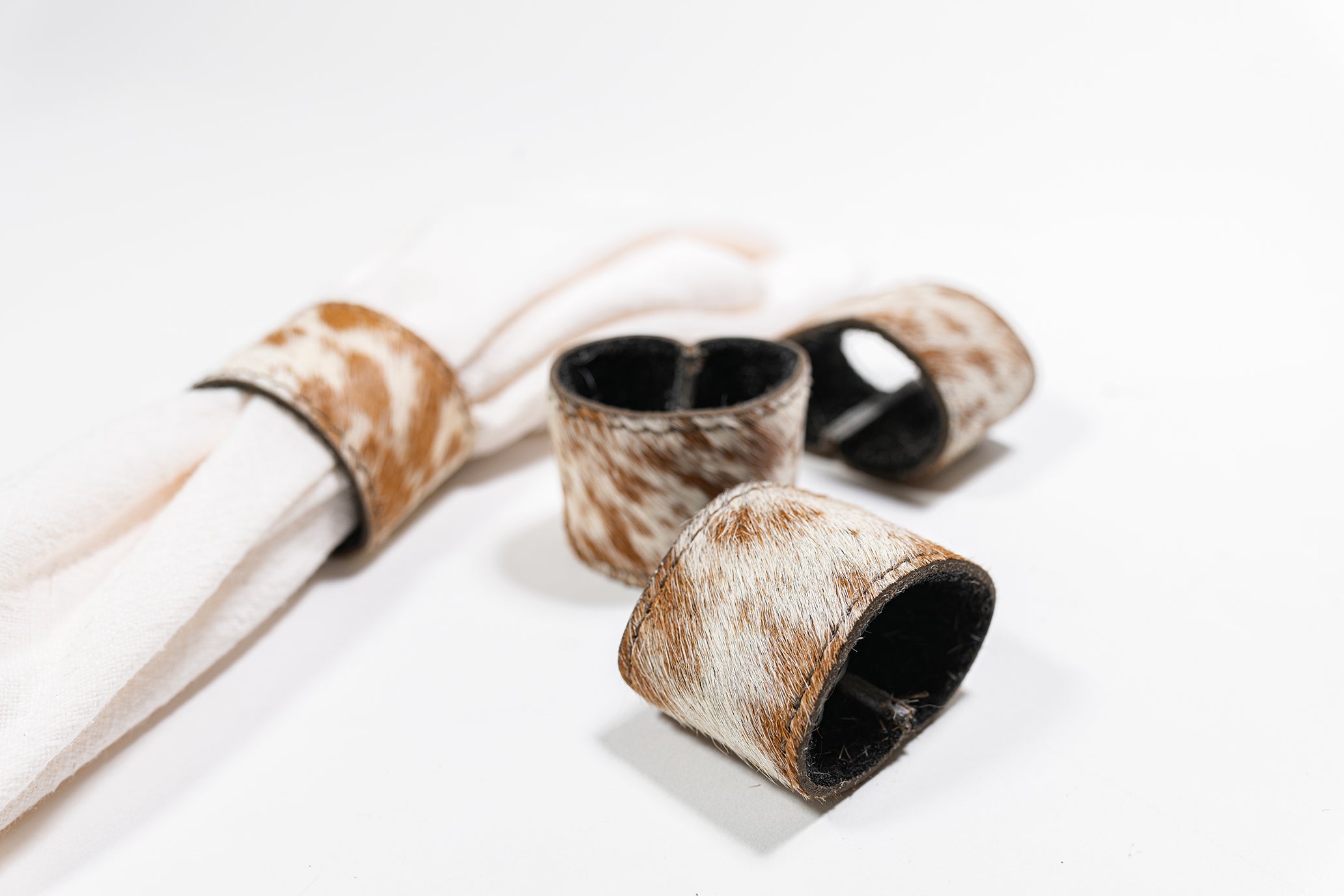 Cowhide Napkin Ring, Napkin Holder - SET OF 4