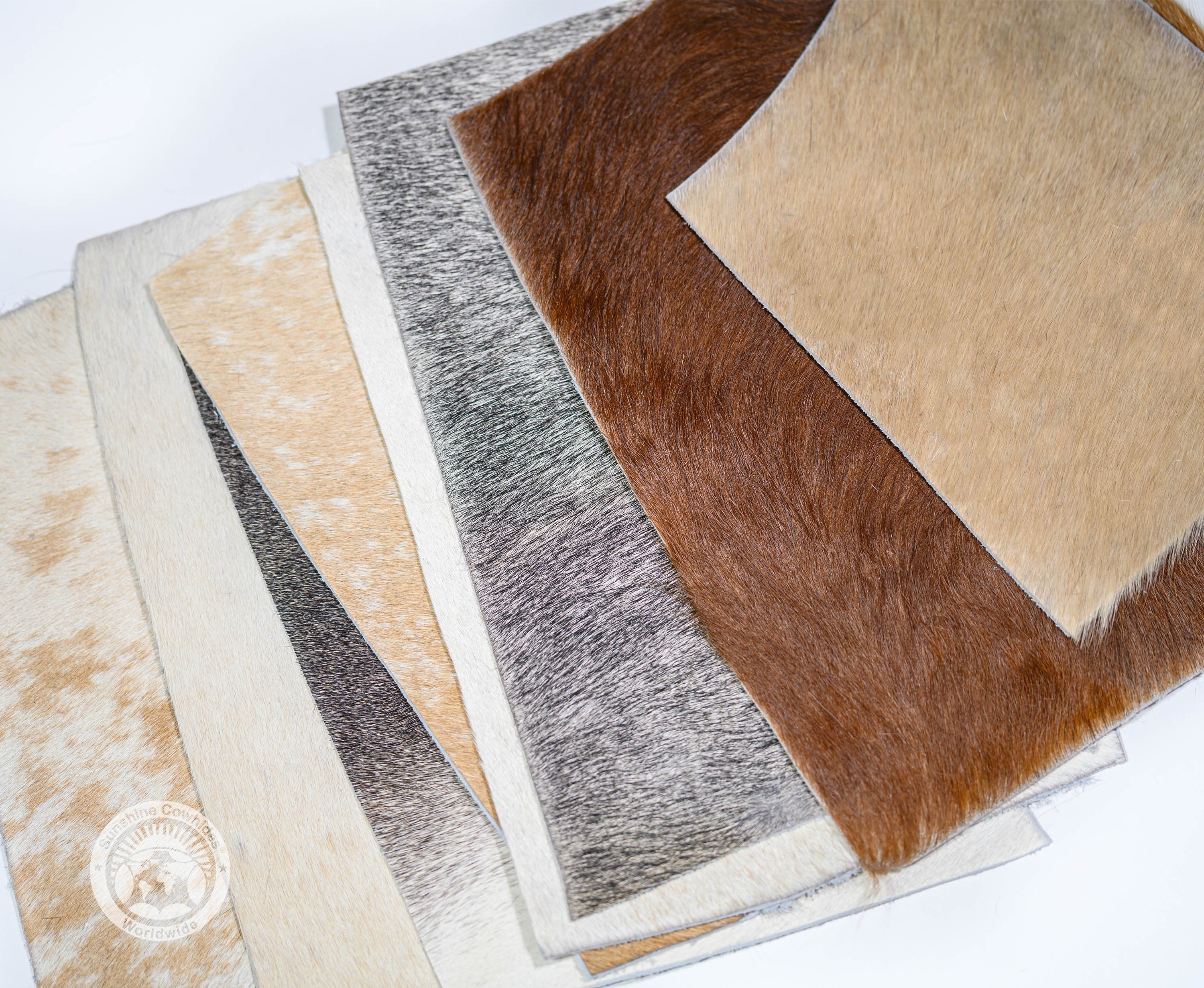 Cowhide Ottoman Patchwork Brindle Medium - Dark Mix