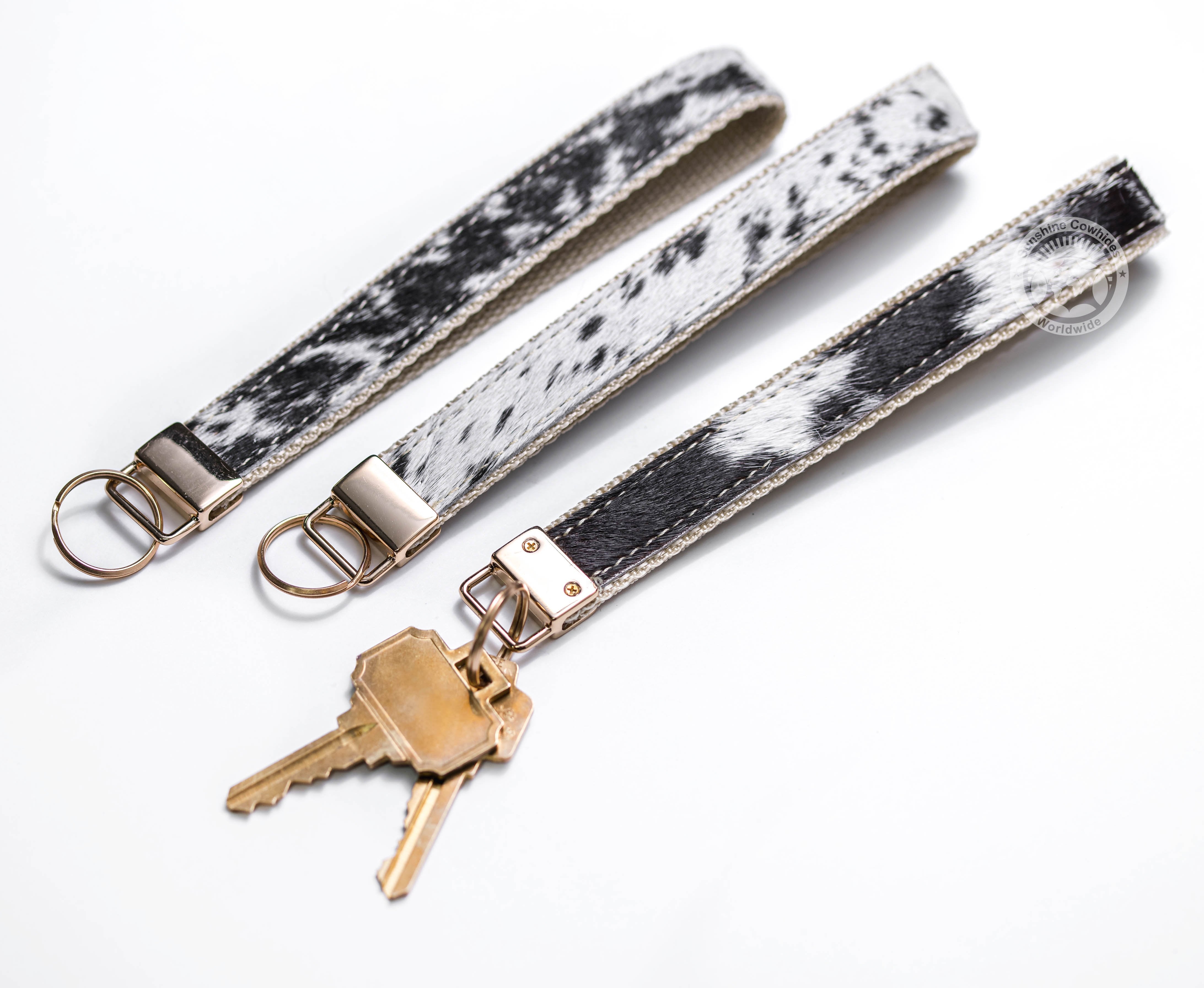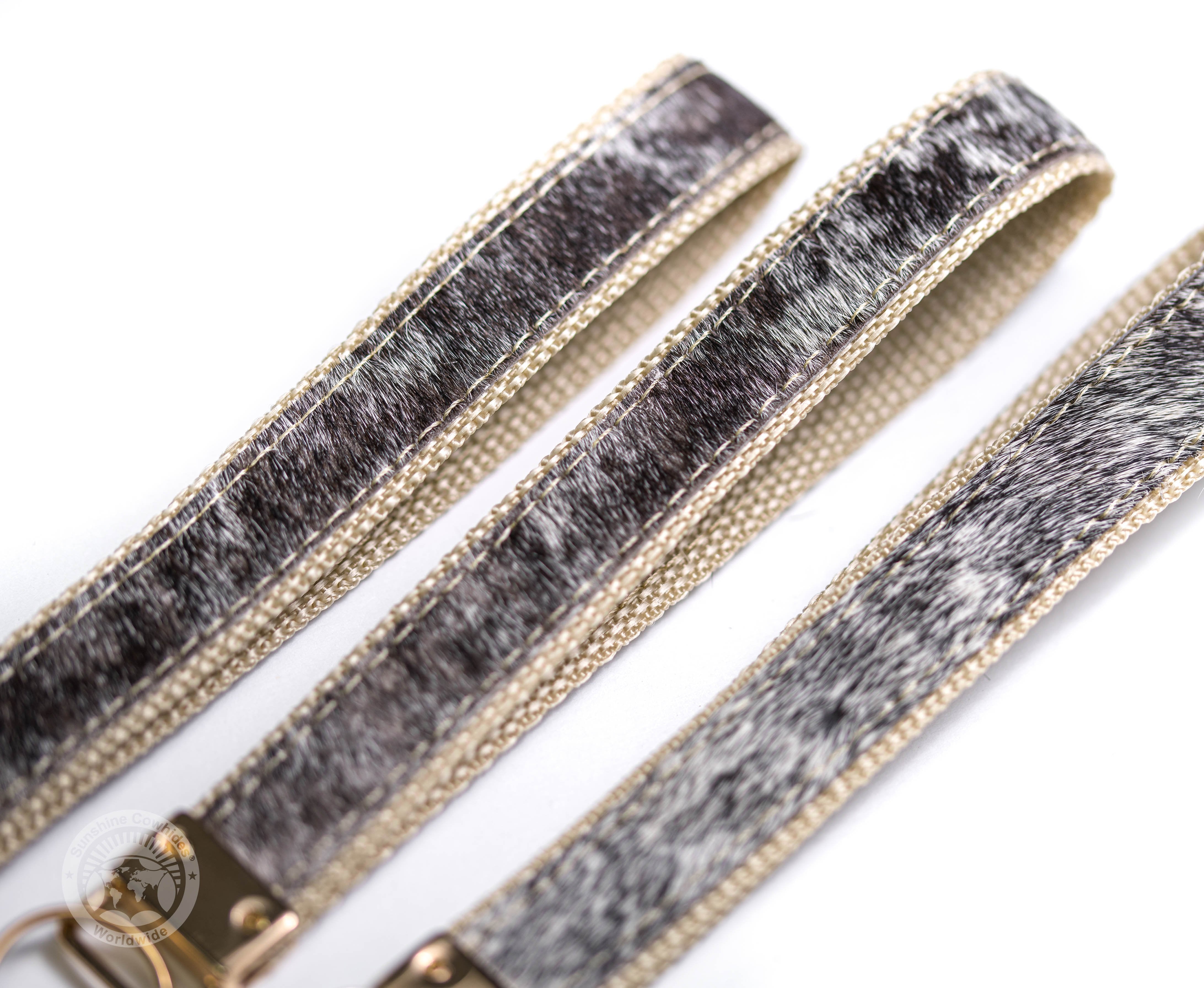 Cowhide Wrist Strap - Salt & Pepper Black Keychain