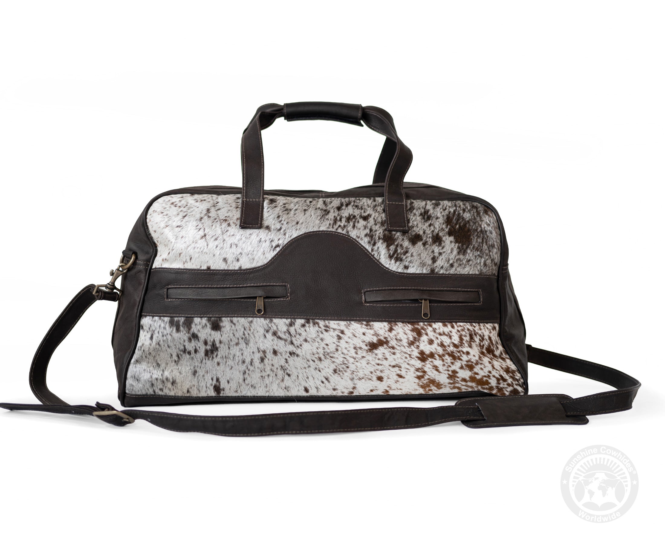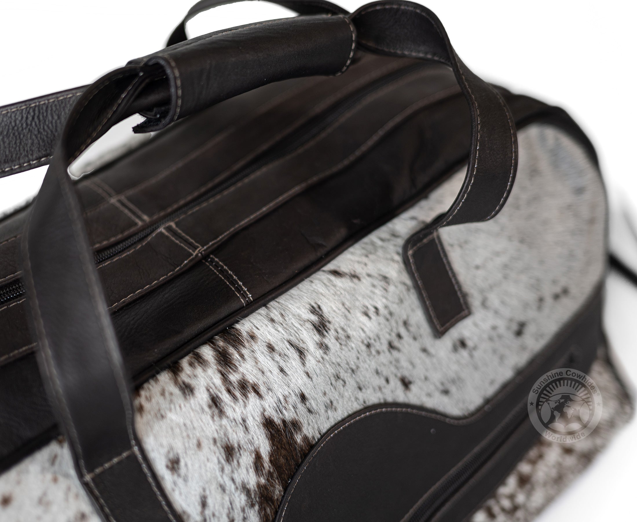Brown Leather Duffle Bag – Salt and Pepper Cowhide Accents