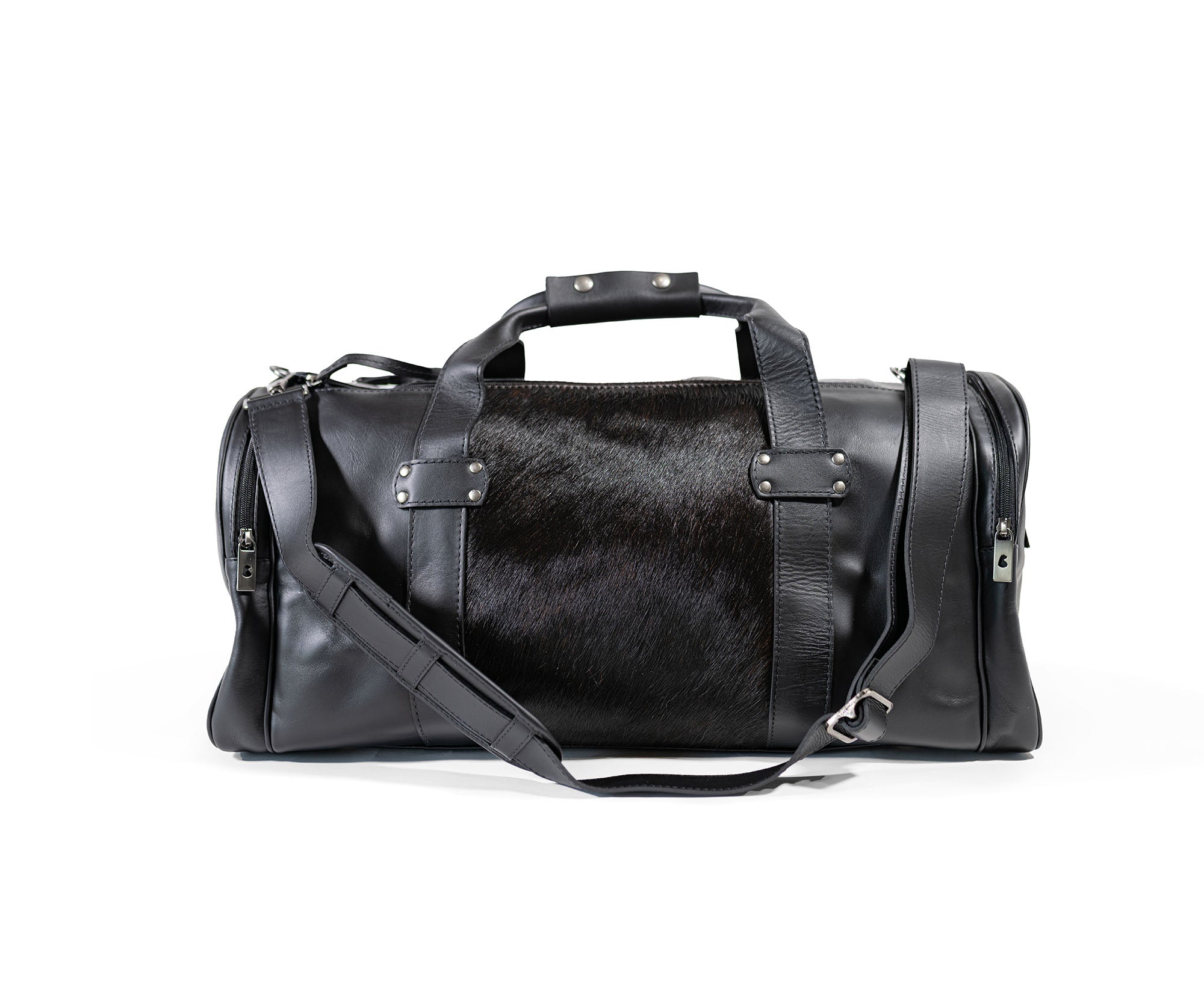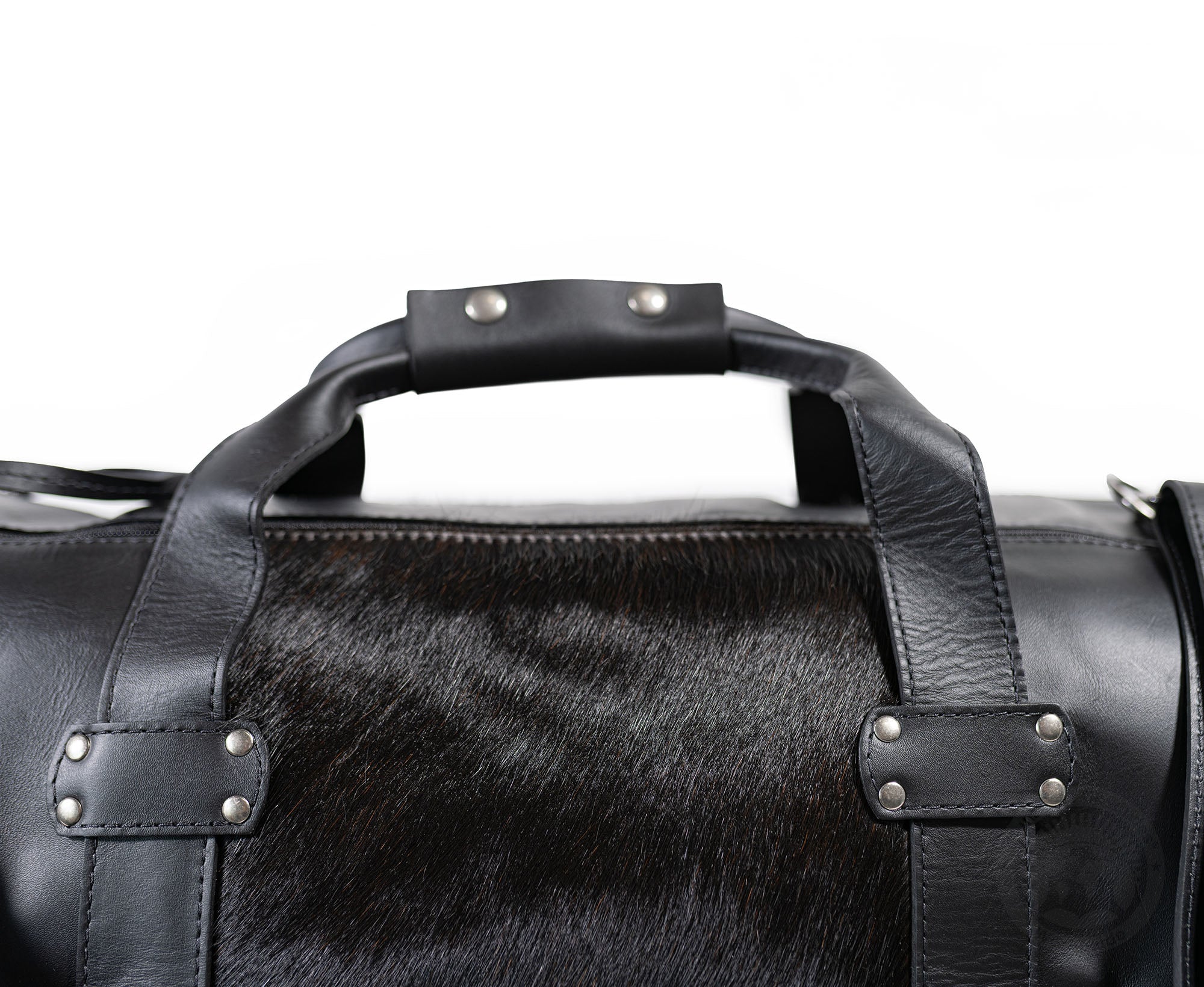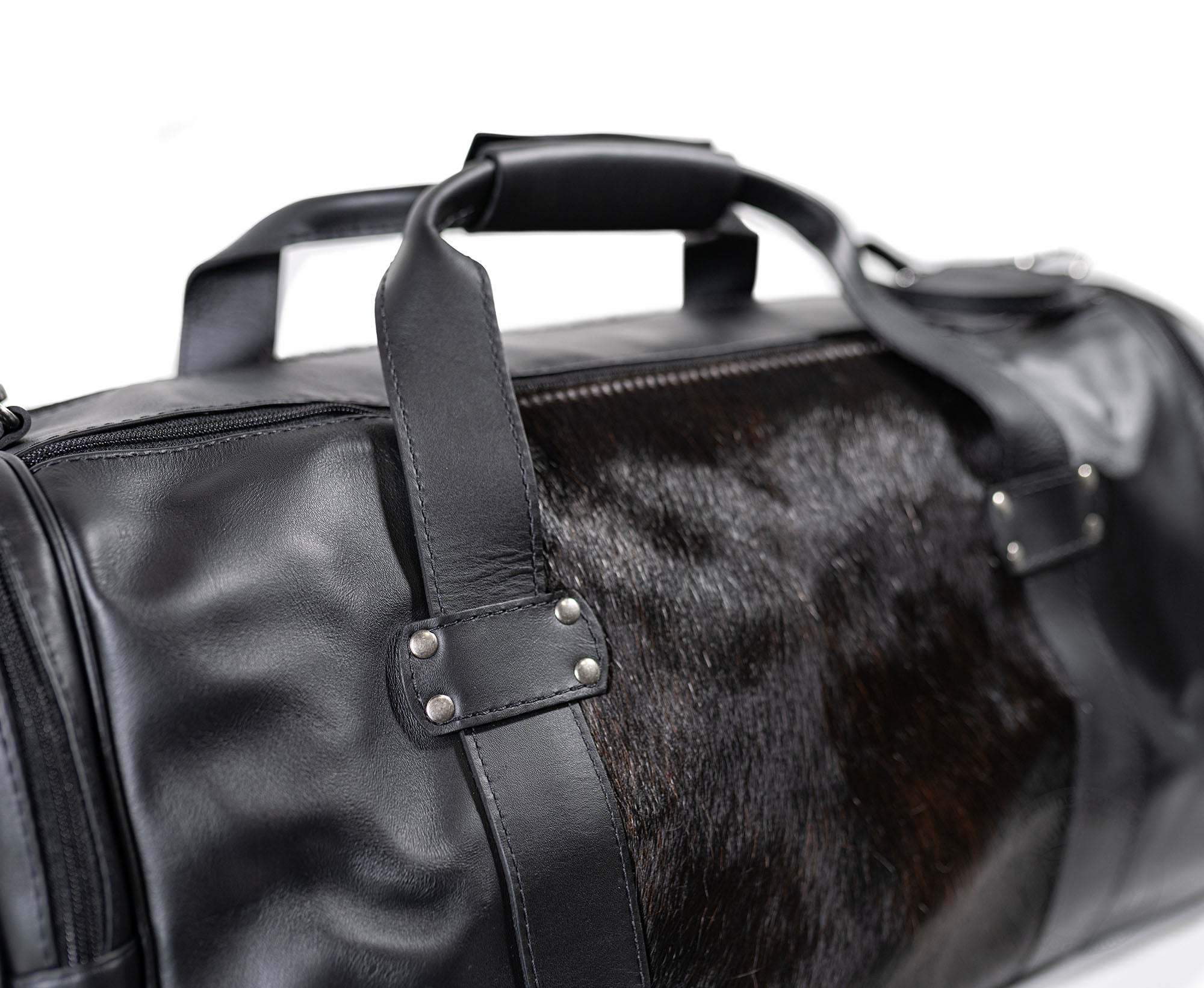 Black Leather Duffle Bag – Black Cowhide Accents
