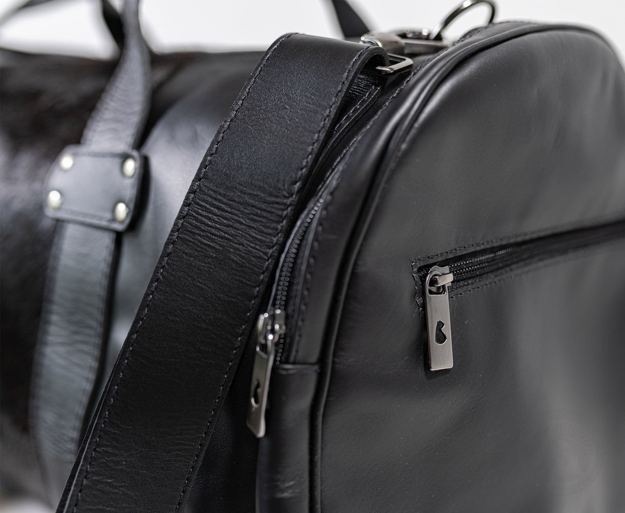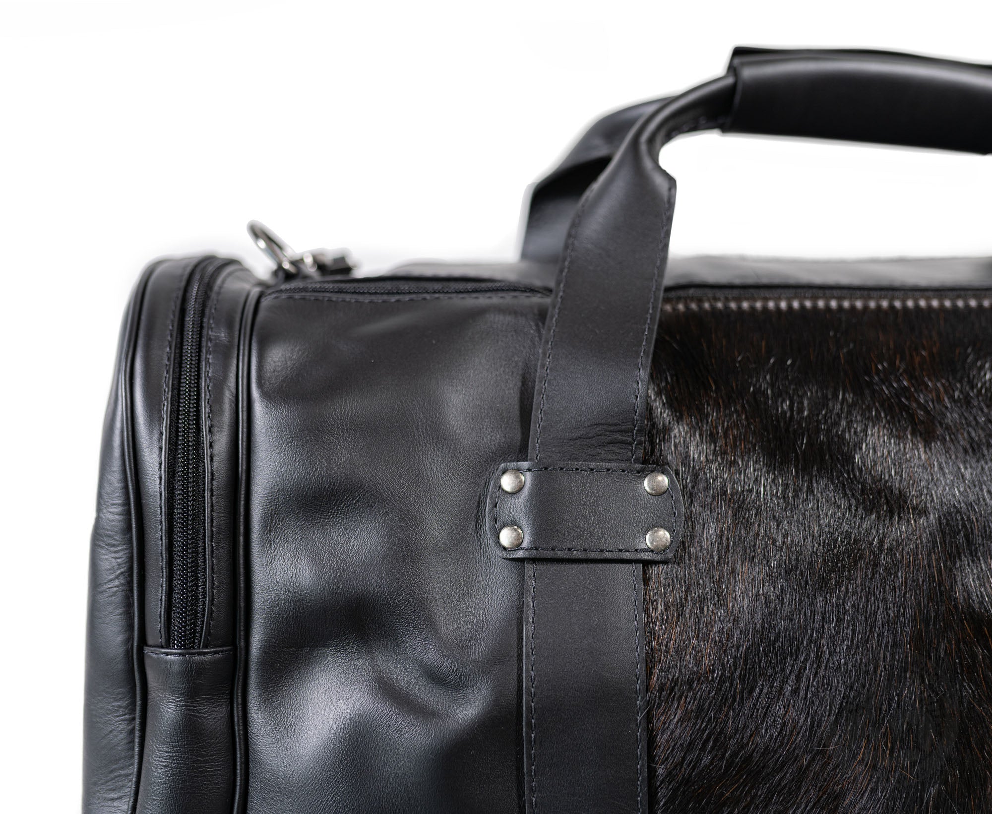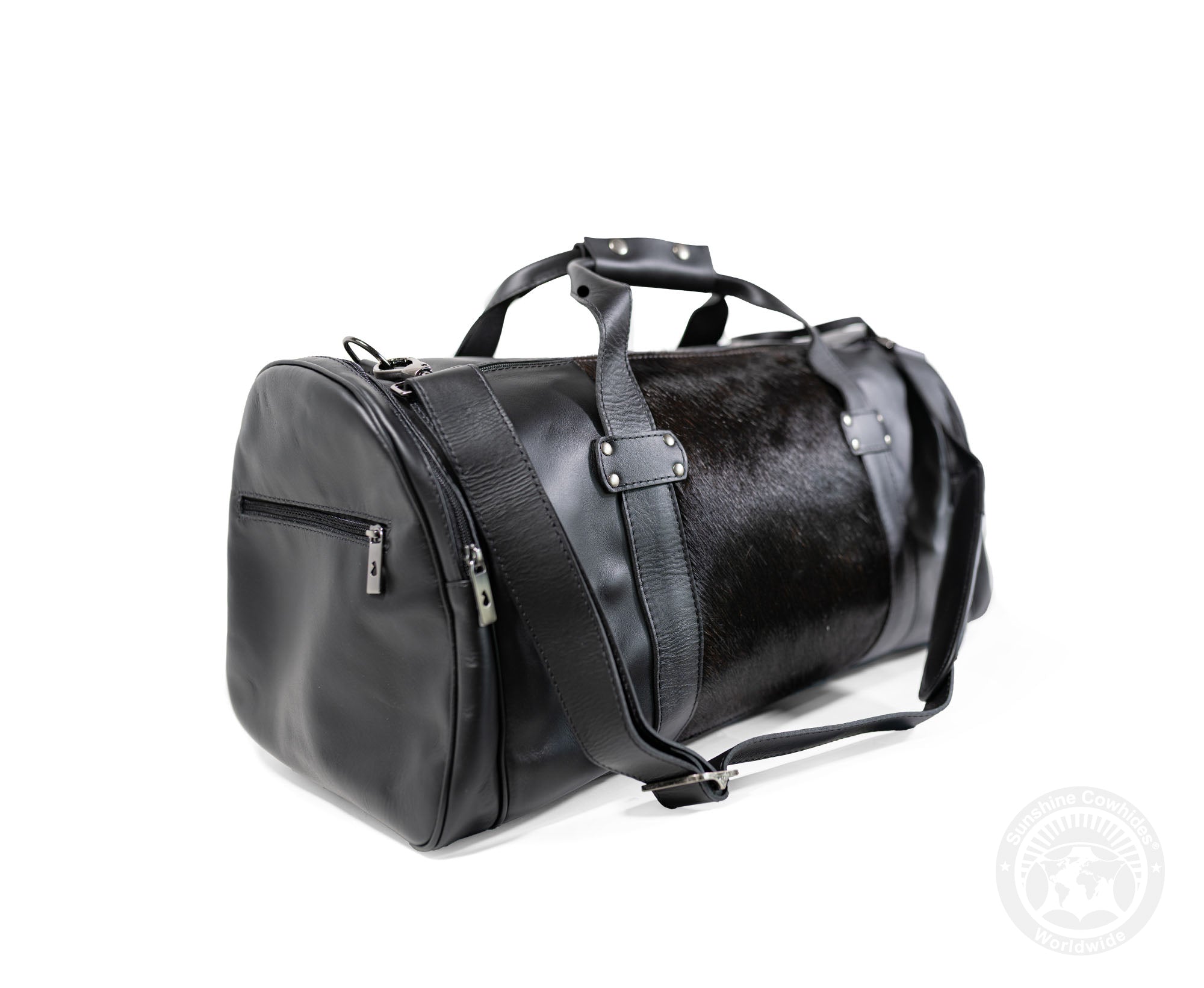 Black Leather Duffle Bag – Black Cowhide Accents