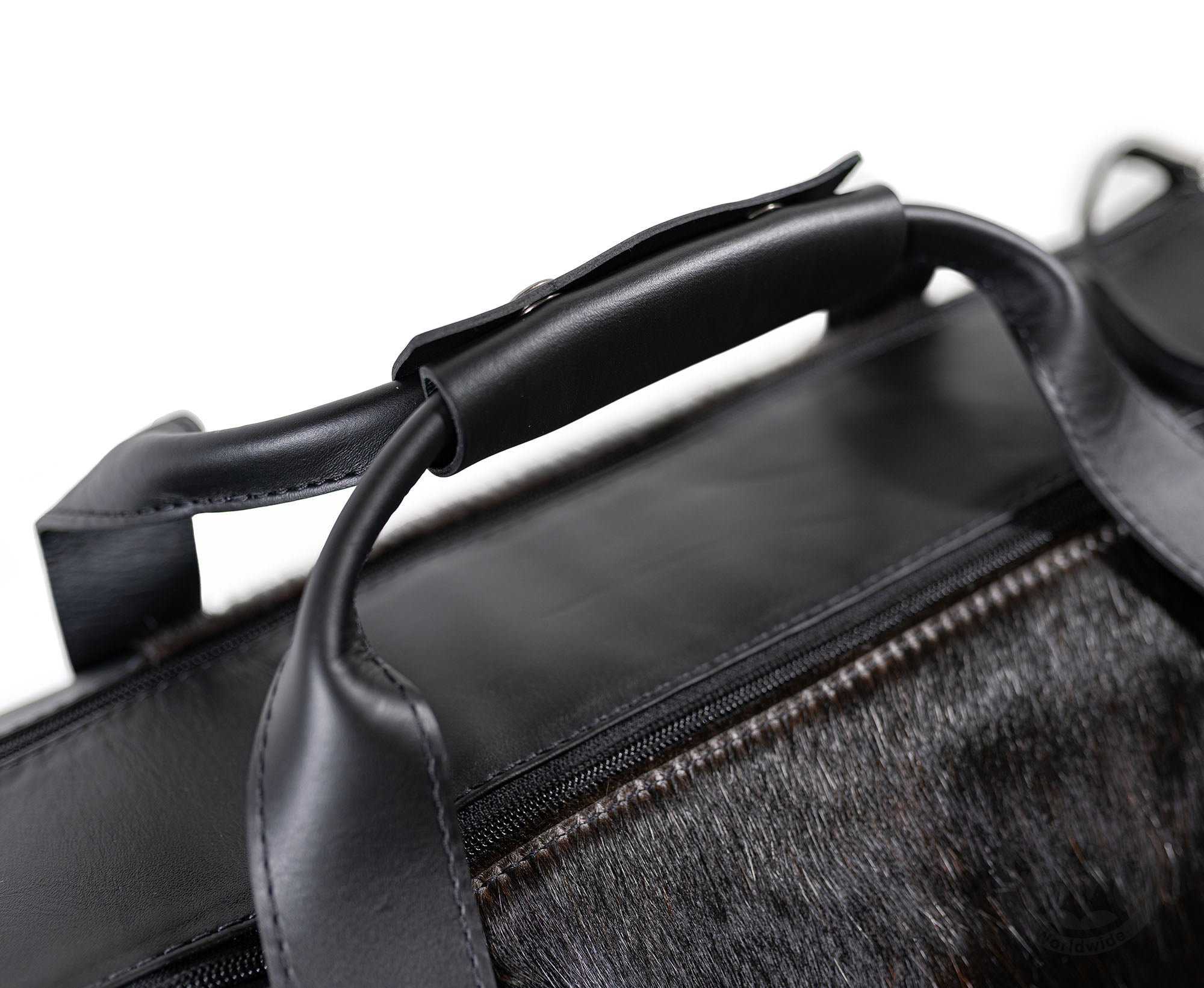 Each bag is made from premium leather and natural cowhide, making every piece one-of-a-kind with unique hide patterns and tones.