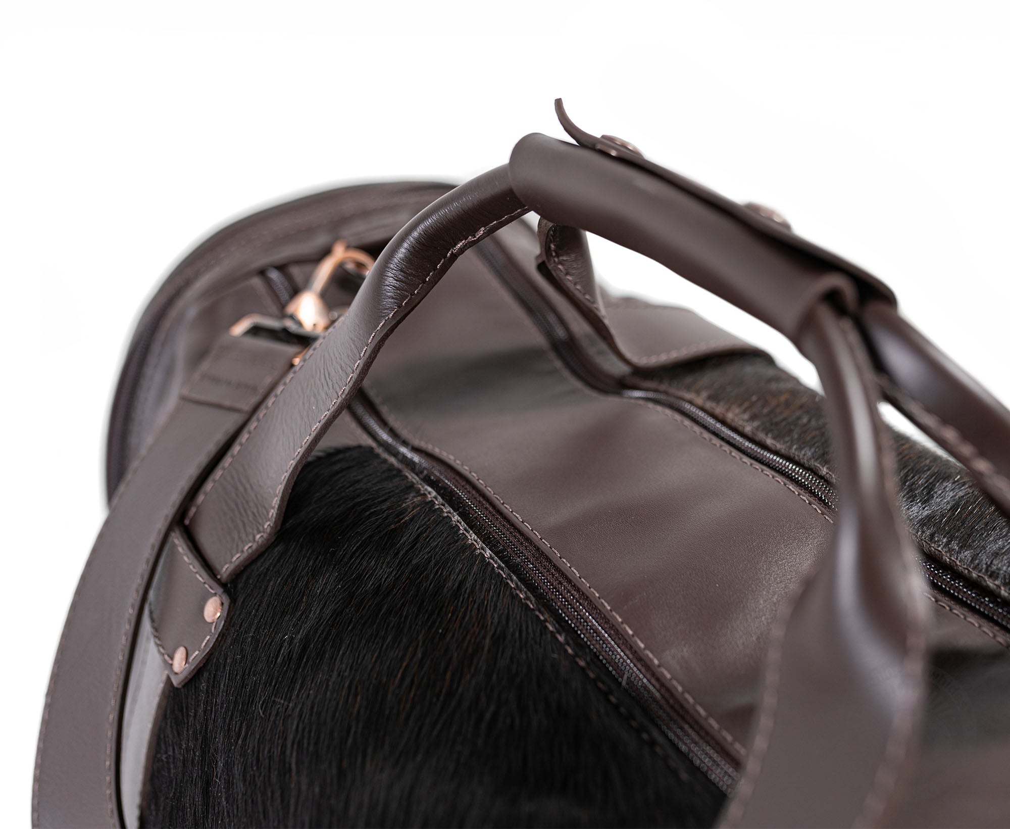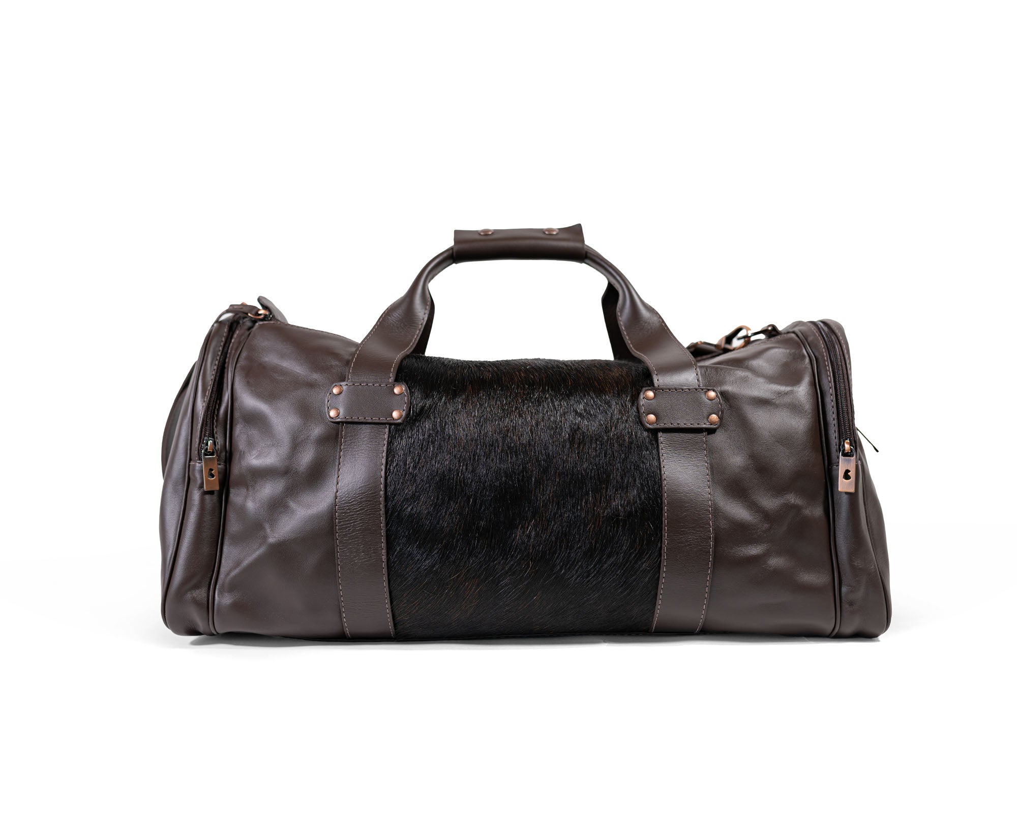 Brown Leather Duffle Bag – Black Cowhide Accents