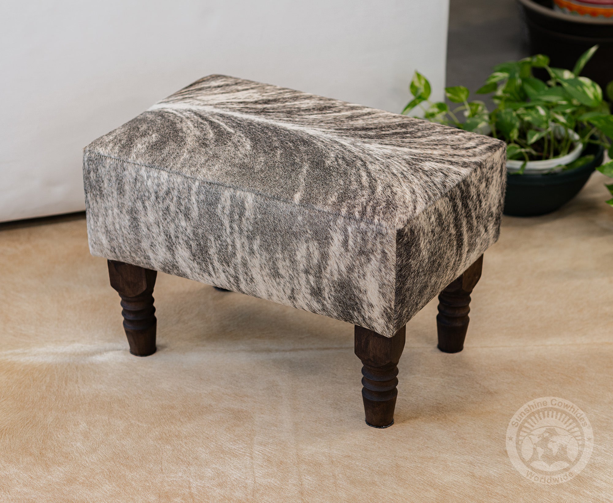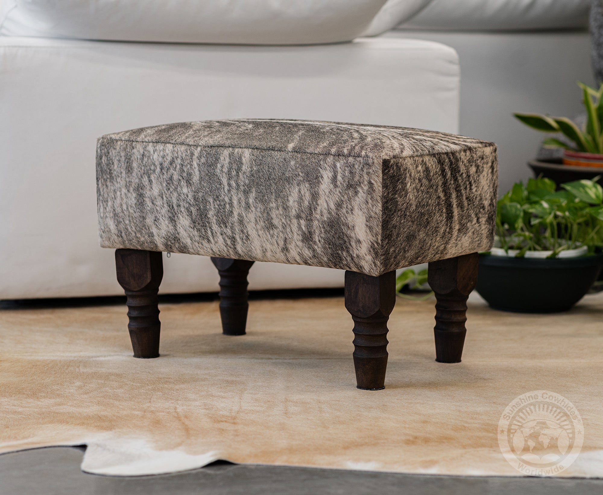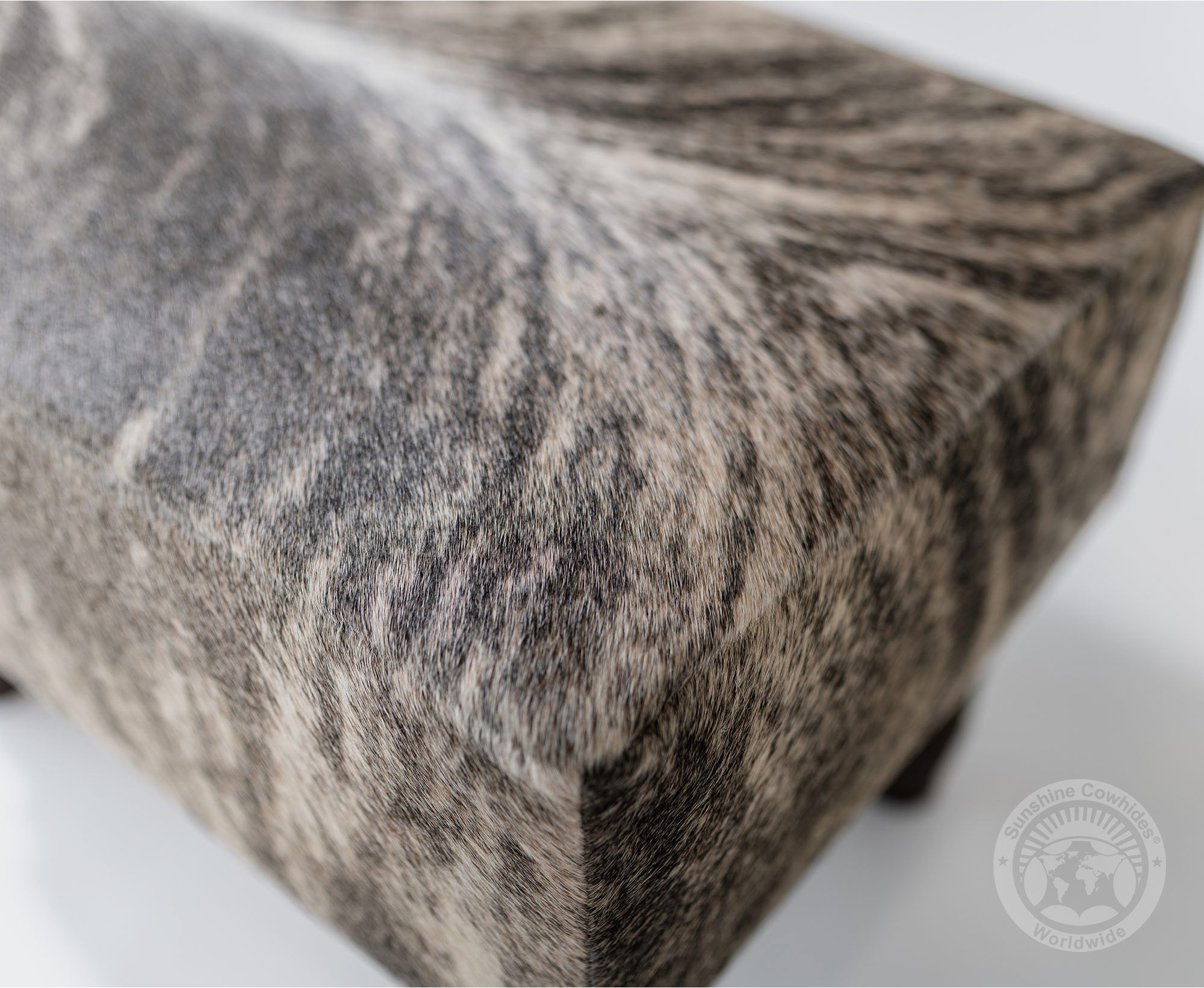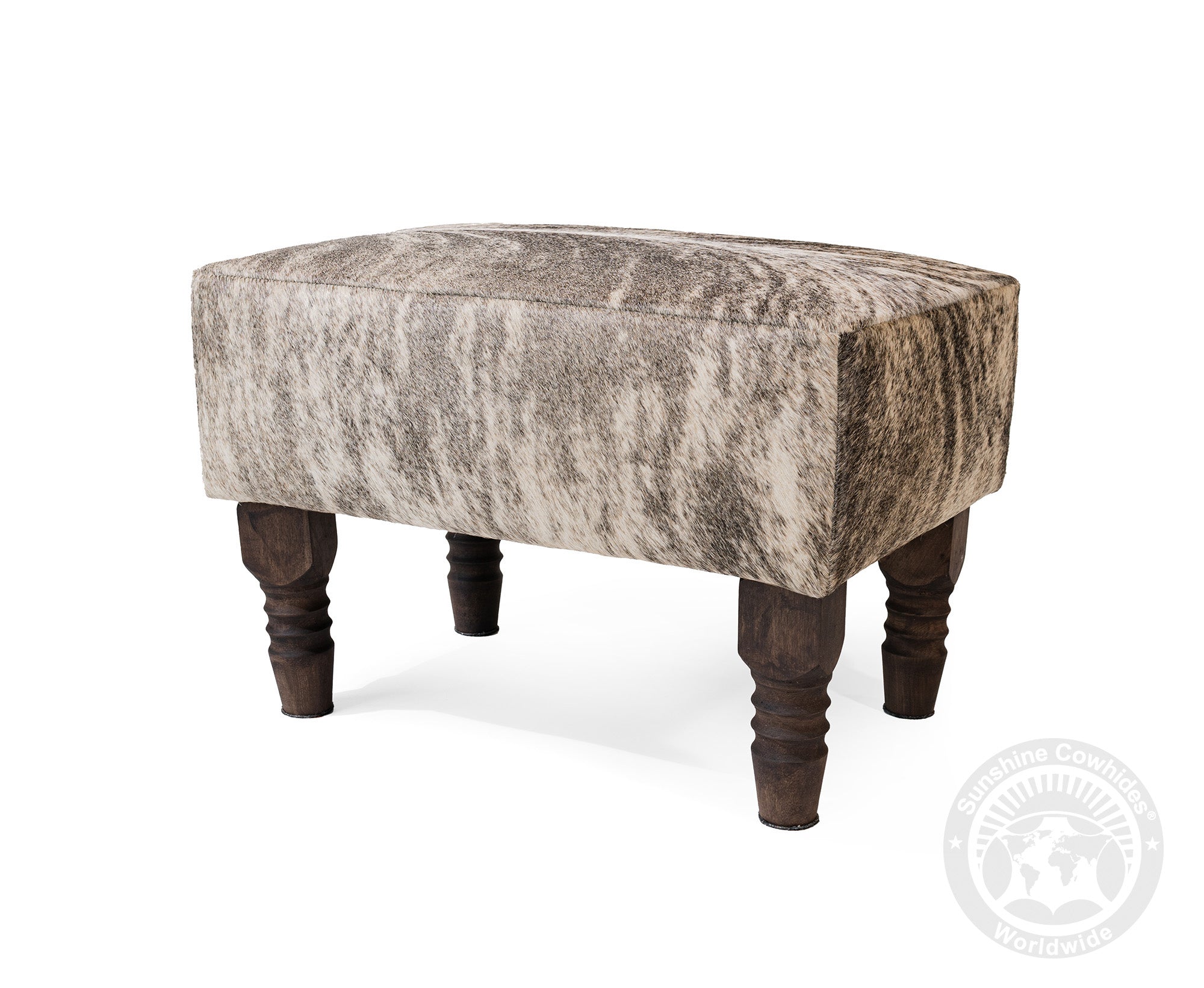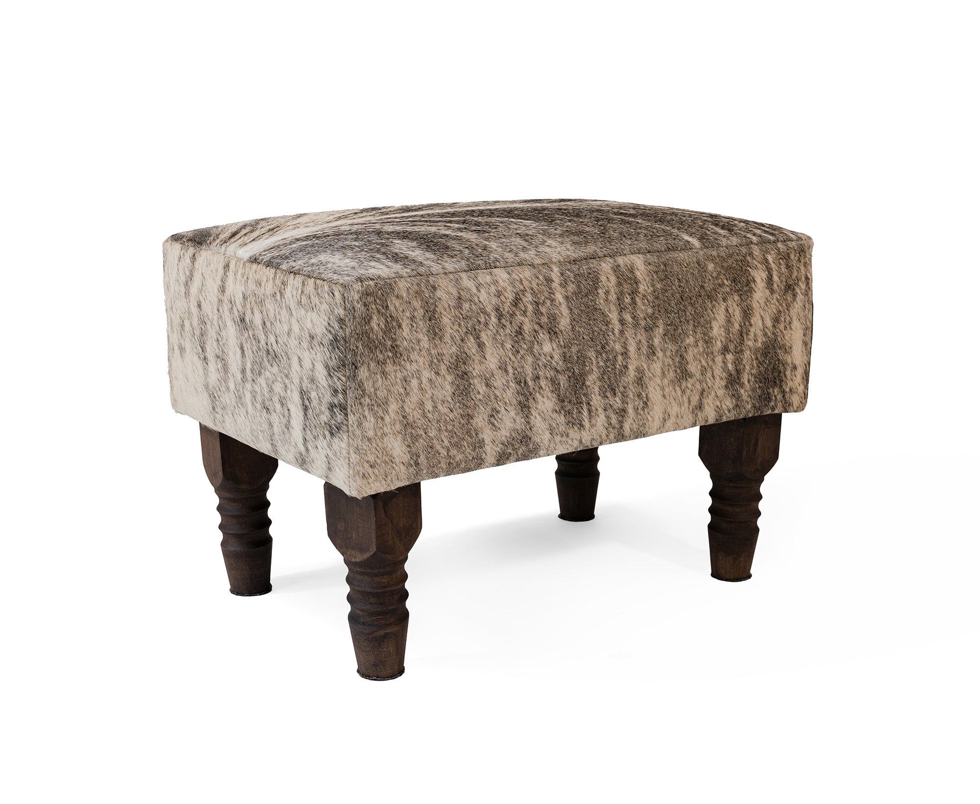 Cowhide Footstool with Wooden Legs - BRINDLE LIGHT GREY - BEIGE MIX