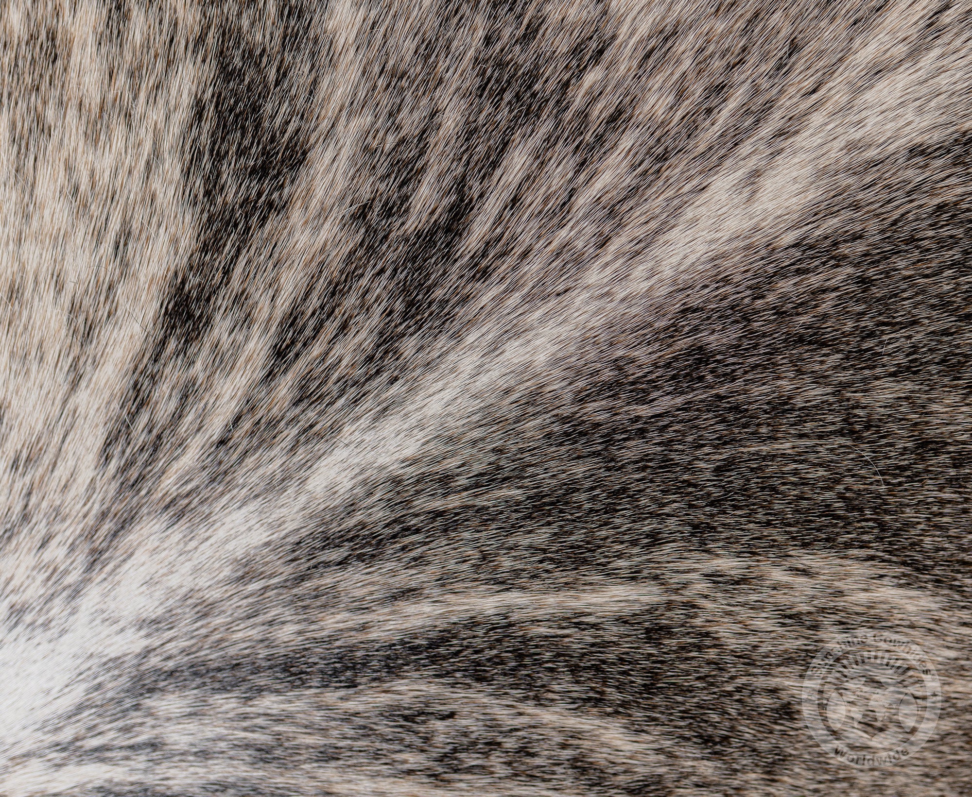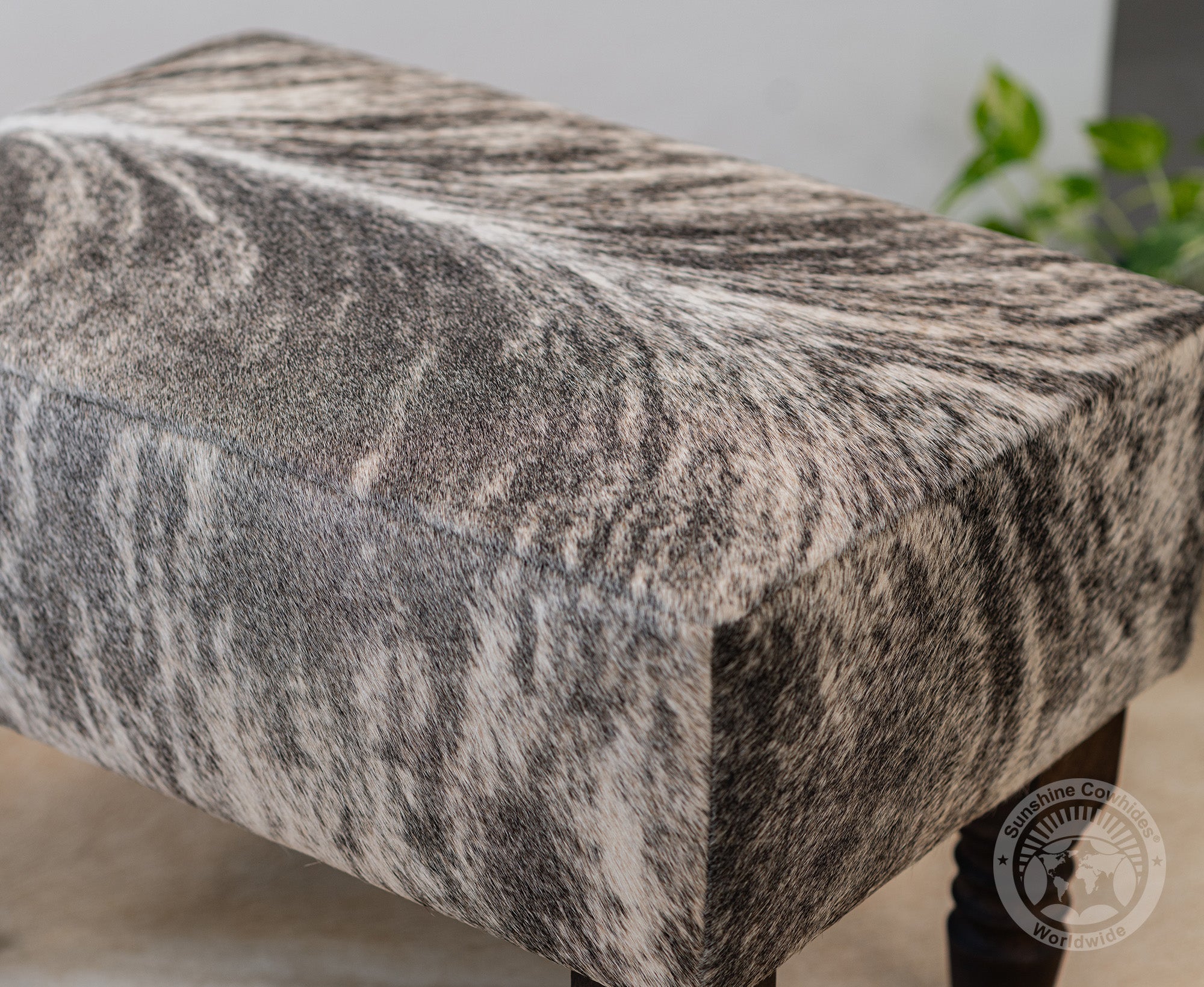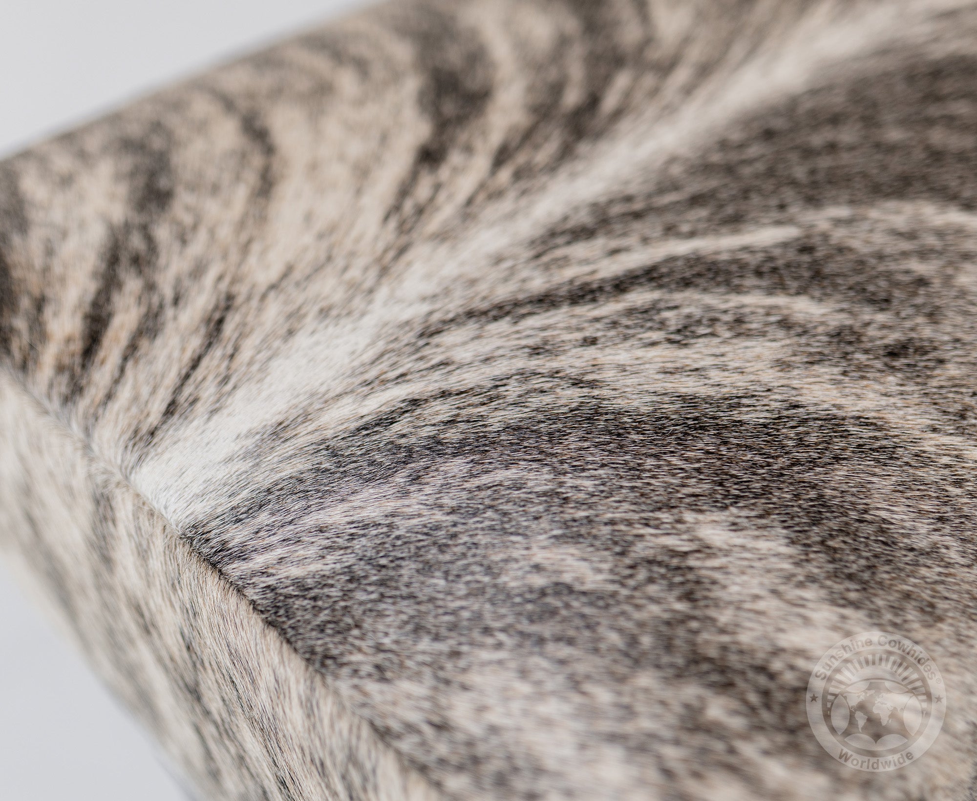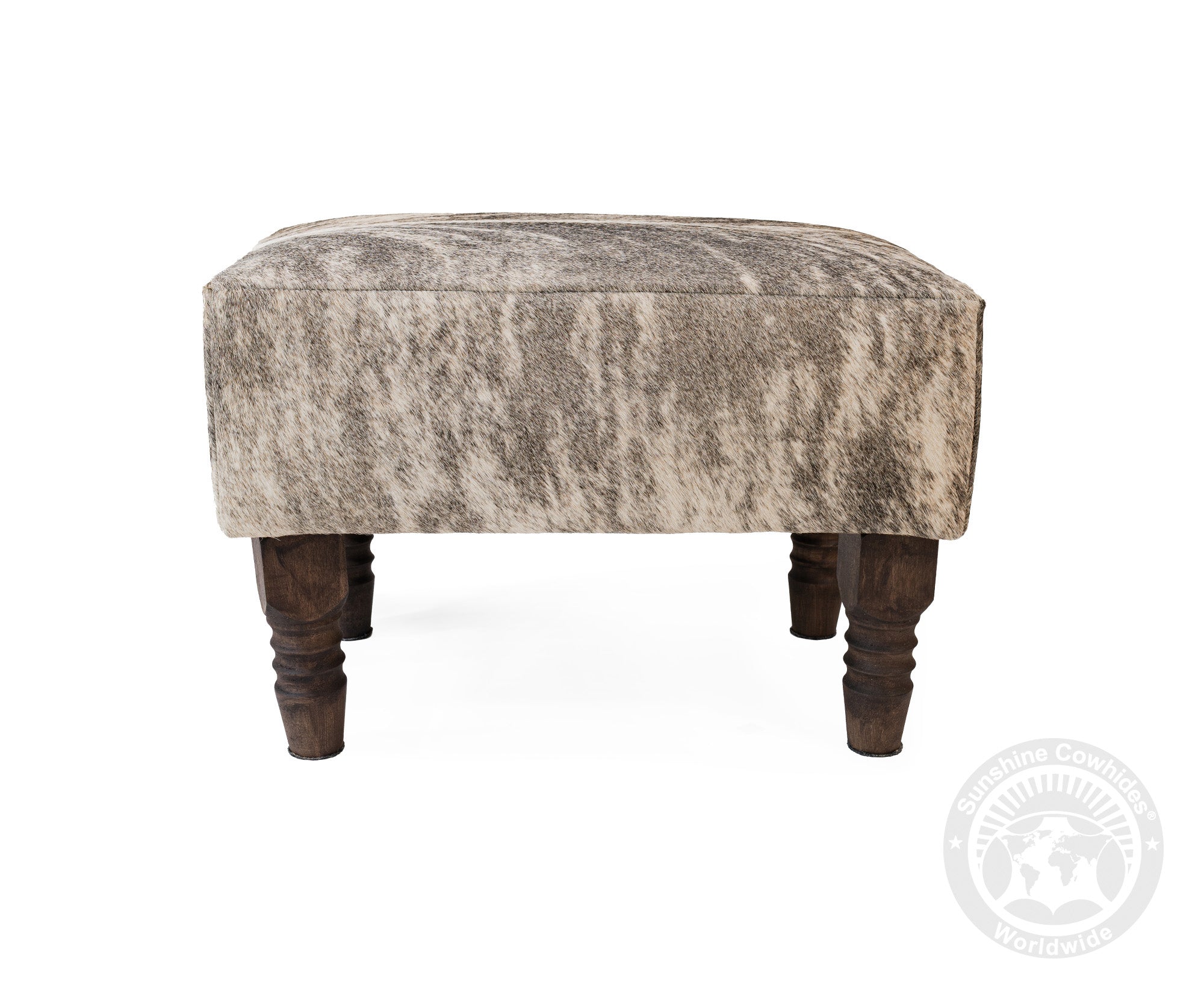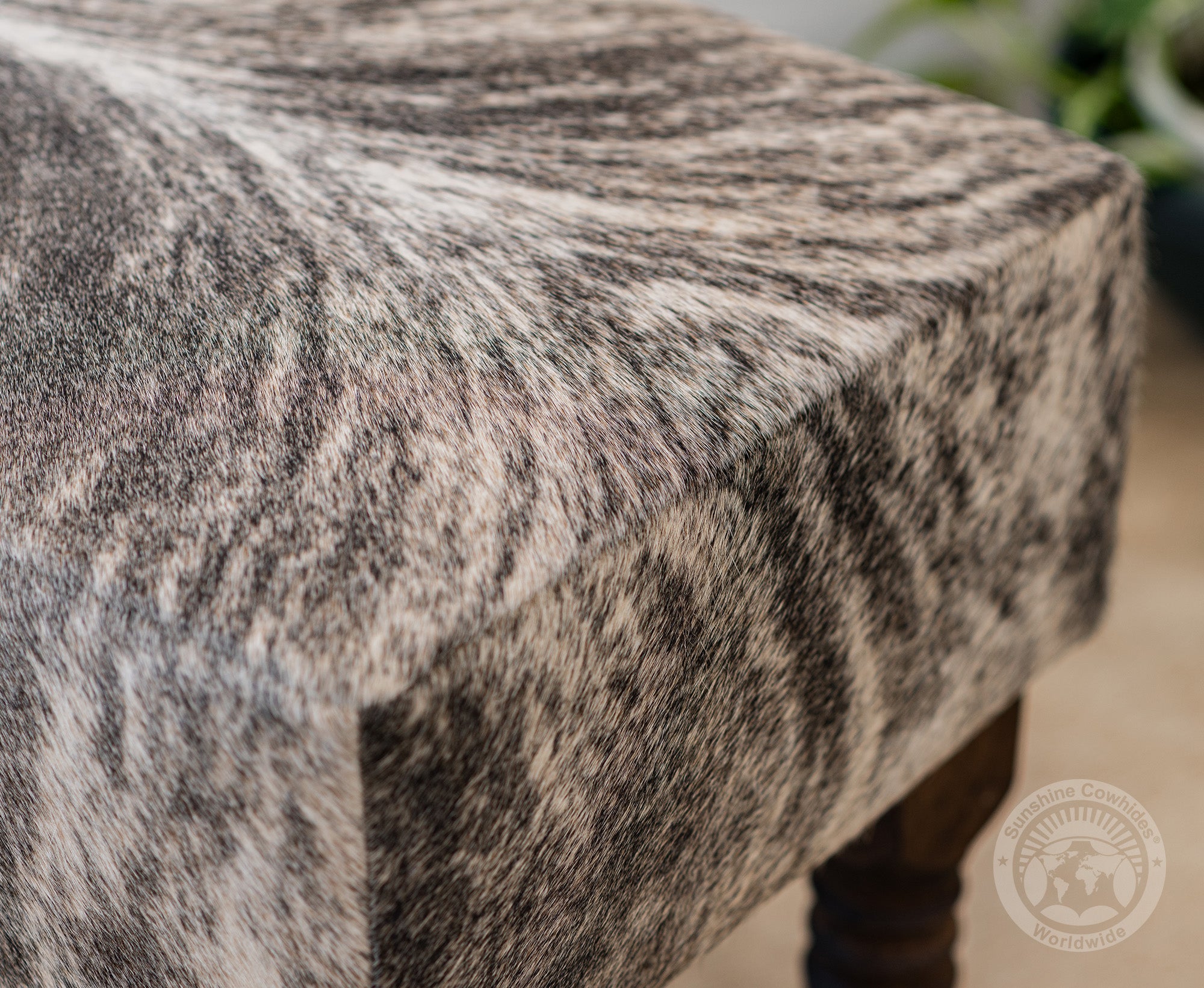 Cowhide Footstool with Wooden Legs - BRINDLE LIGHT GREY - BEIGE MIX