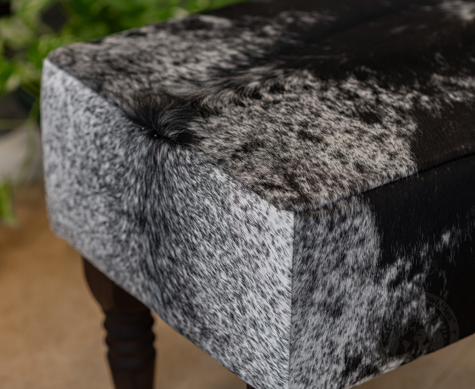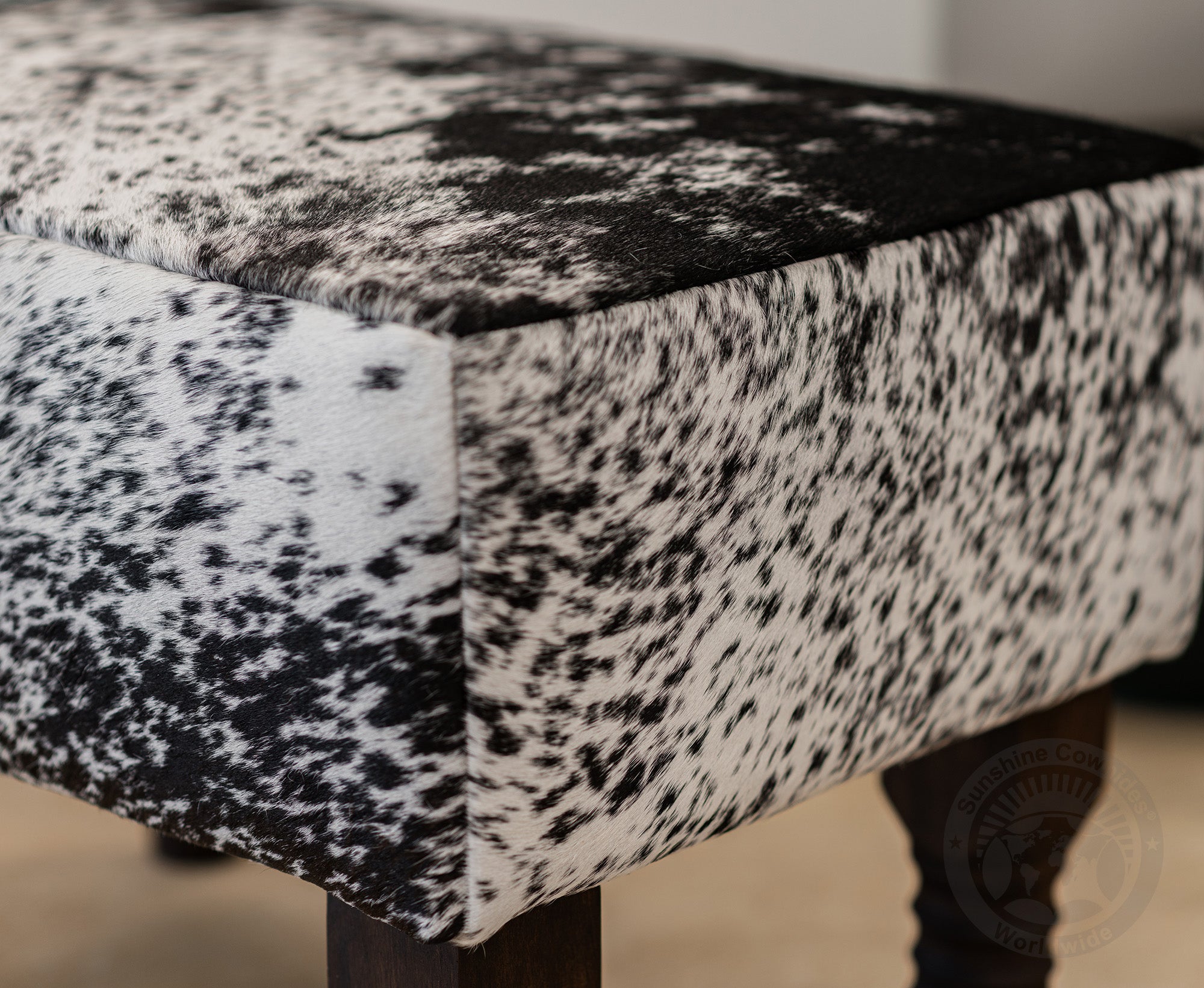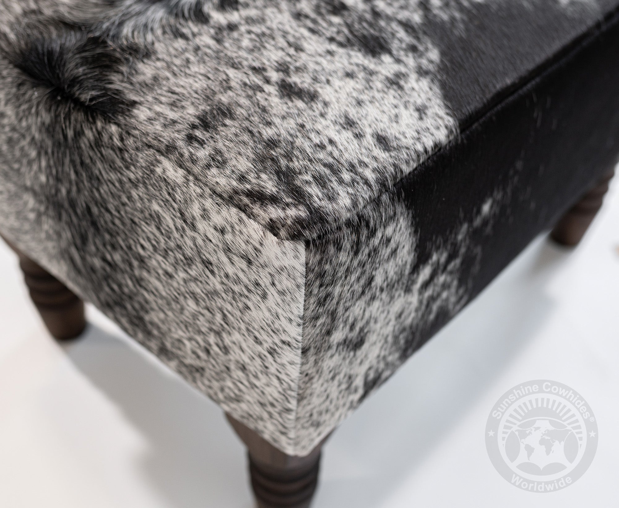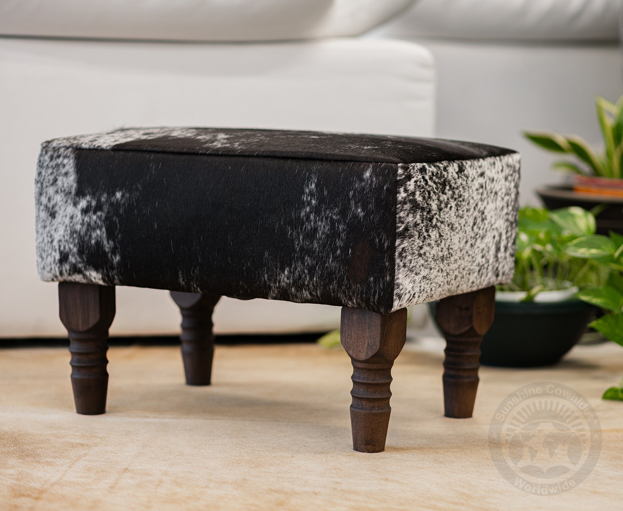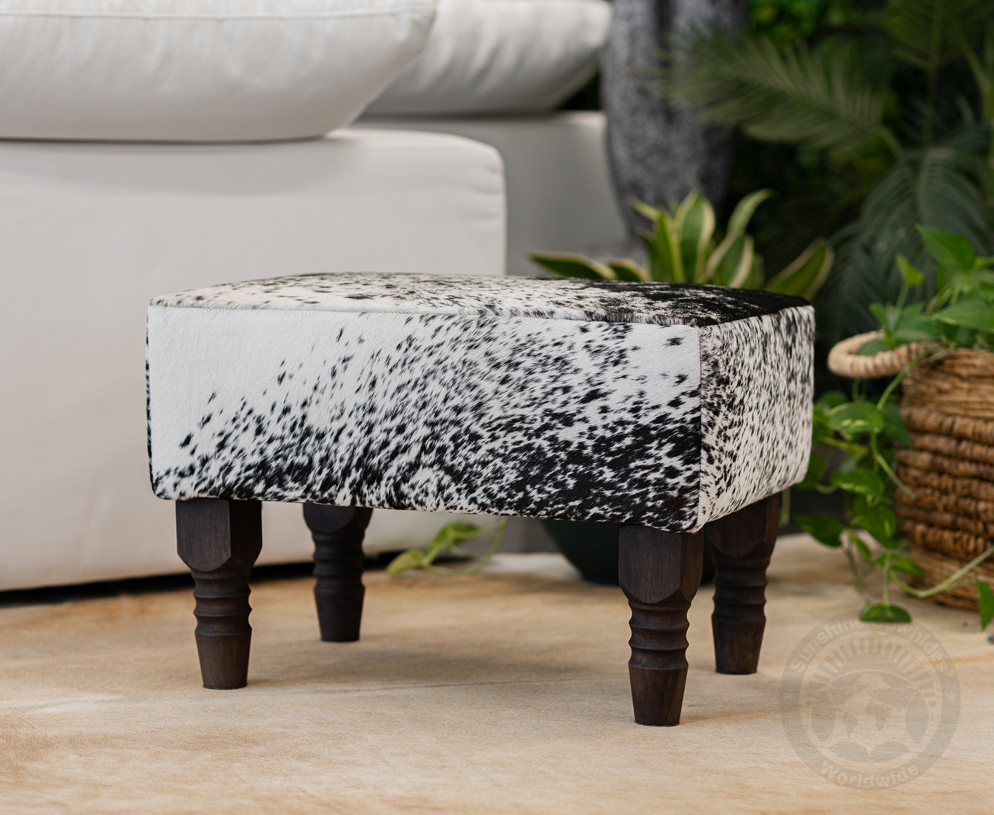 Cowhide Footstool with Wooden Legs - Salt & Pepper Black & White