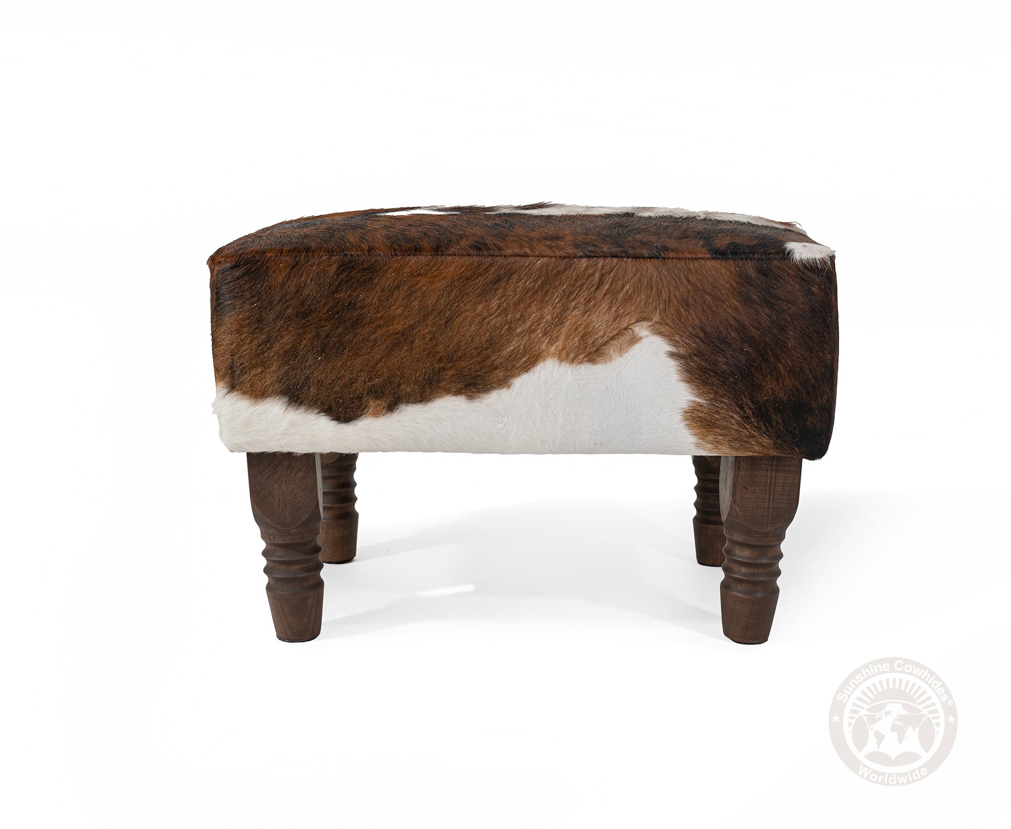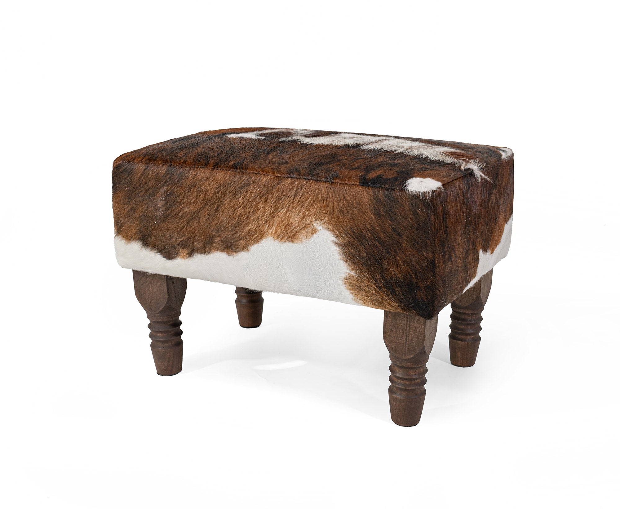 Cowhide Ottoman Footstool with Wooden Legs - Backbone