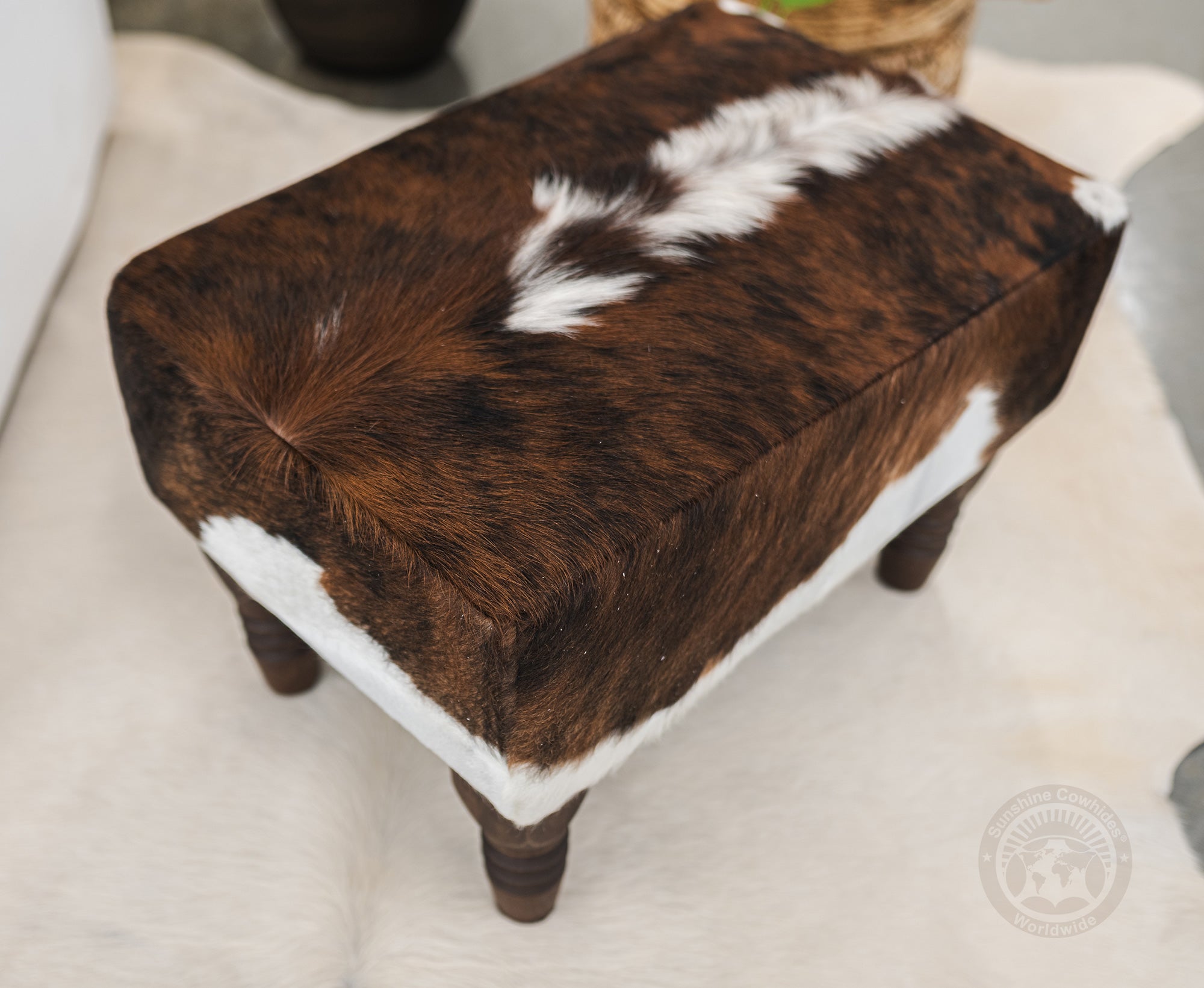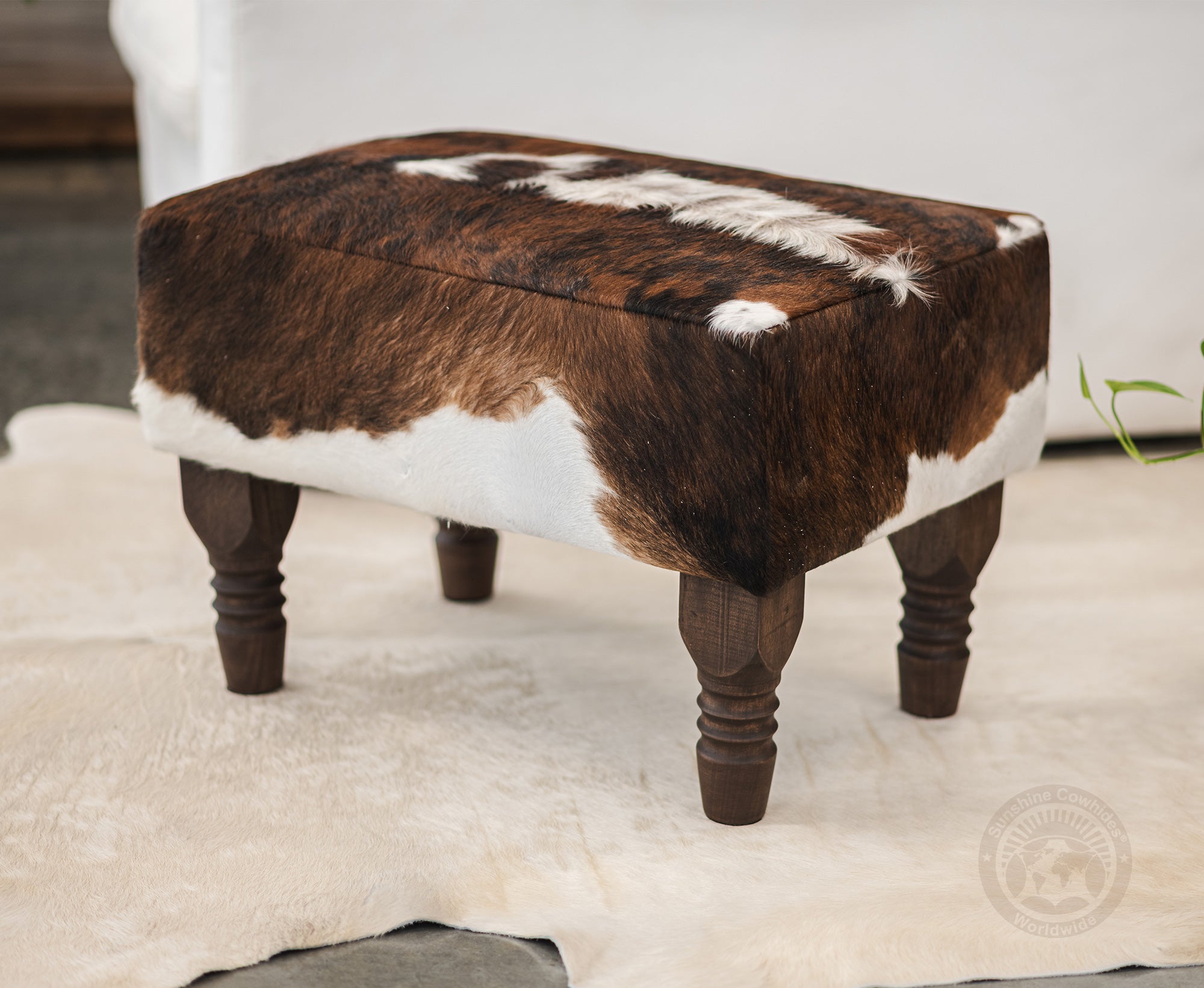 Cowhide Footstool with Wooden Legs - Backbone