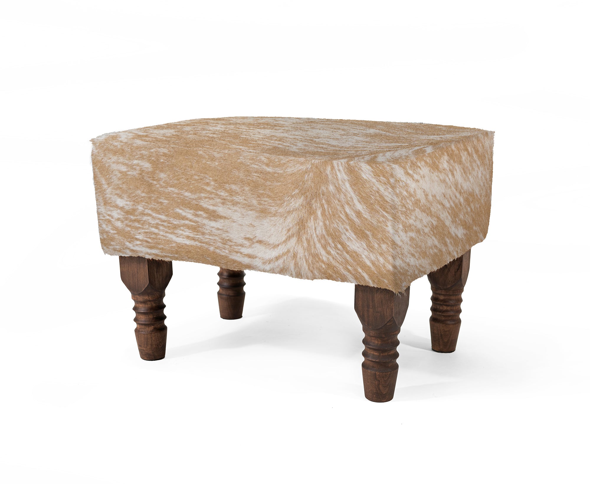 Custom Foot Stool with Wooden Legs hair on Cowhide- Brindle Palomino