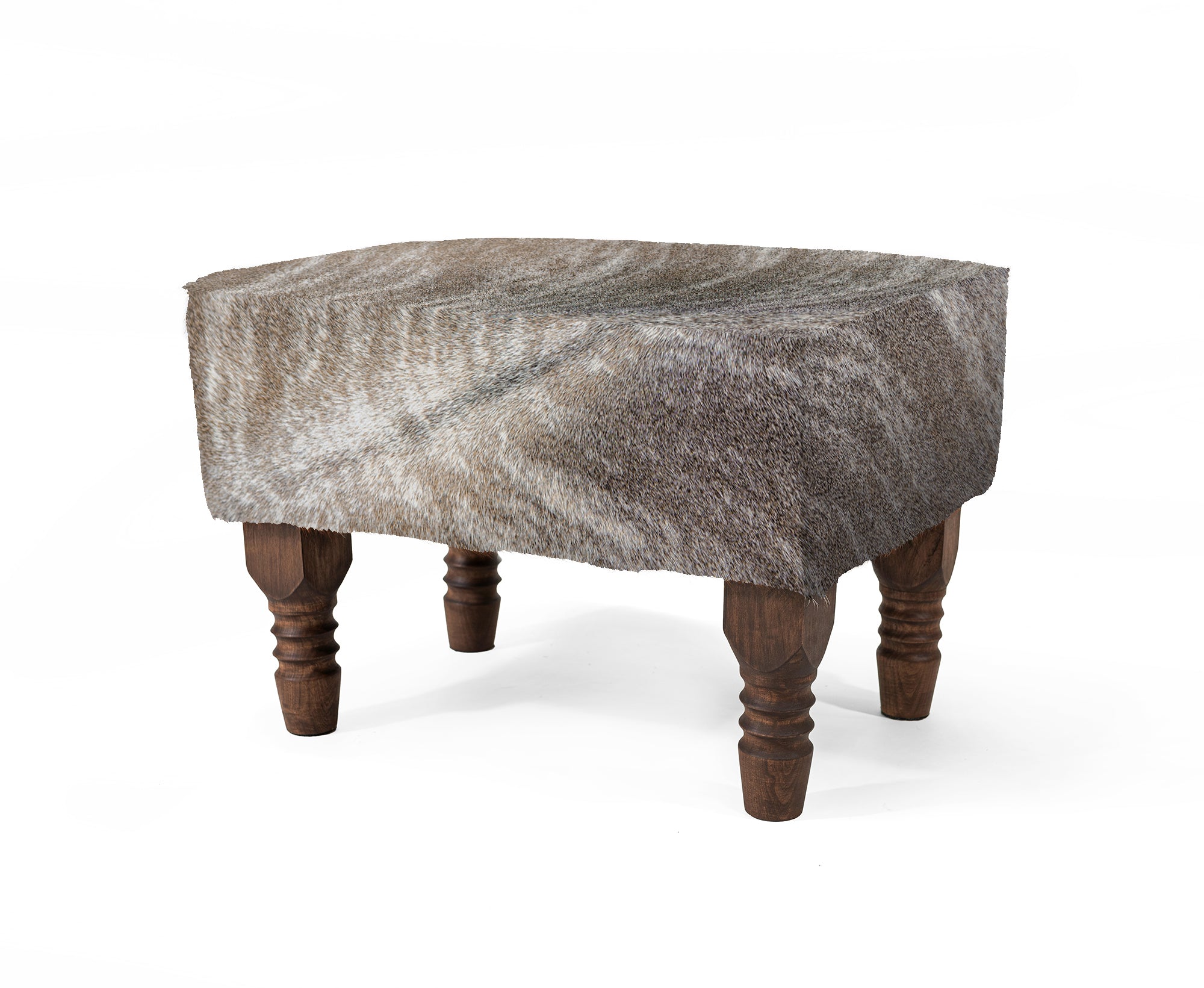 Custom Foot Stool with Wooden Legs hair on Cowhide- Greyish Brindle