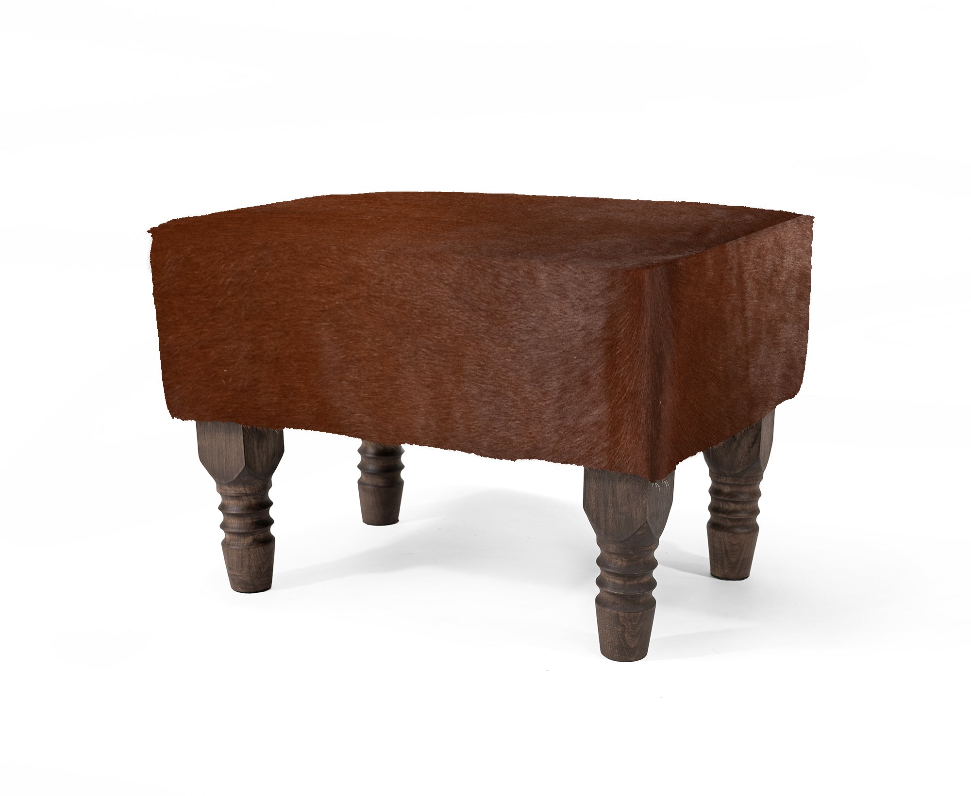 Custom Foot Stool with Wooden Legs hair on Cowhide- Solid Brown