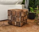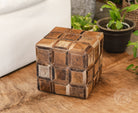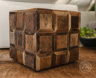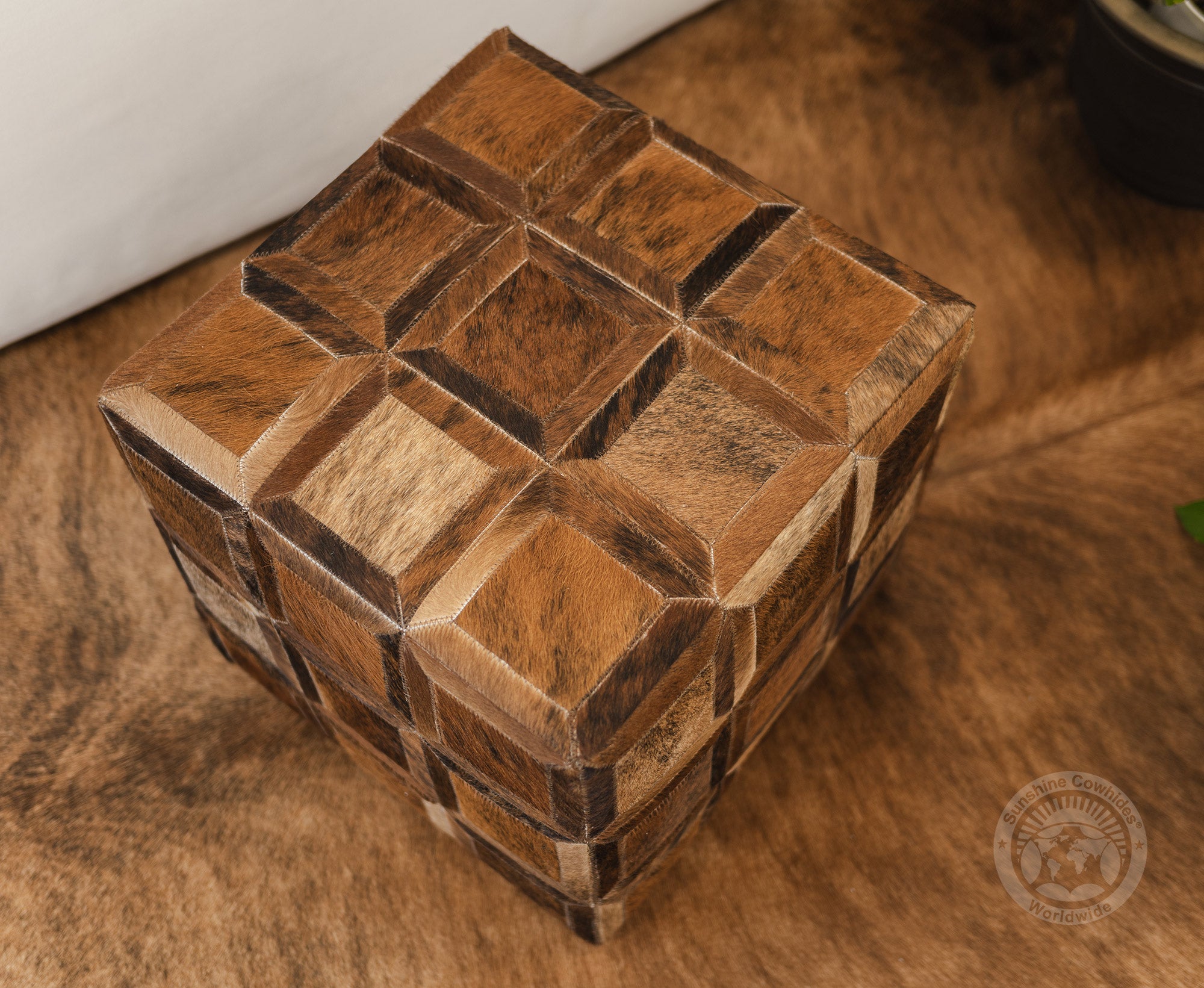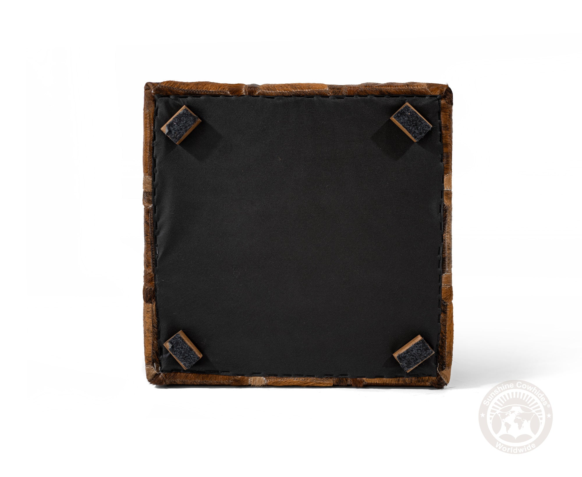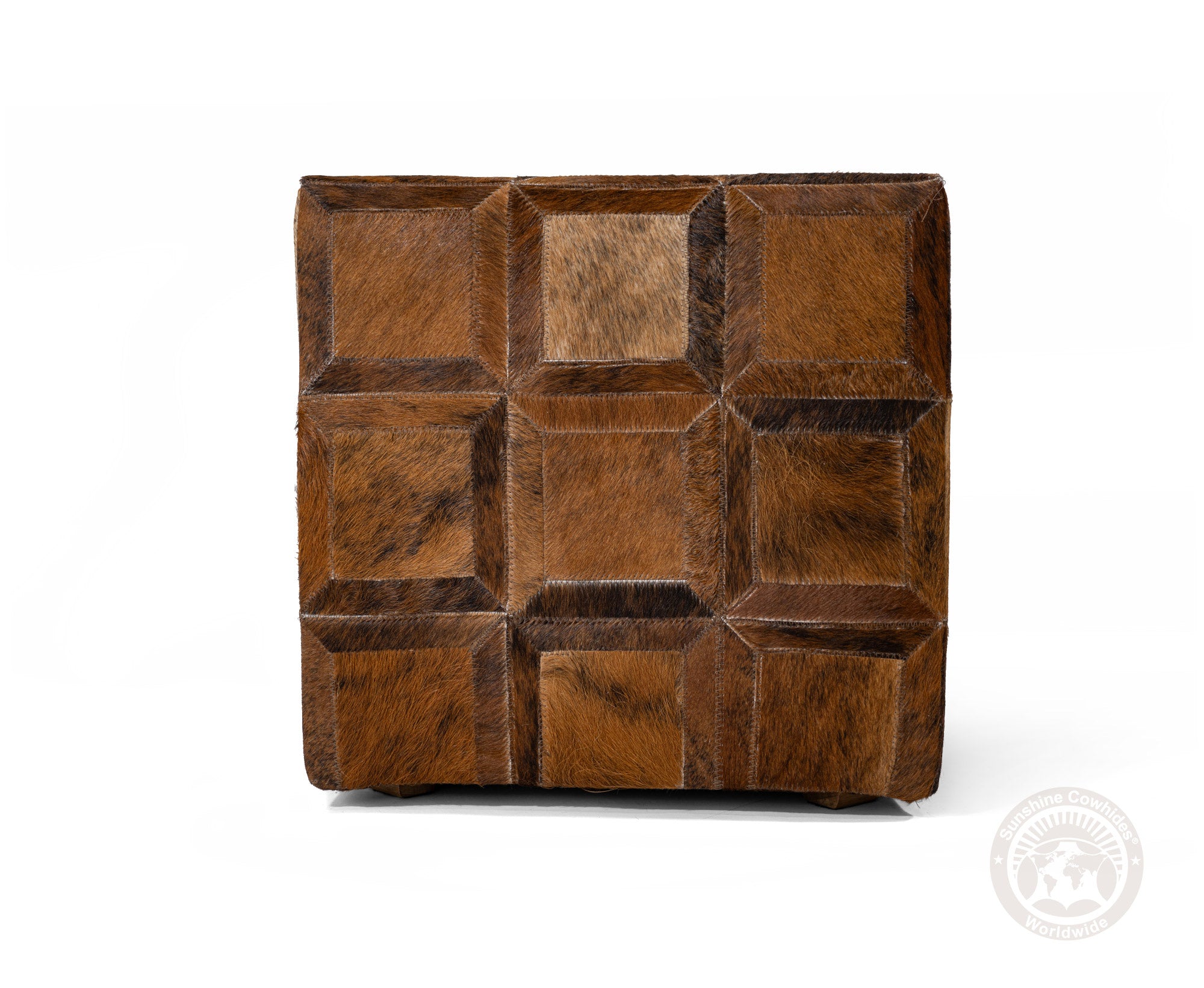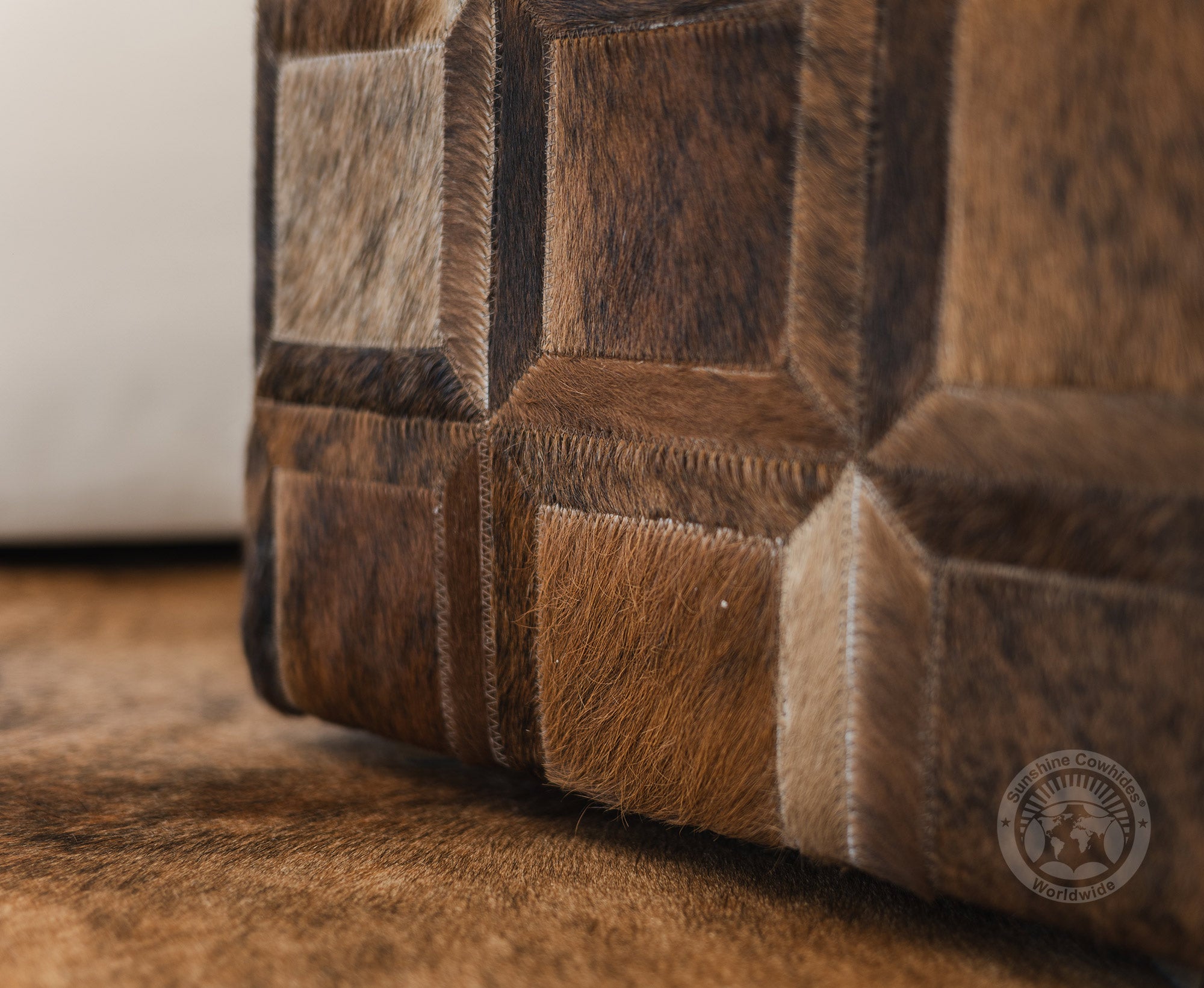 Cowhide Ottoman Patchwork Brindle Medium - Dark Mix