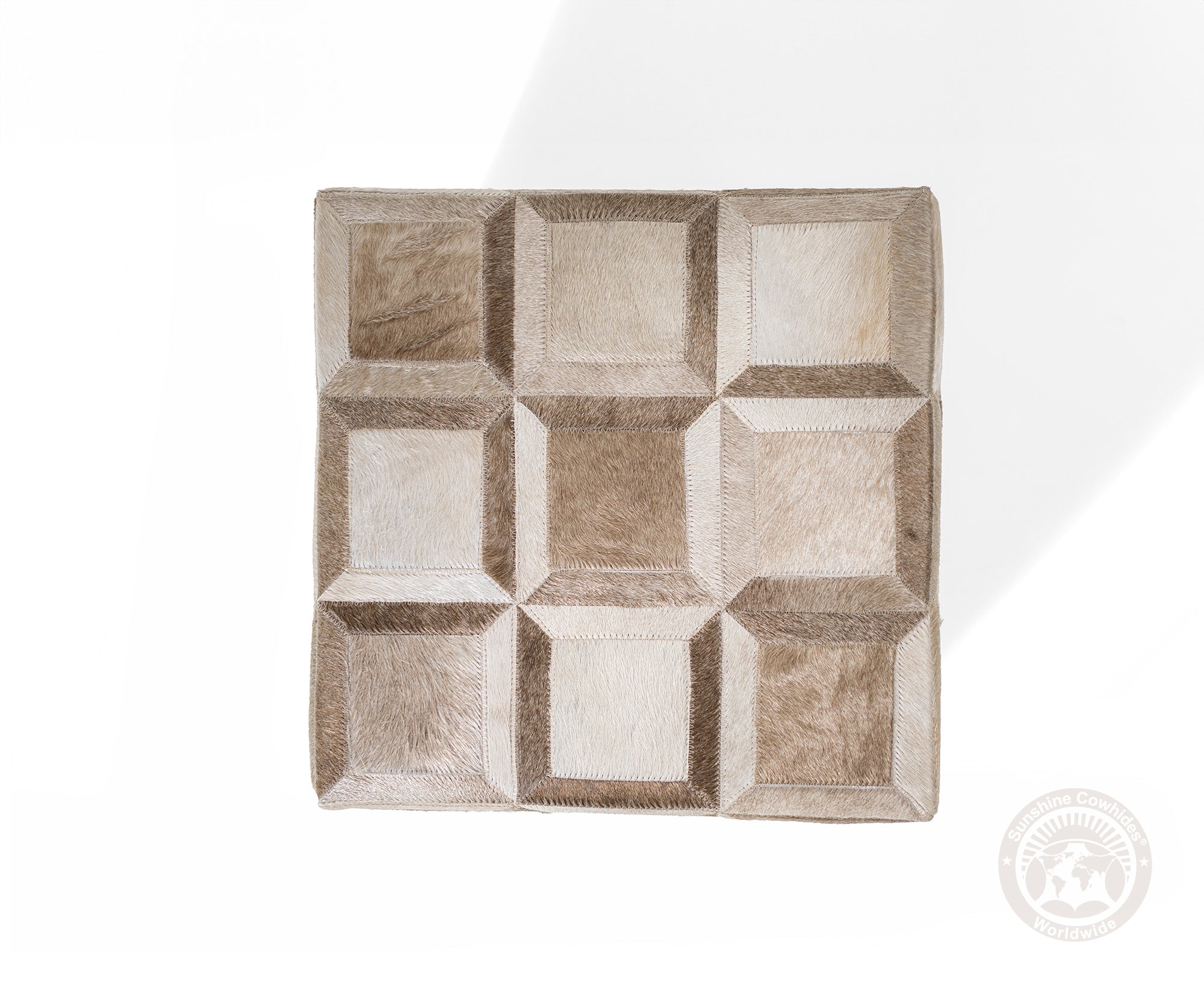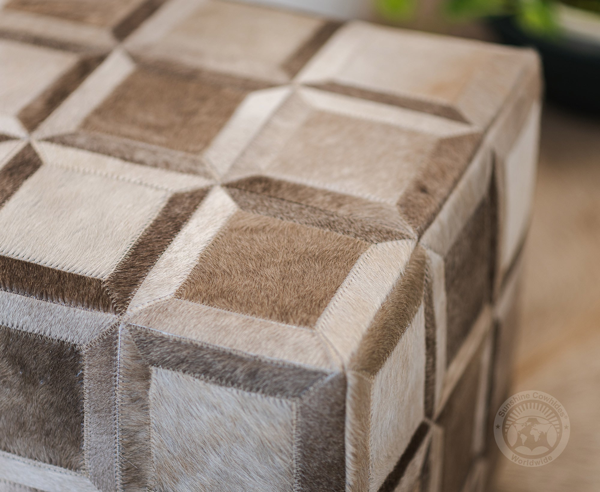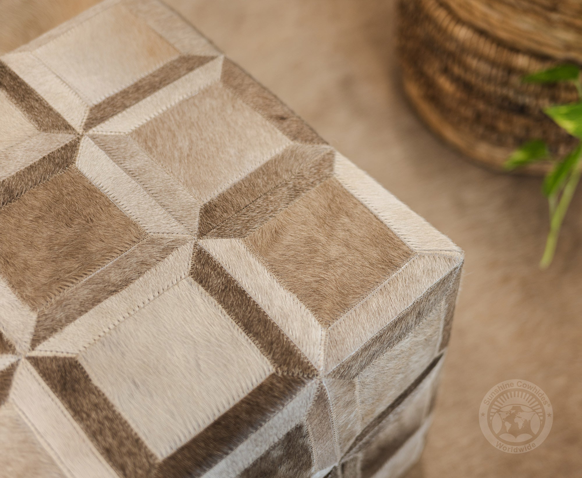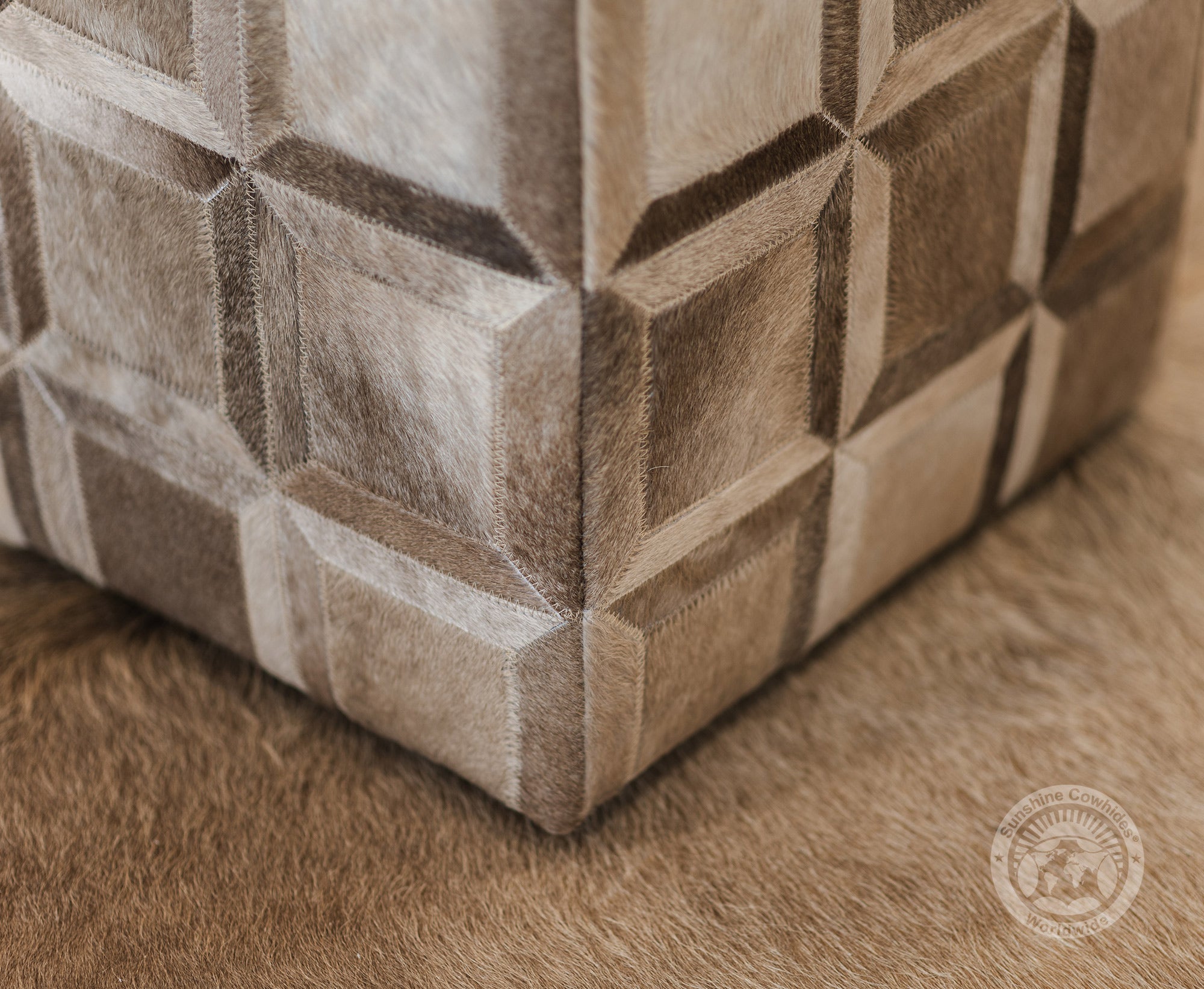 Cowhide Ottoman Patchwork Taupe - Champagne tones