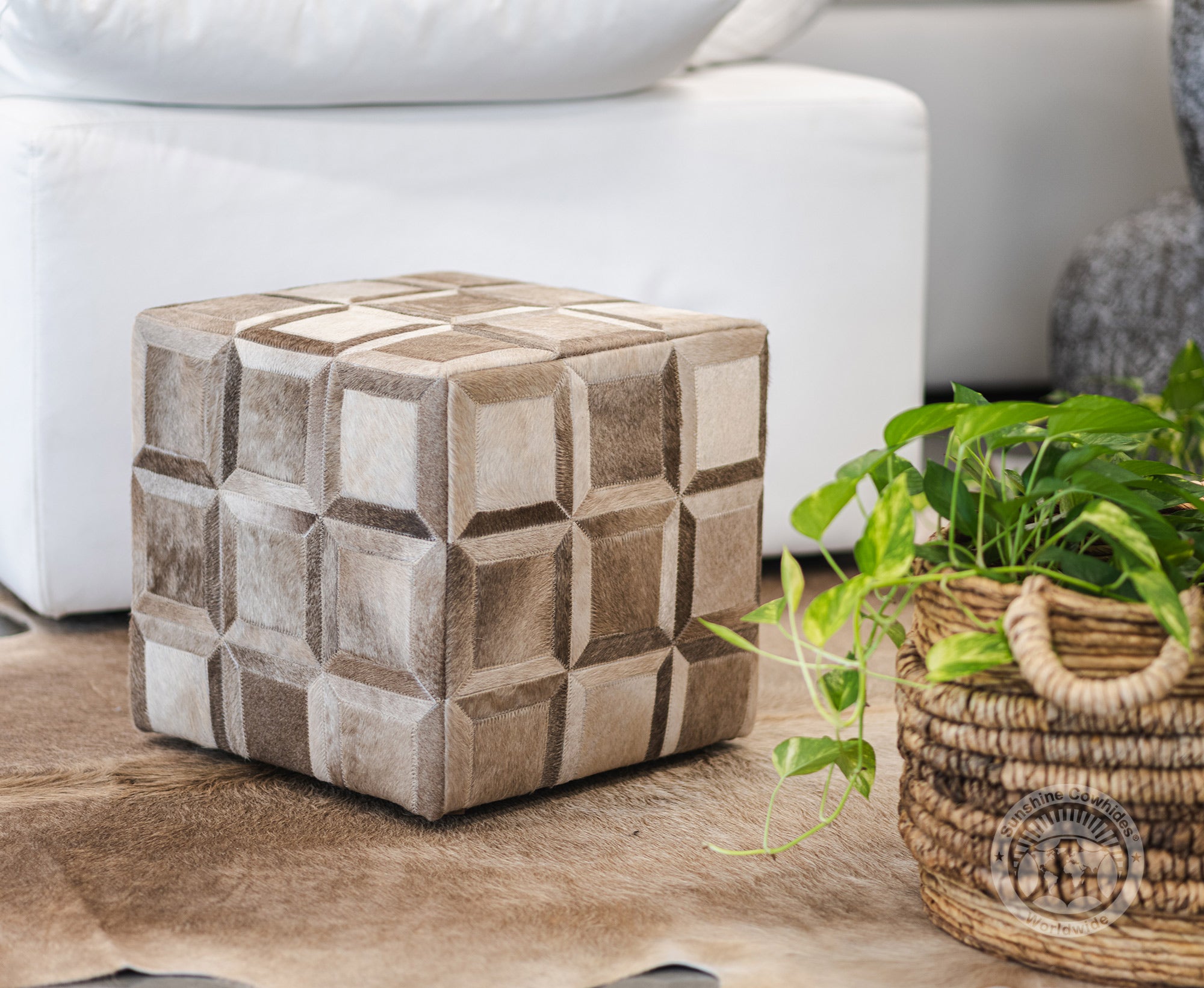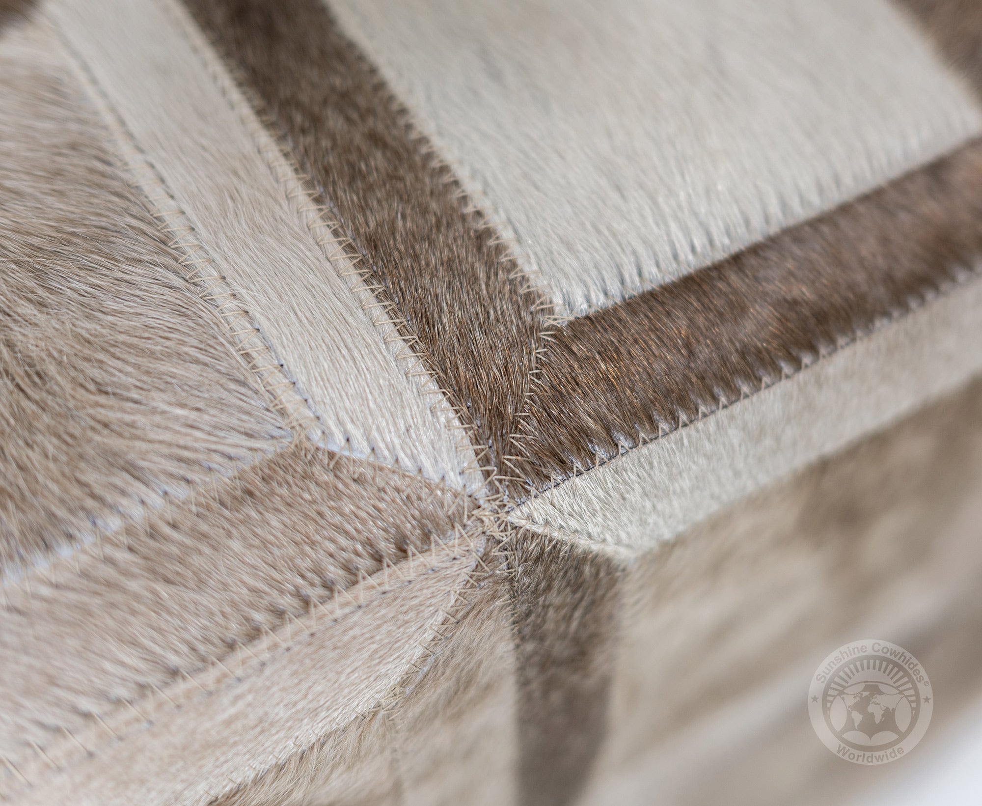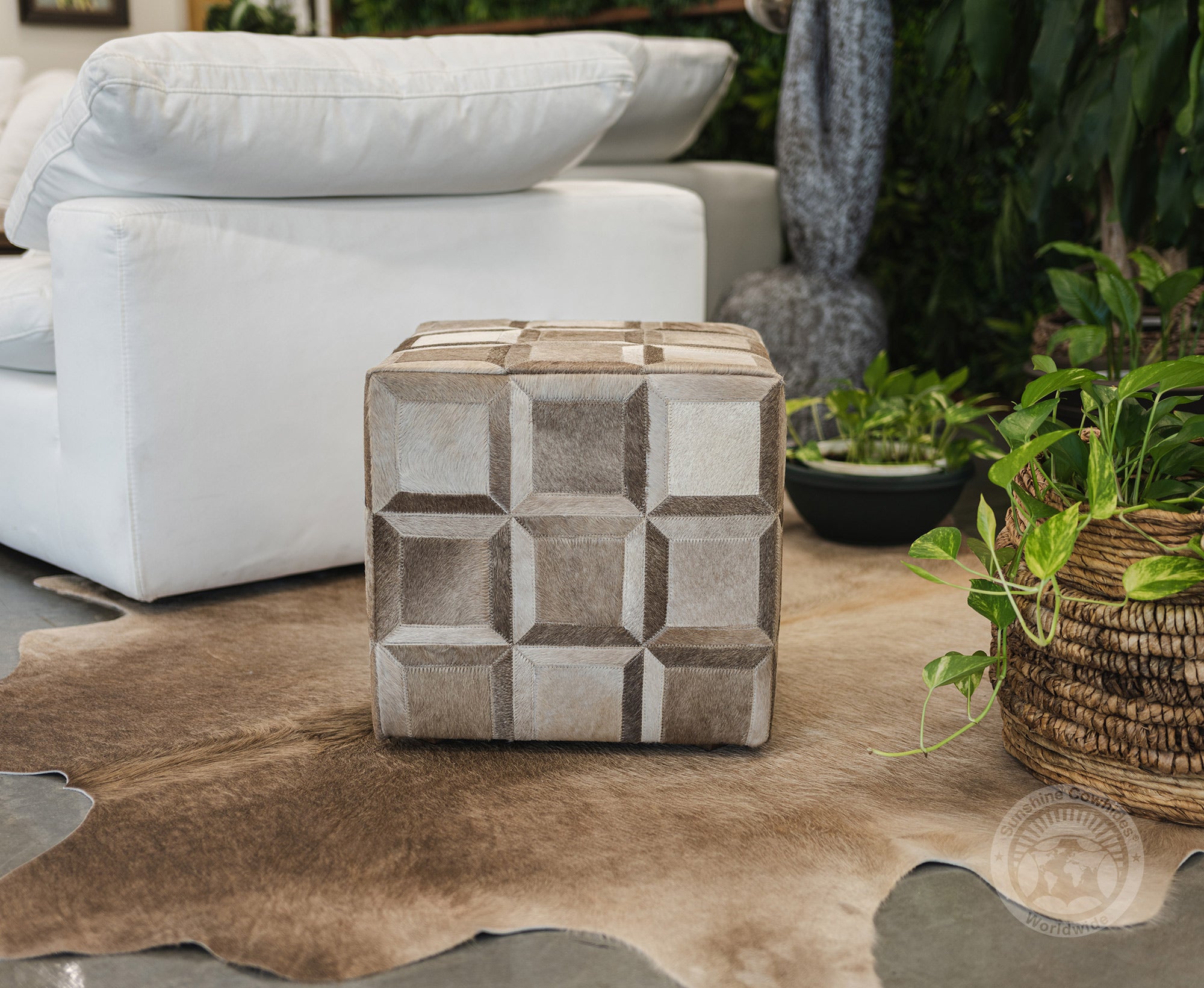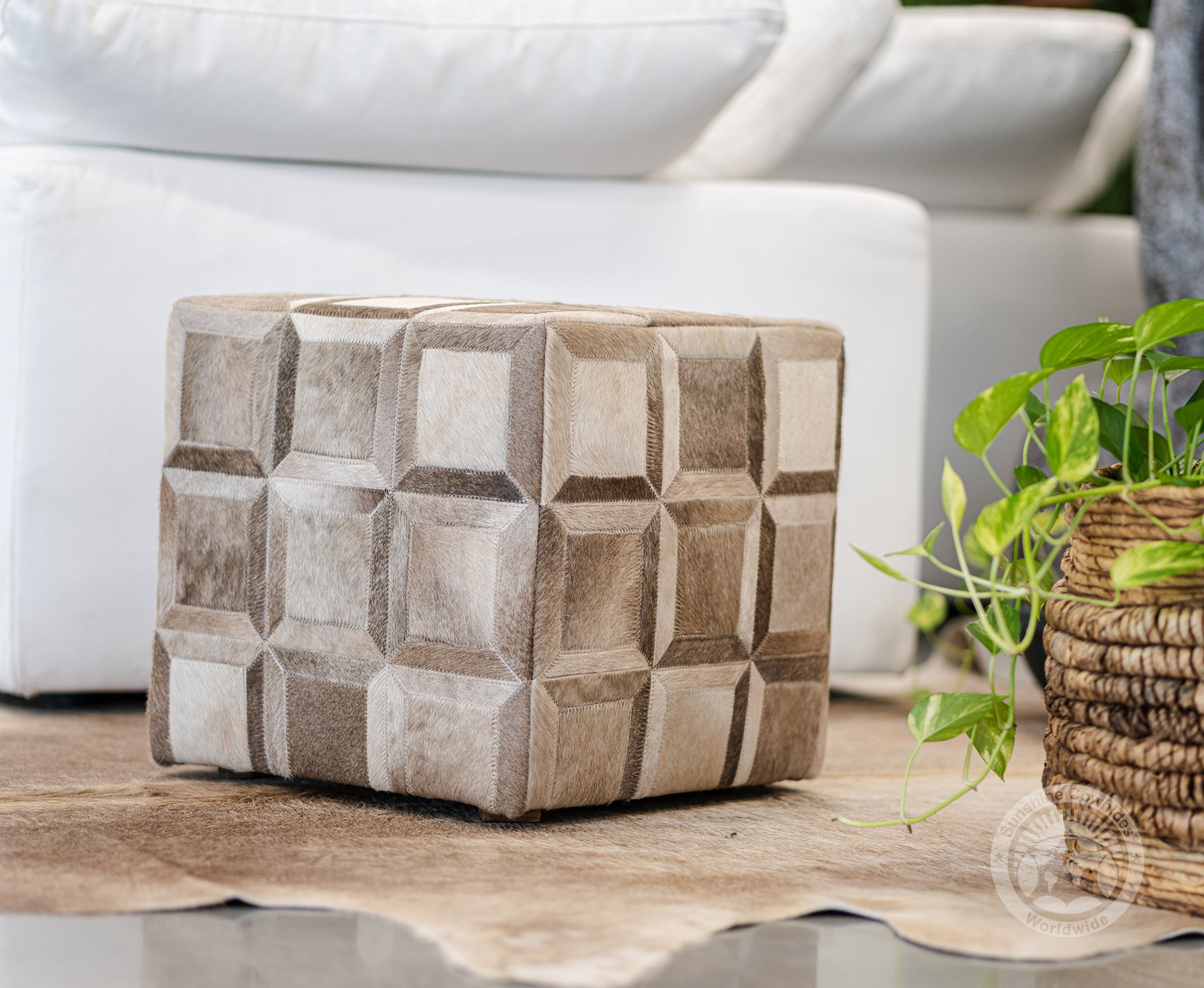 Cowhide Ottoman Patchwork Taupe - Champagne tones