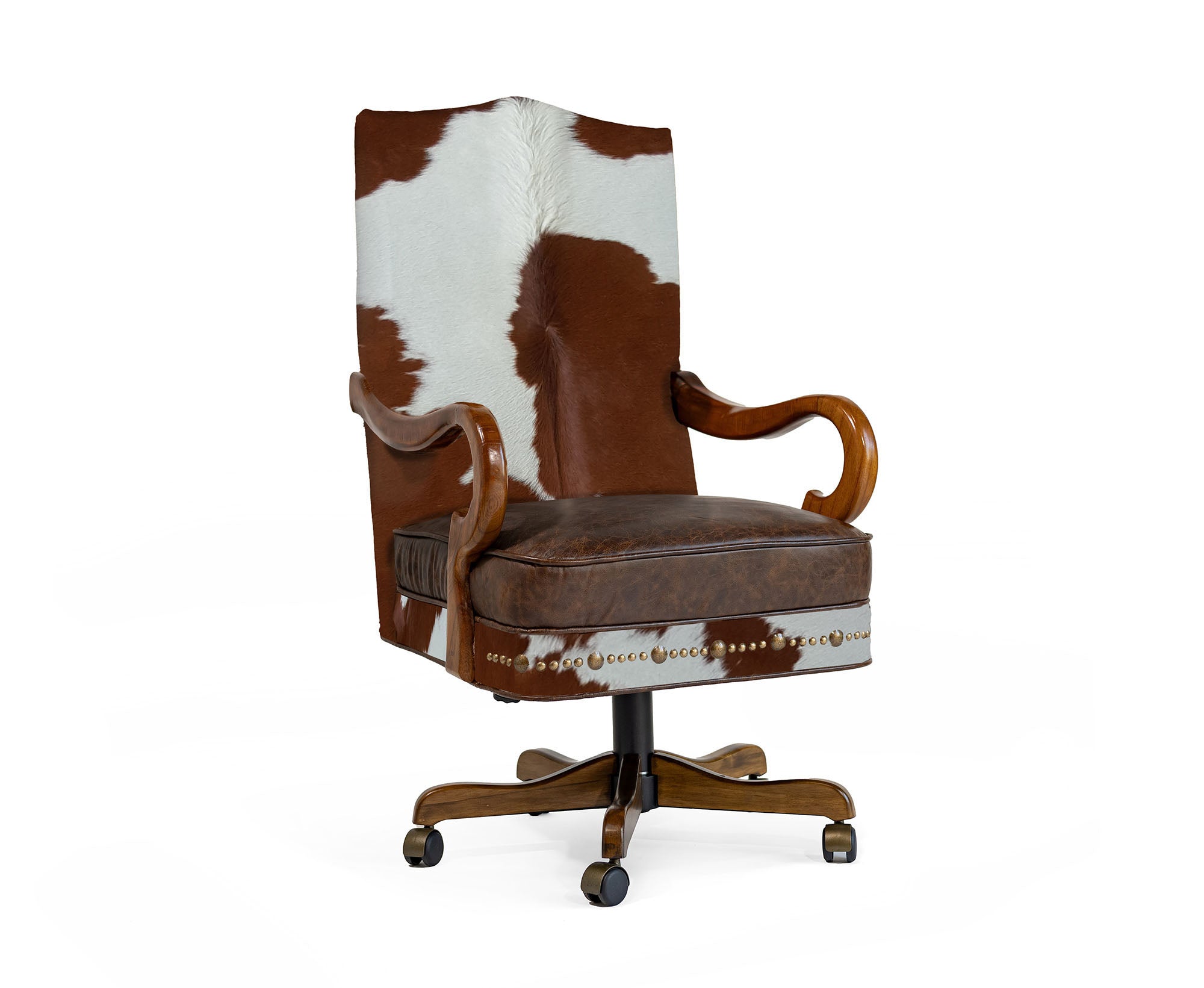 Custom Office Chair with Hair On Cowhide Accents - Brown & White