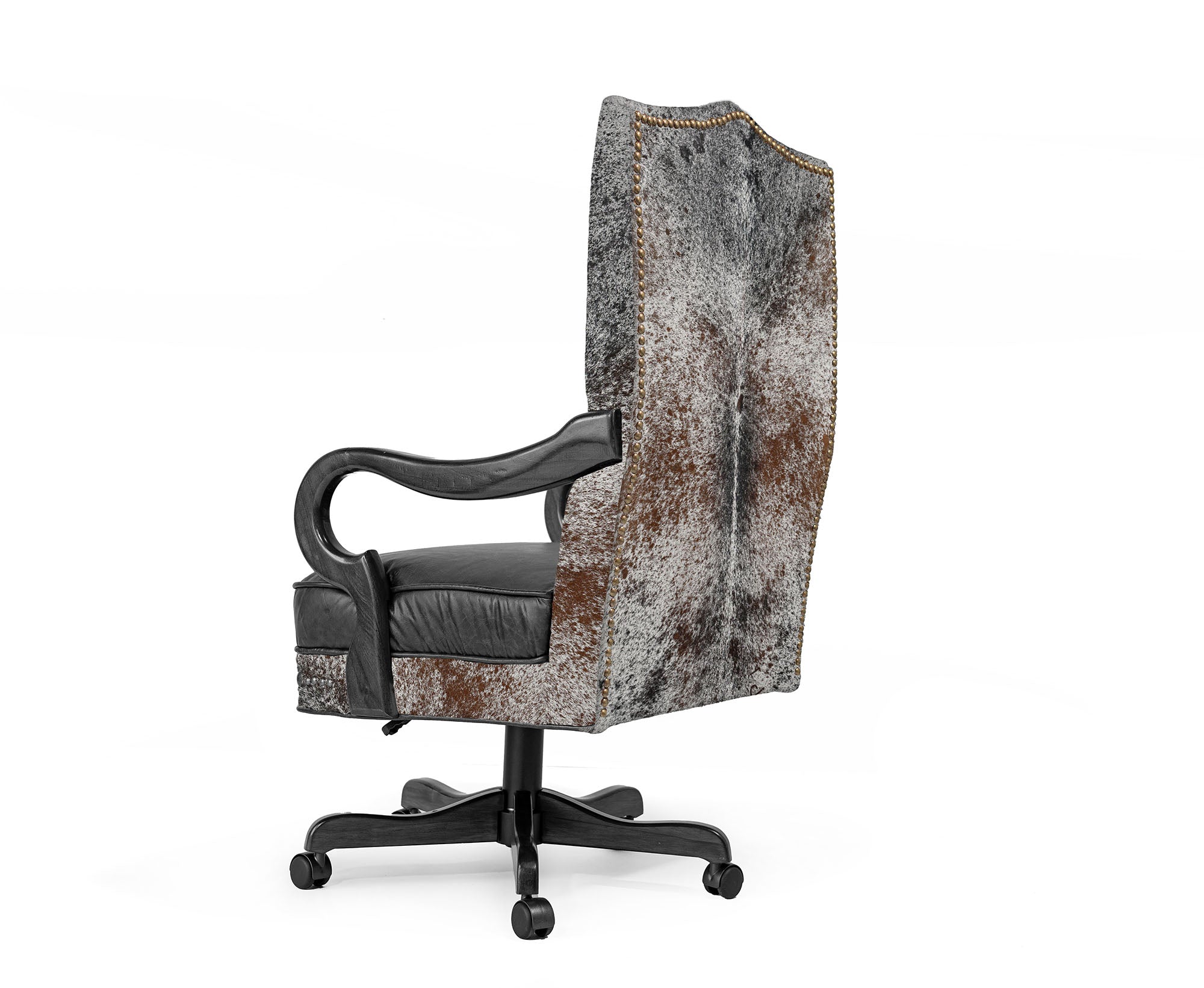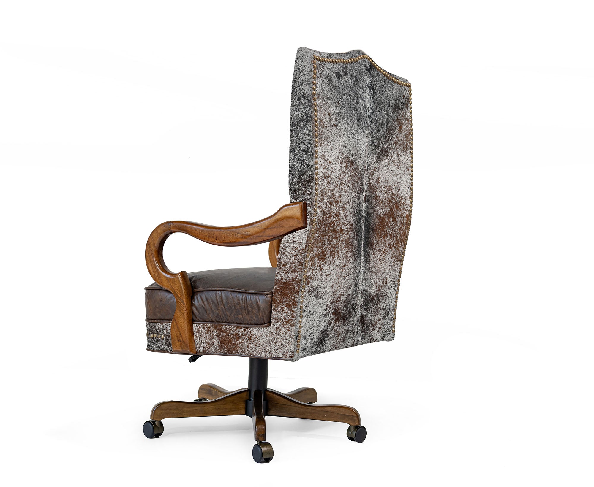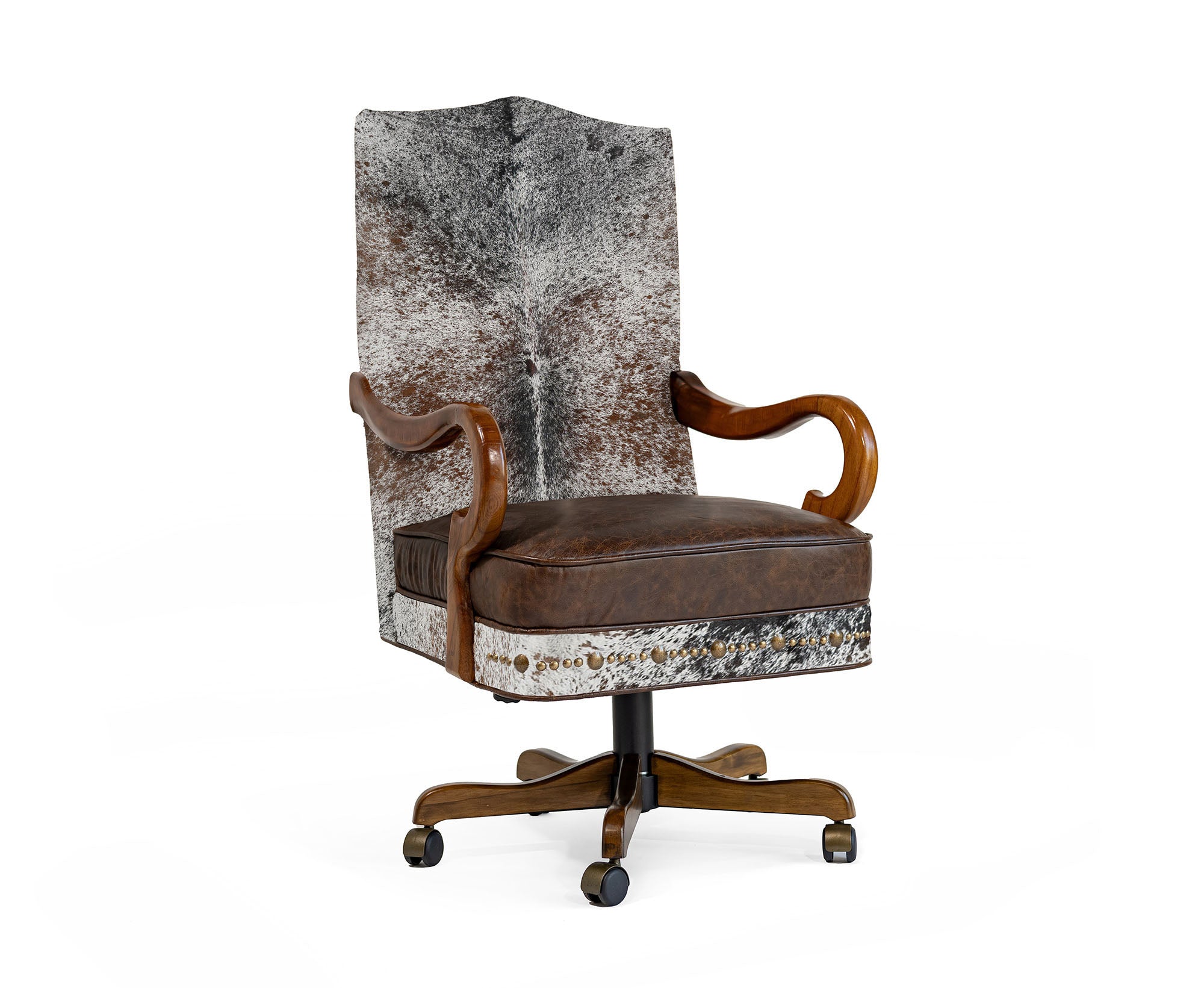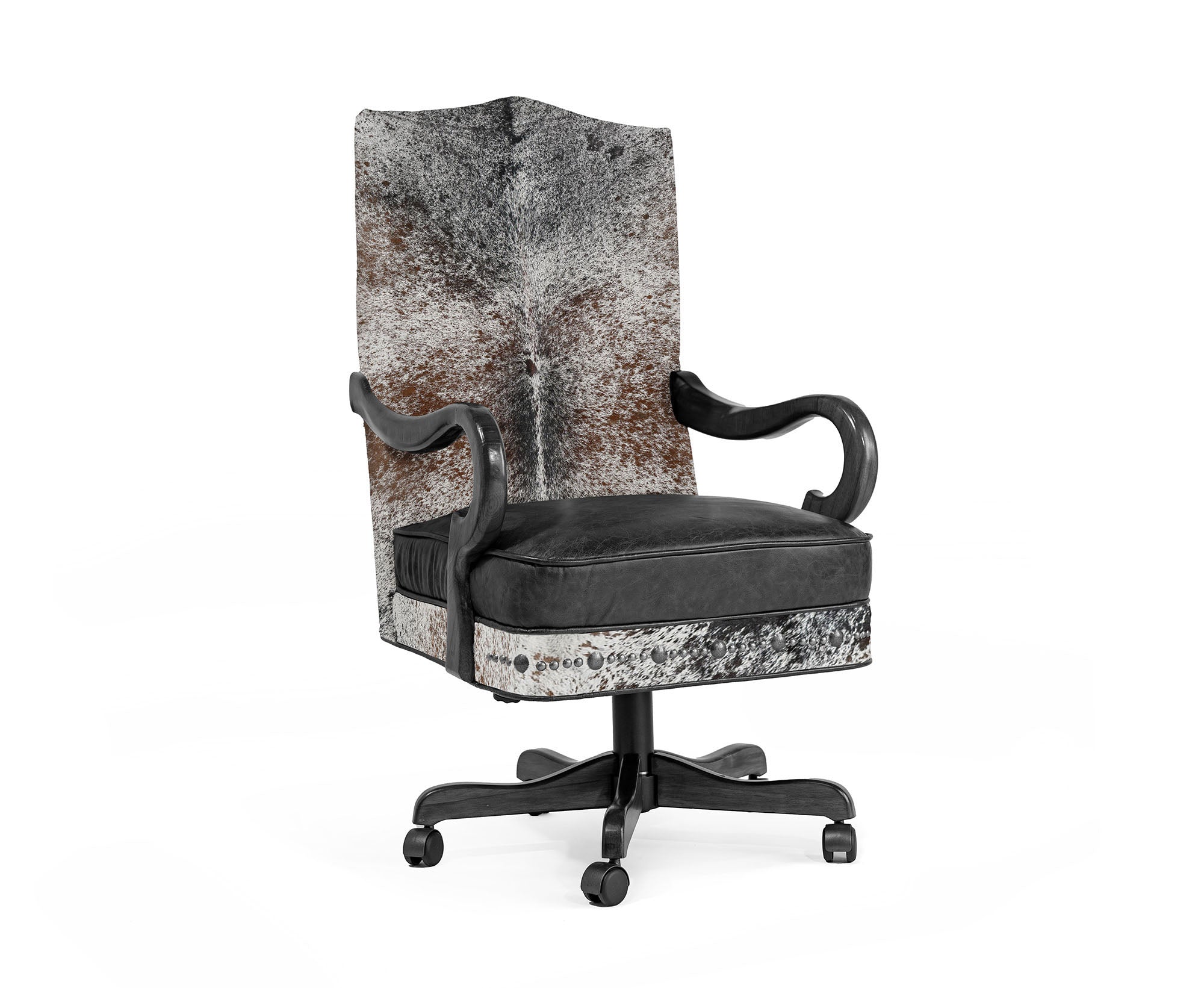 Custom Office Chair with Hair On Cowhide Accents - Salt & Pepper Tricolor