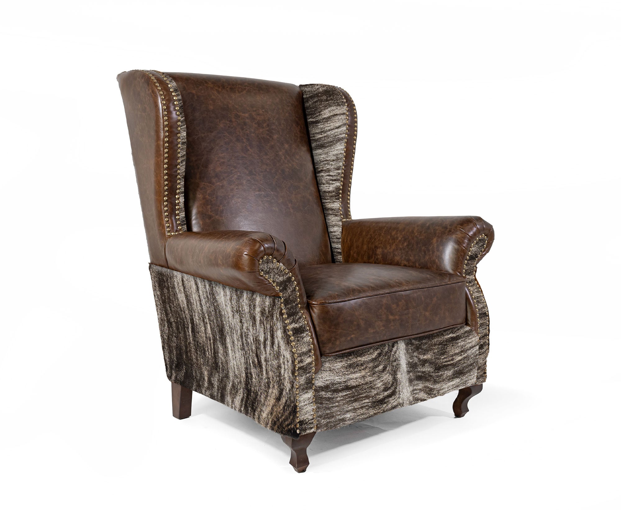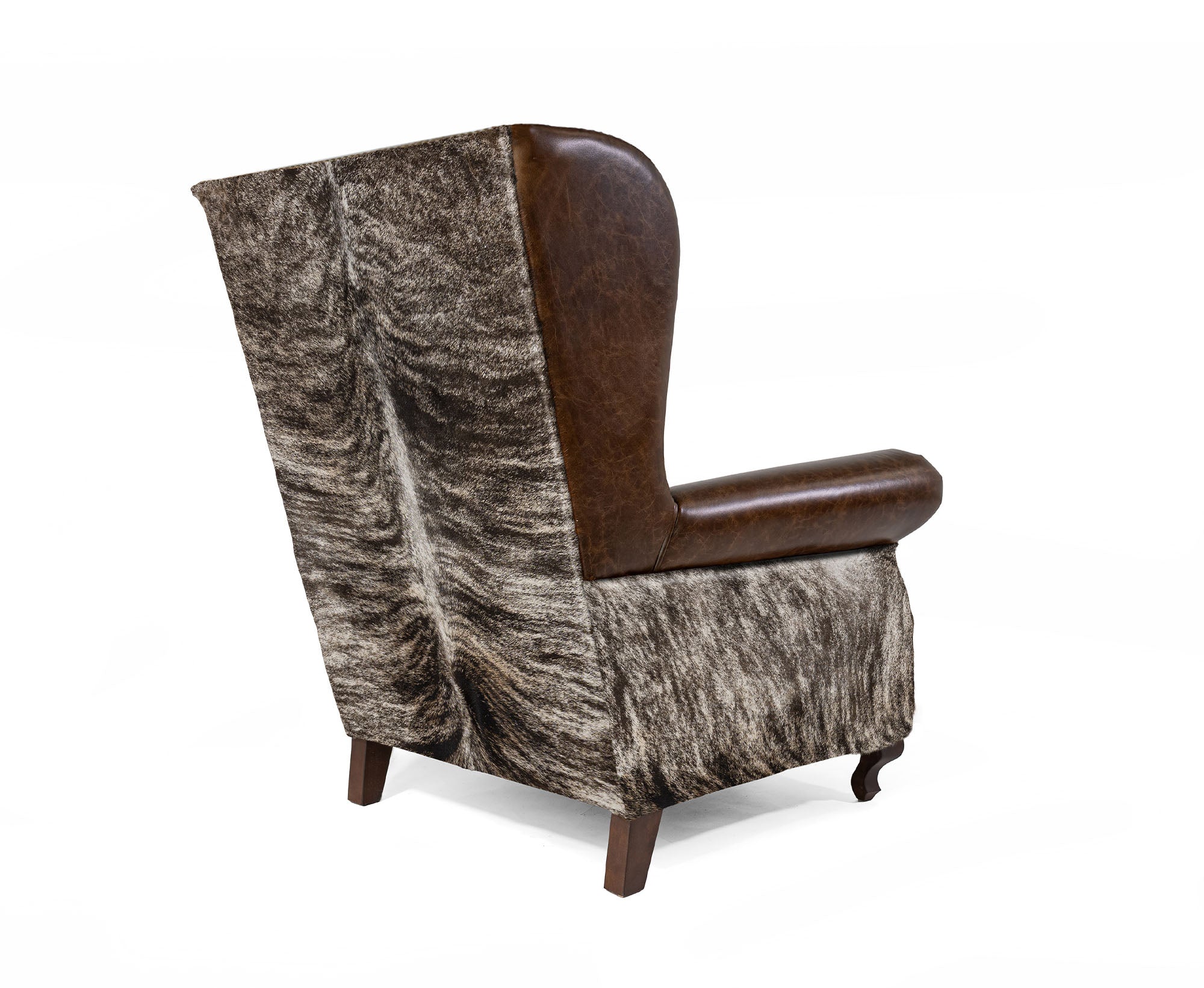 Custom Wingback Chair with Hair On Cowhide Accents - Dark Brindle