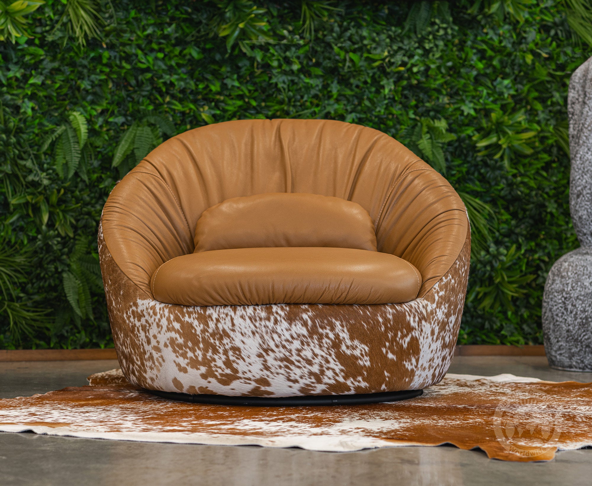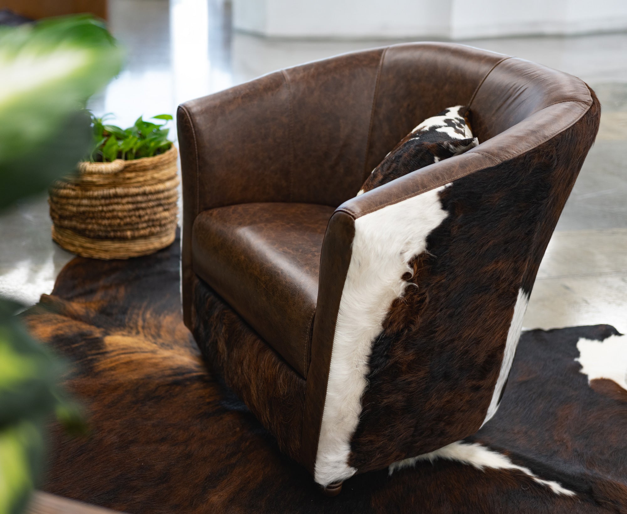 Leather Barrel Chair - Coffee