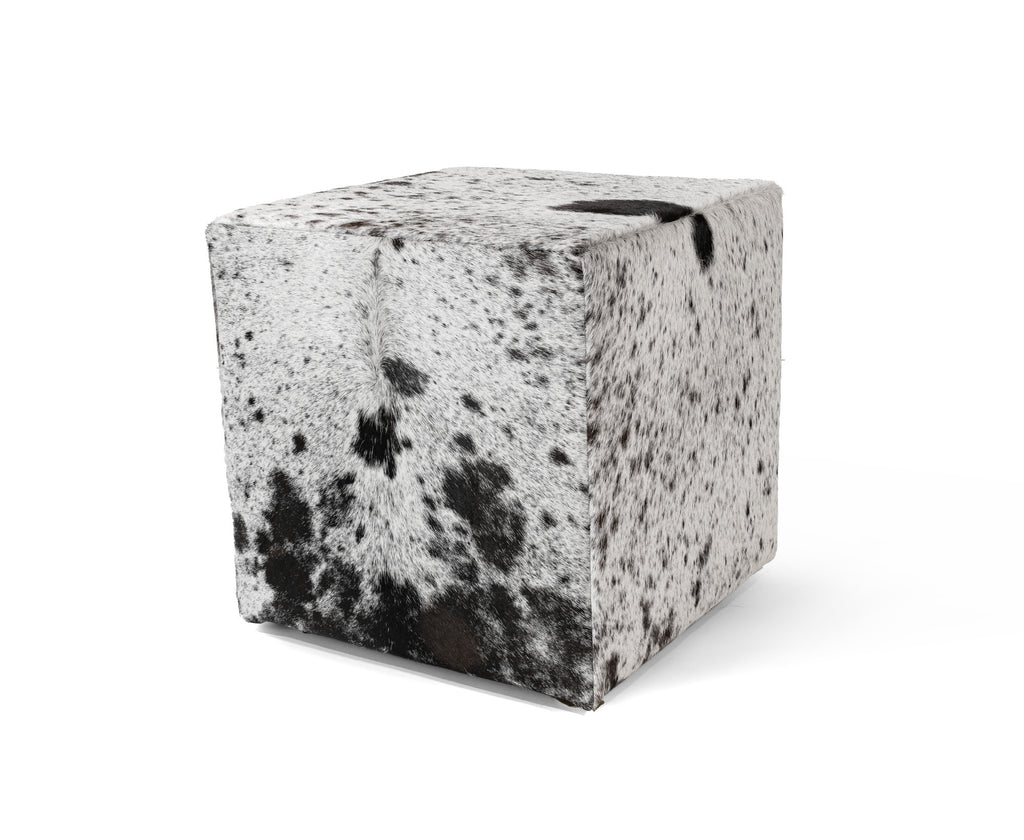 Cowhide Ottoman/ Pouf - Salt & Pepper Black and White