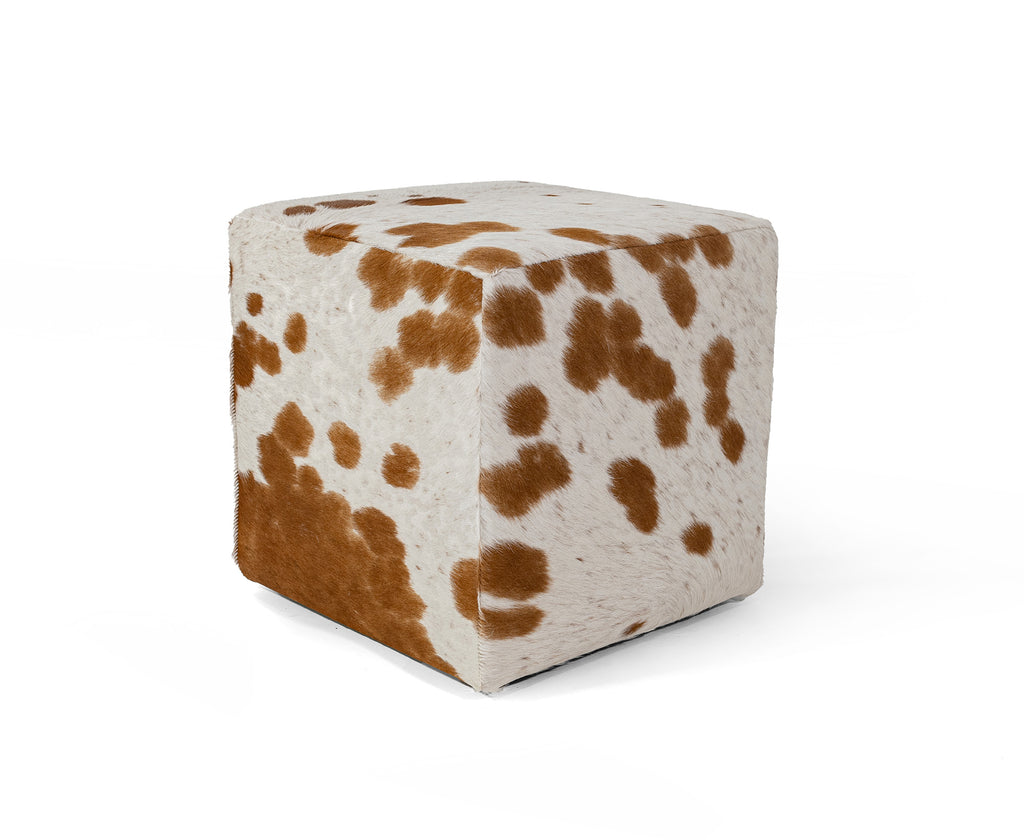 Cowhide Ottoman/ Pouf - Salt & Pepper Brown & White