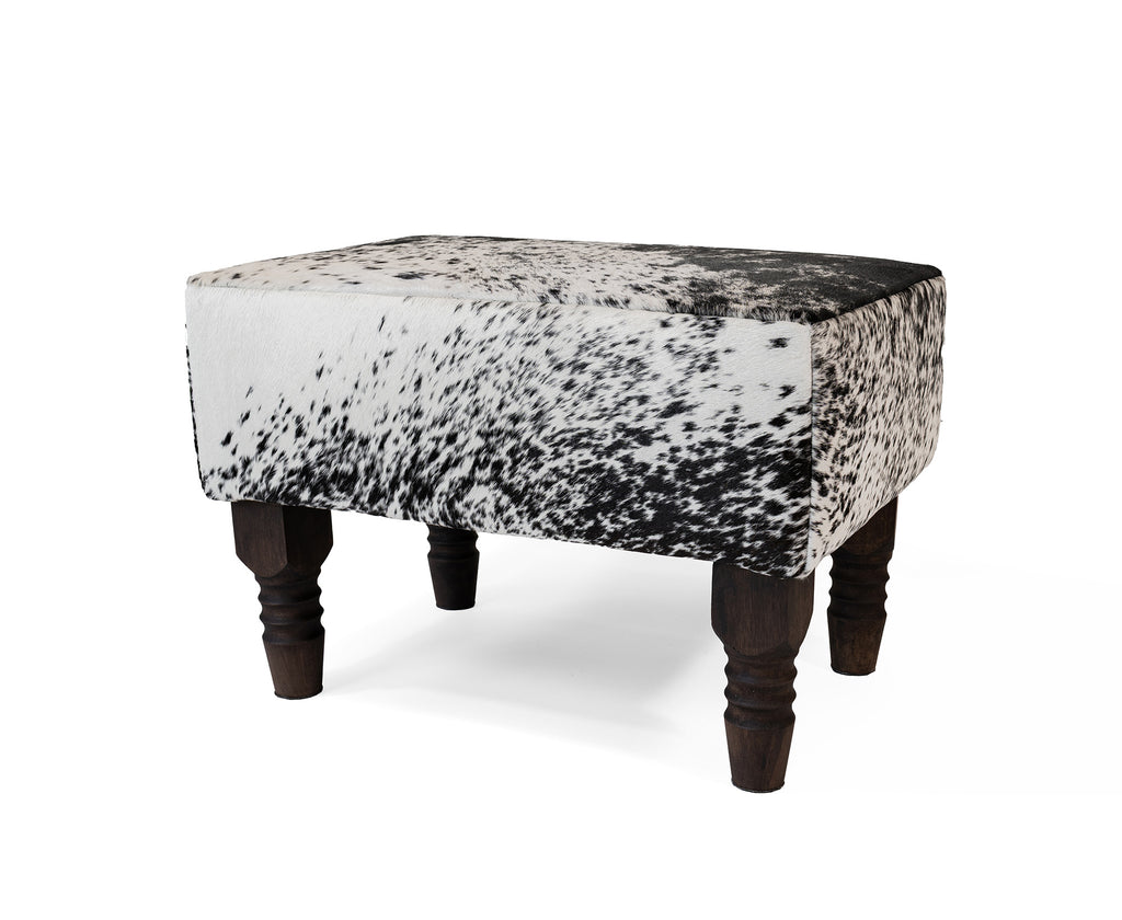 Cowhide Footstool with Wooden Legs - Salt & Pepper Black & White