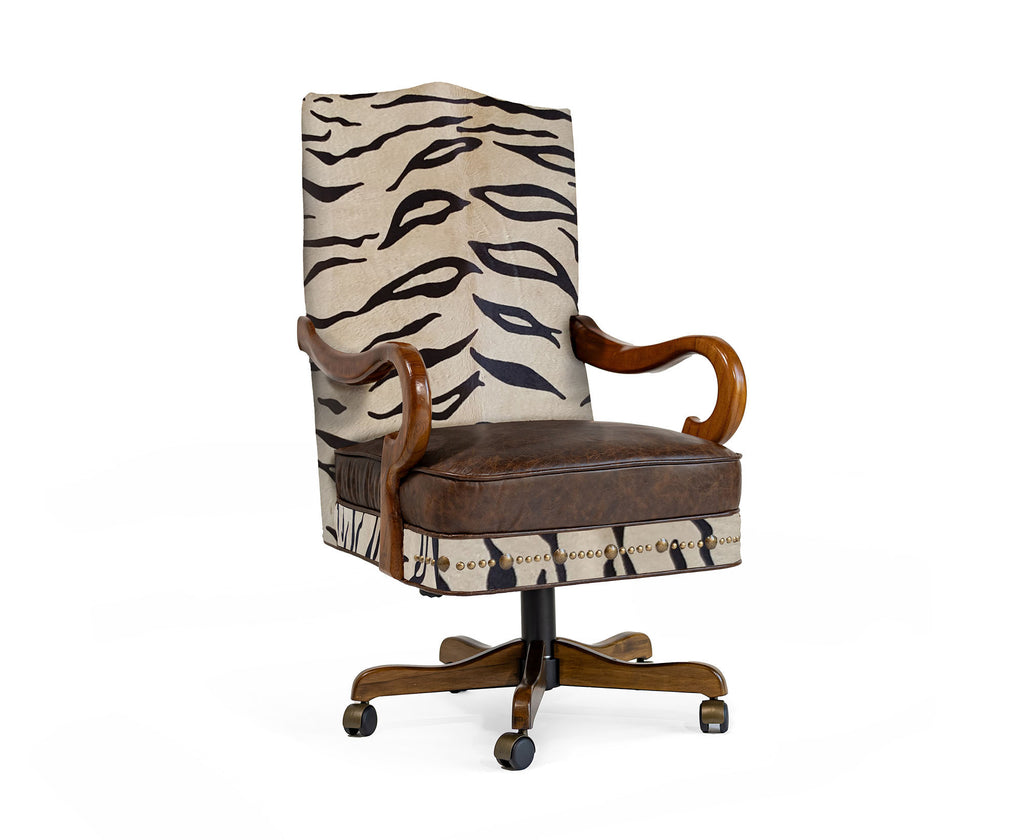Custom Office Chair with Hair On Cowhide Accents - Black Tiger Print