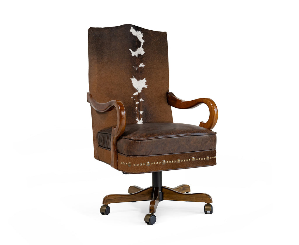 Custom Office Chair with Hair On Cowhide Accents - Hereford