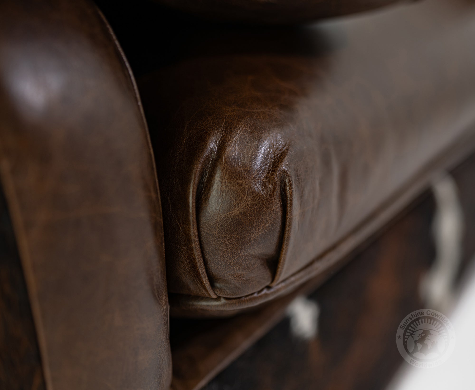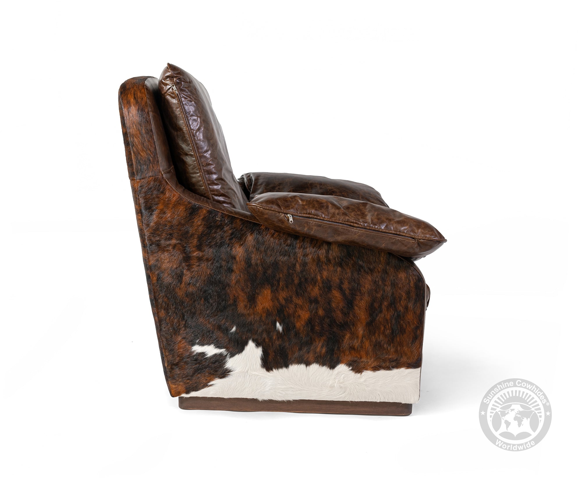 Comfy Leather Arm chair + Ottoman - Brown Leather