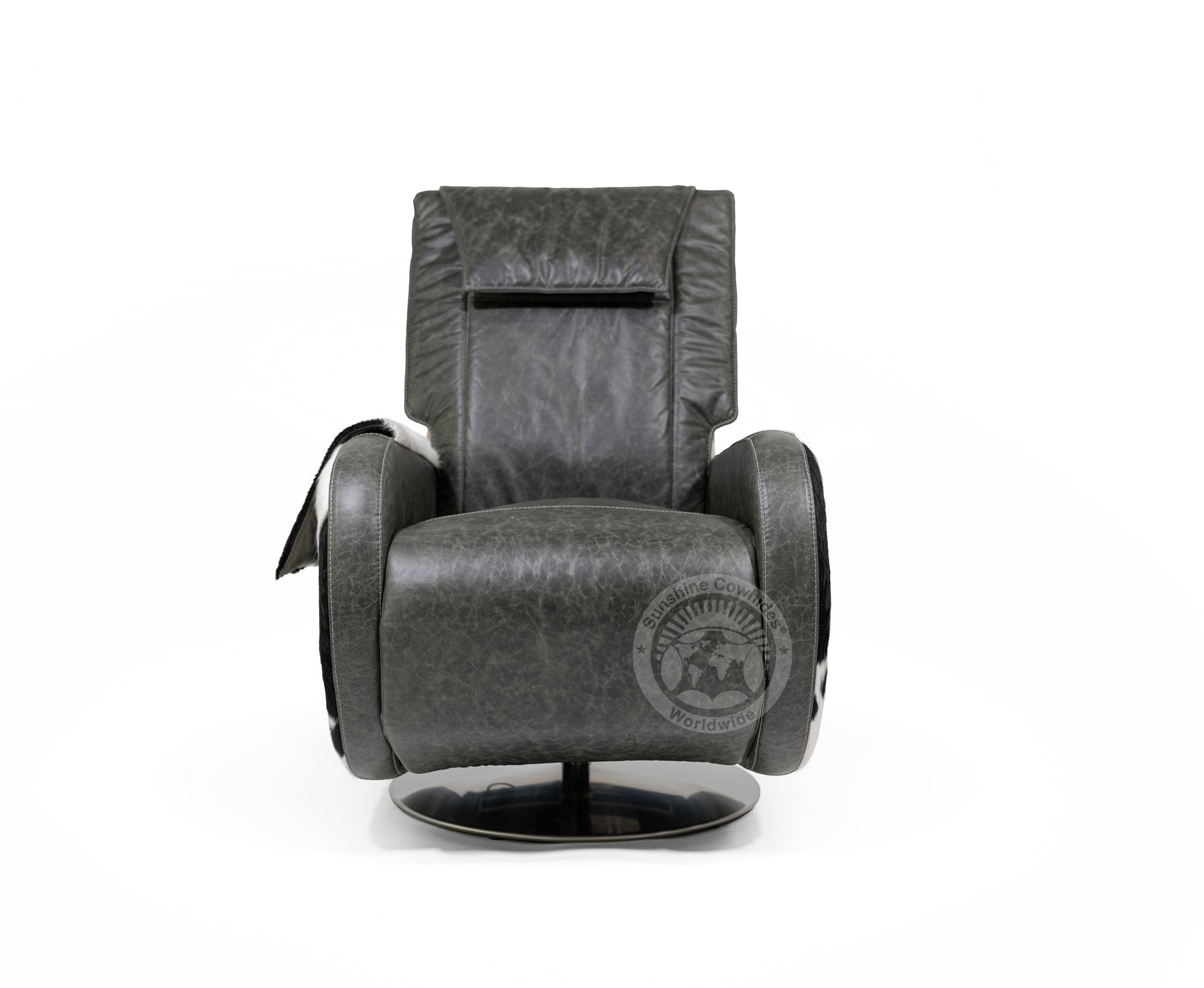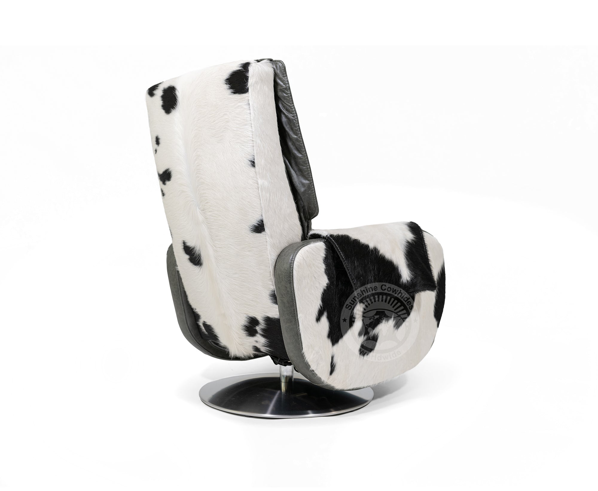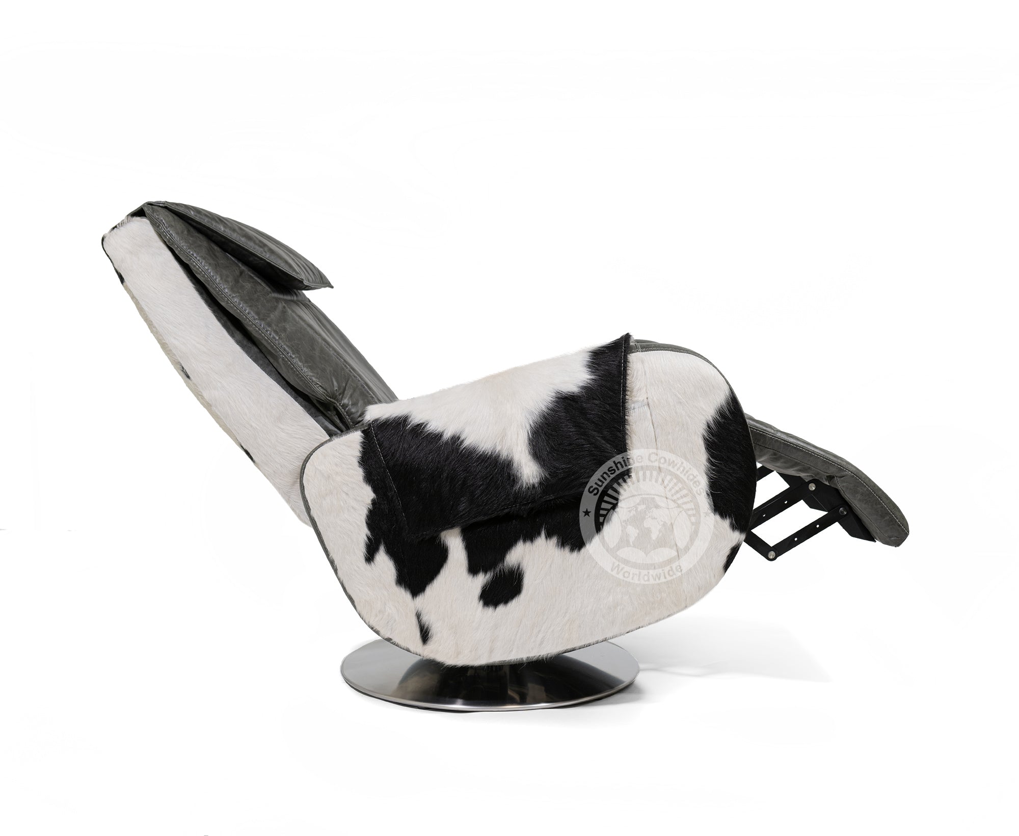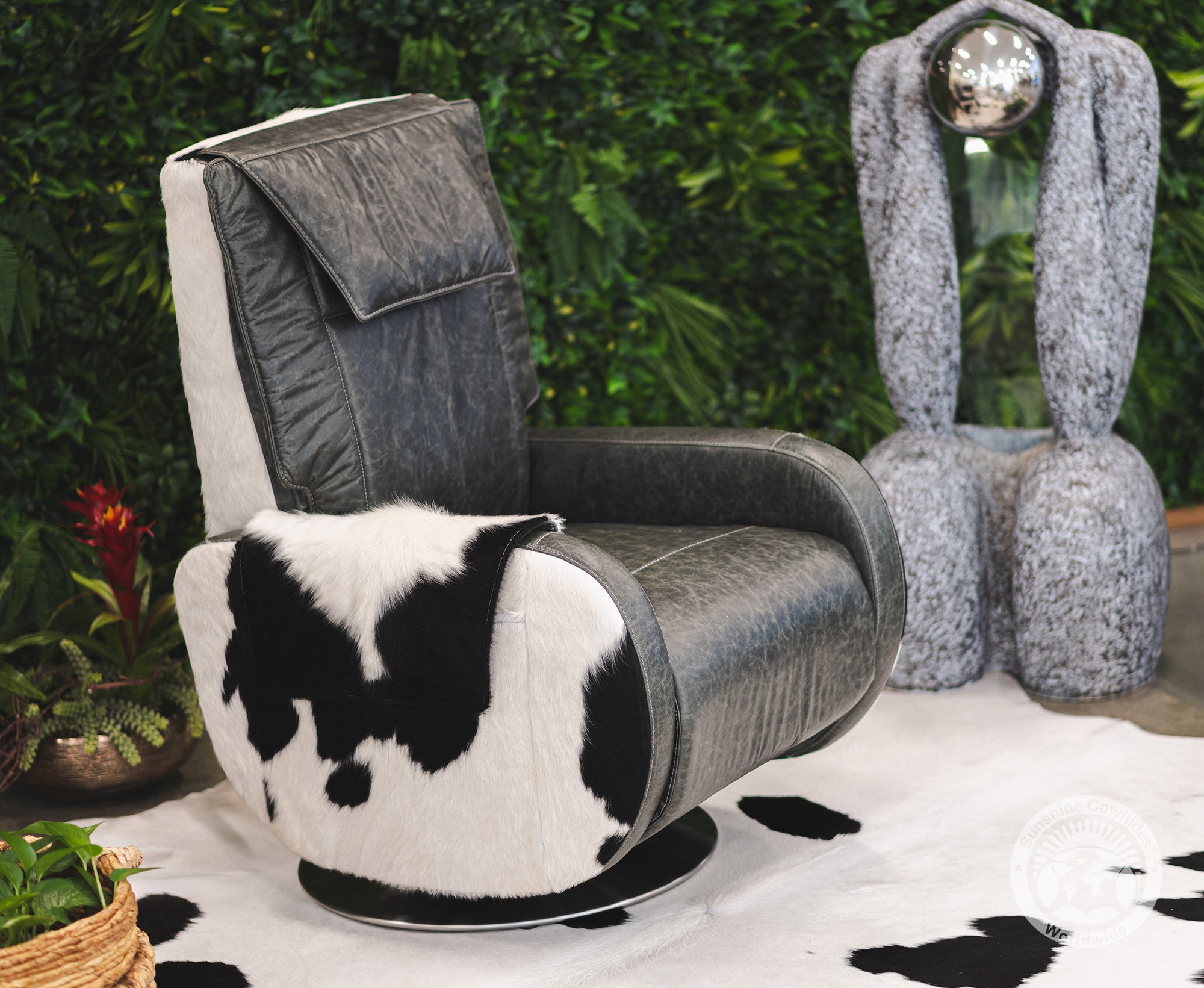 Executive Recliner Armchair - Grey Leather with Black and White Cowhide Accents