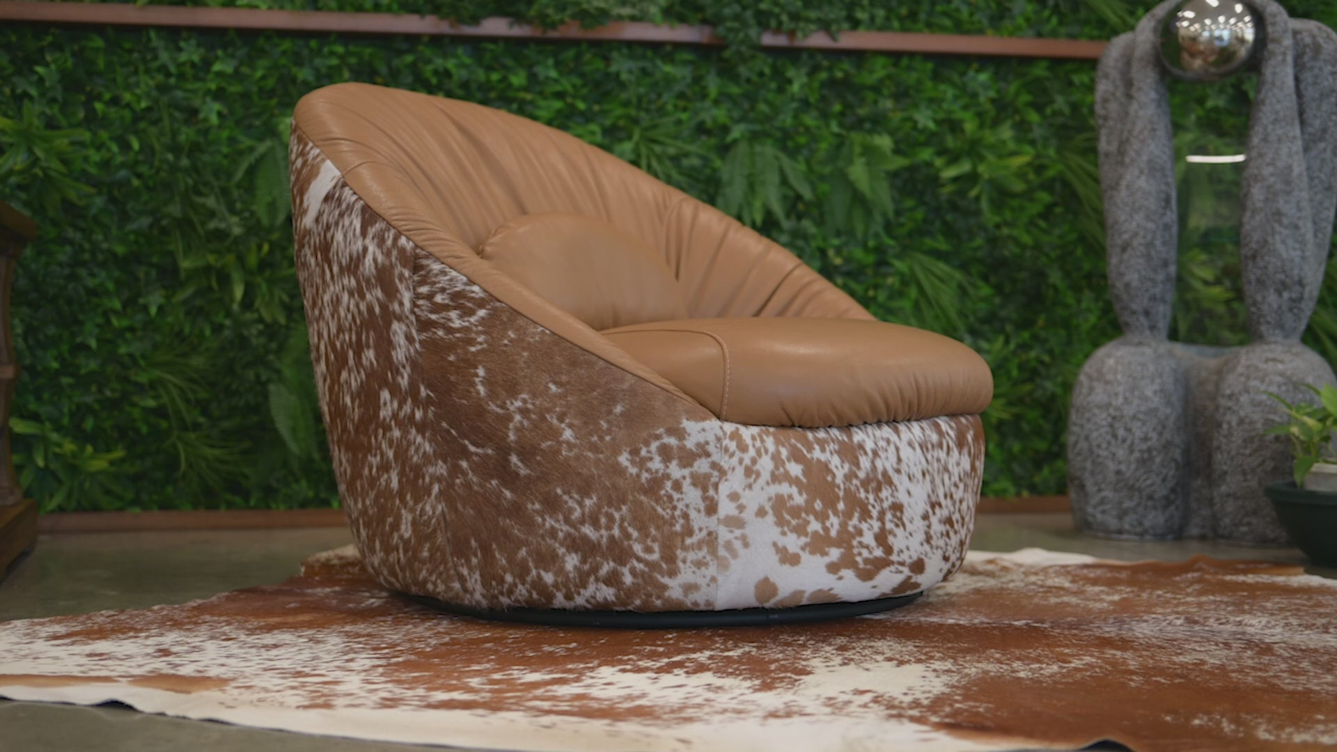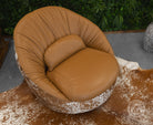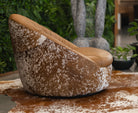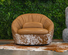 Leather Swivel Chaise with Hair On Cowhide Accents