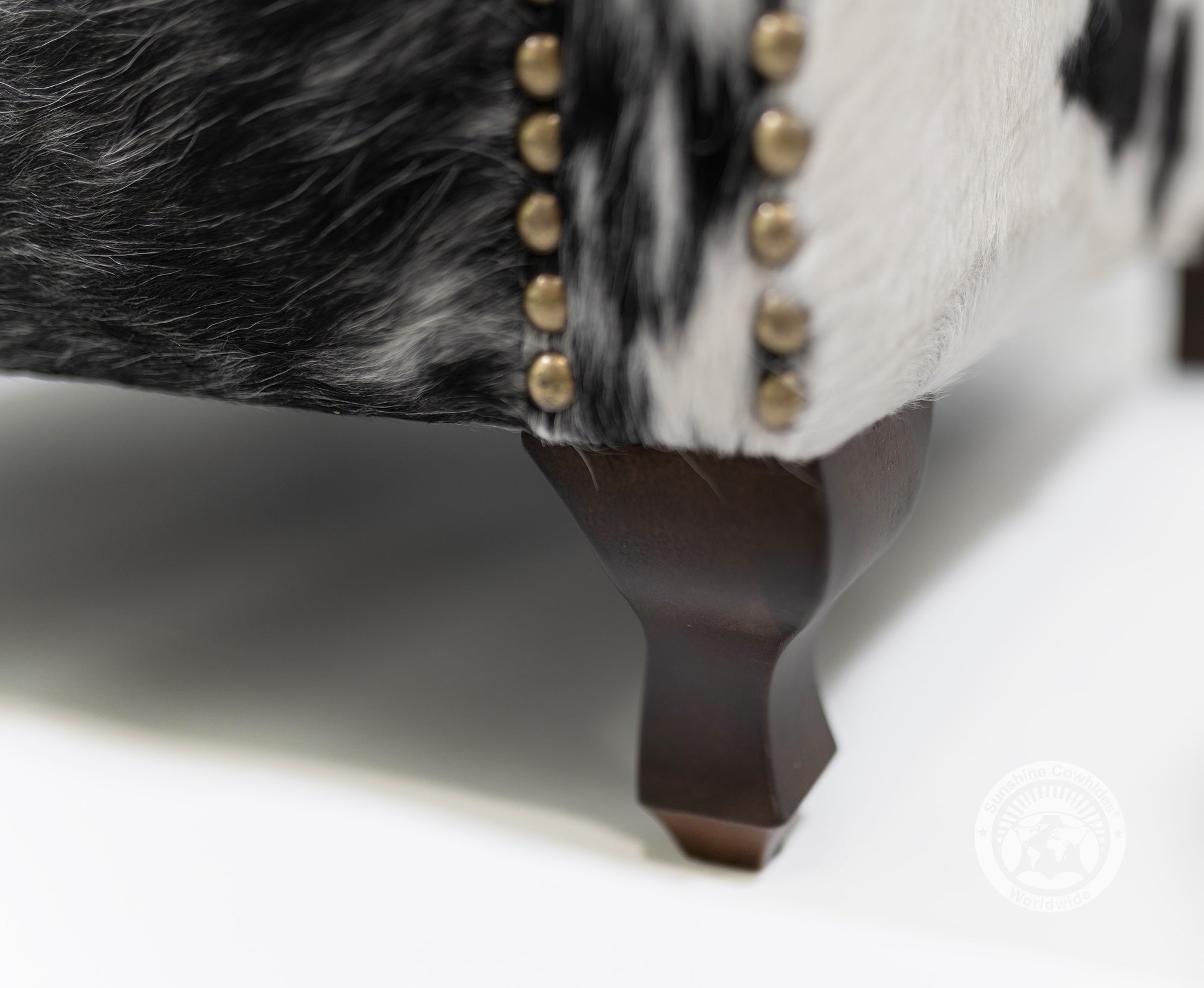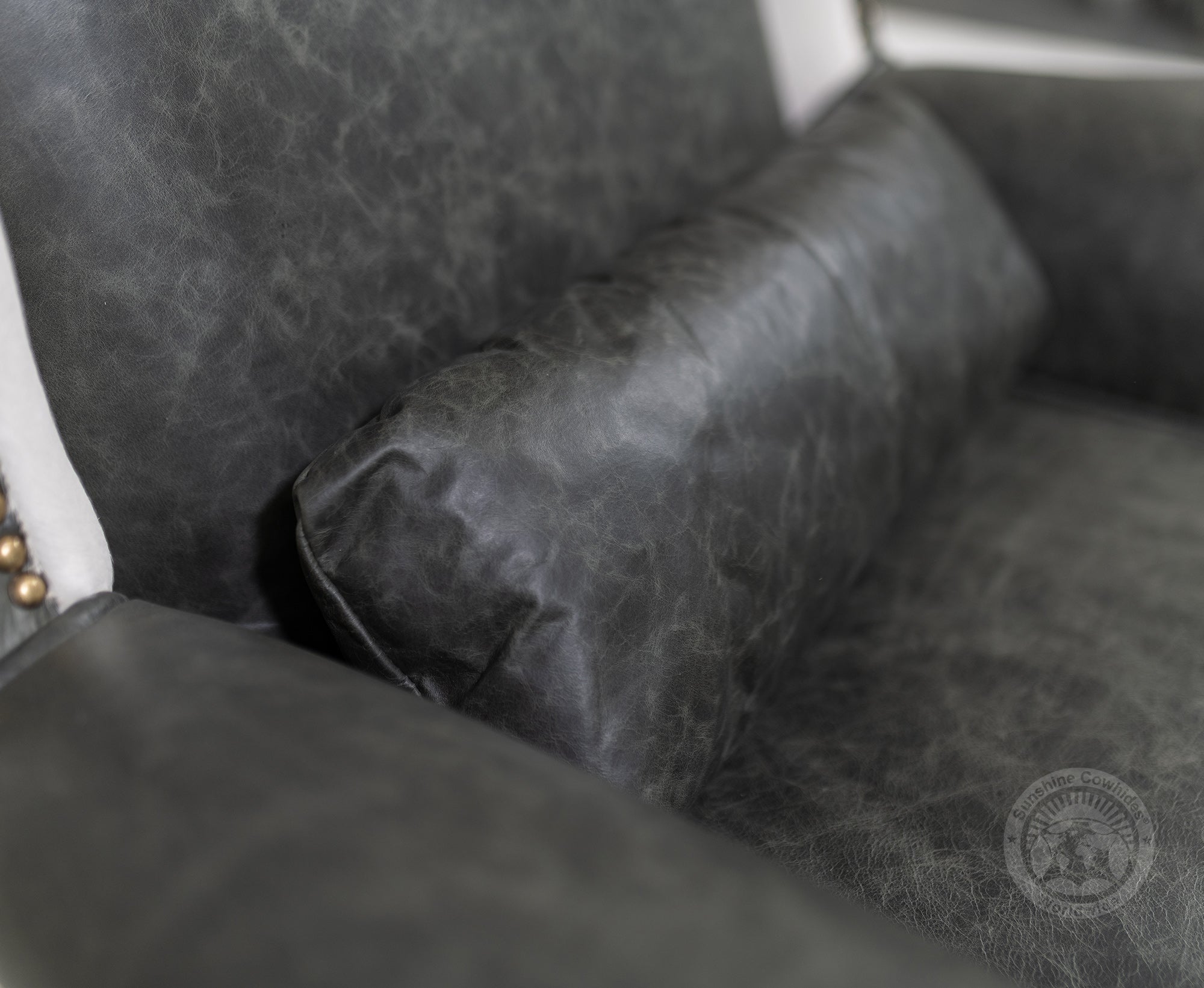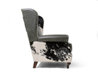 Wingback Chair - Grey Leather with Black & White Cowhide Accents