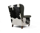 Leather Wingback Chair with Hair On Cowhide Accents