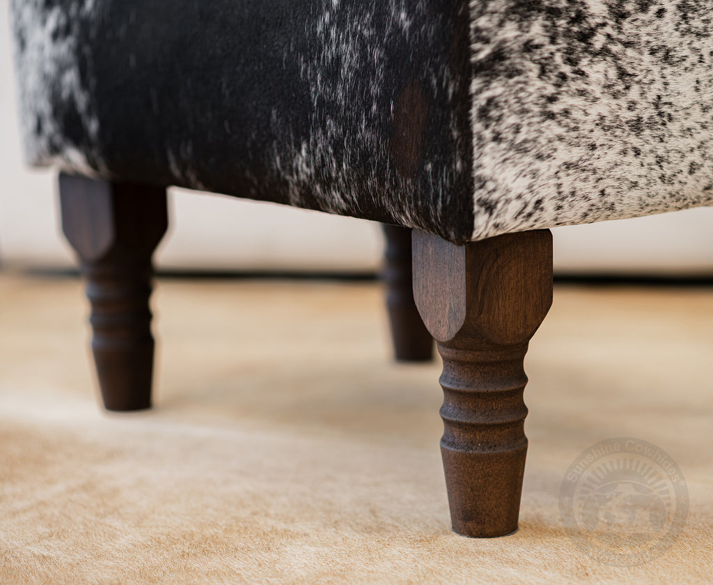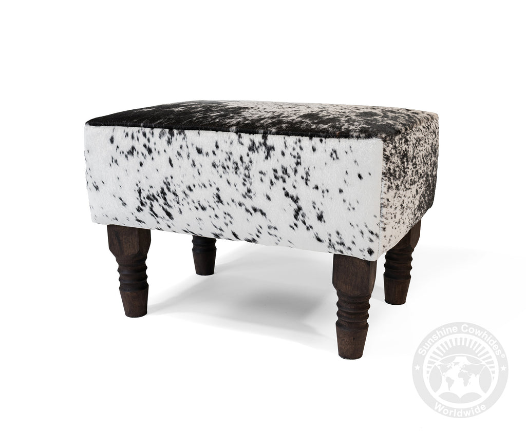 Cowhide Footstool with Wooden Legs - Salt & Pepper Black & White