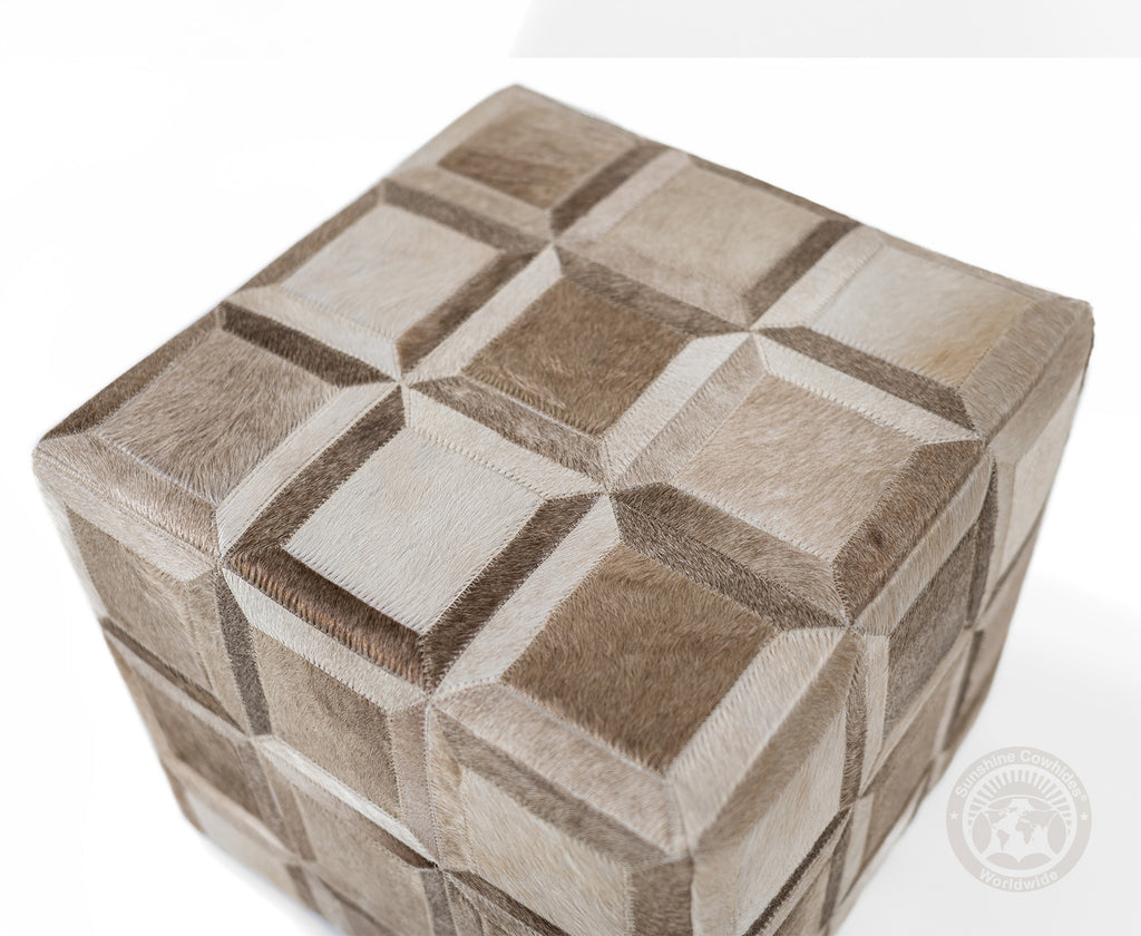 Cowhide Ottoman Patchwork Taupe - Champagne tones