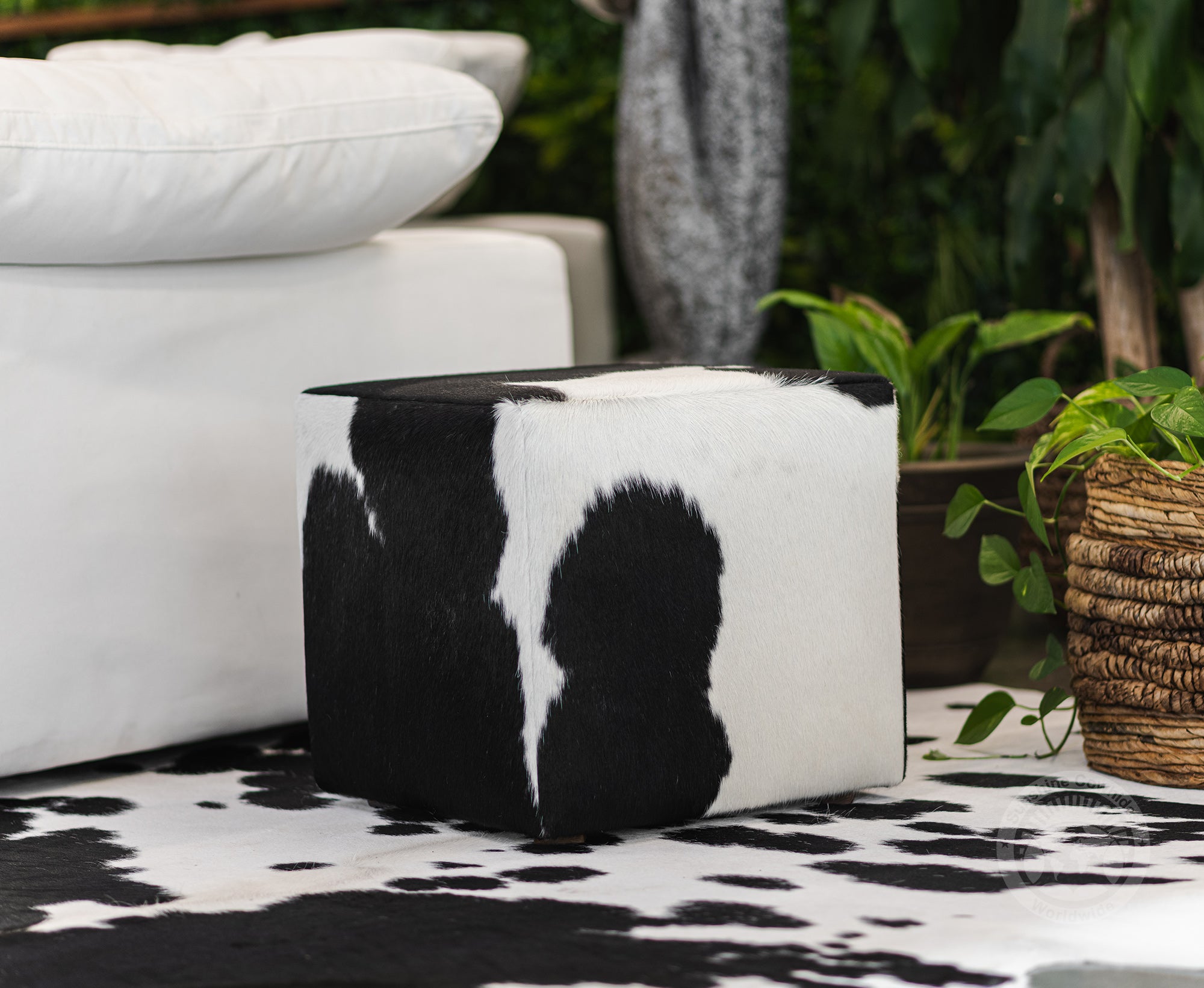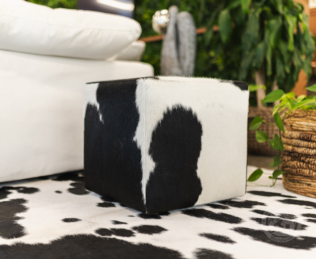Cowhide Ottoman Black & White