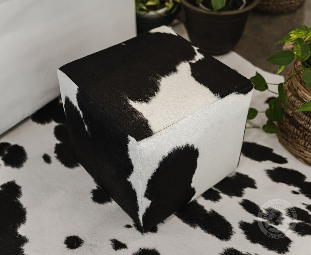 Cowhide Ottoman/ Pouf - Black & White