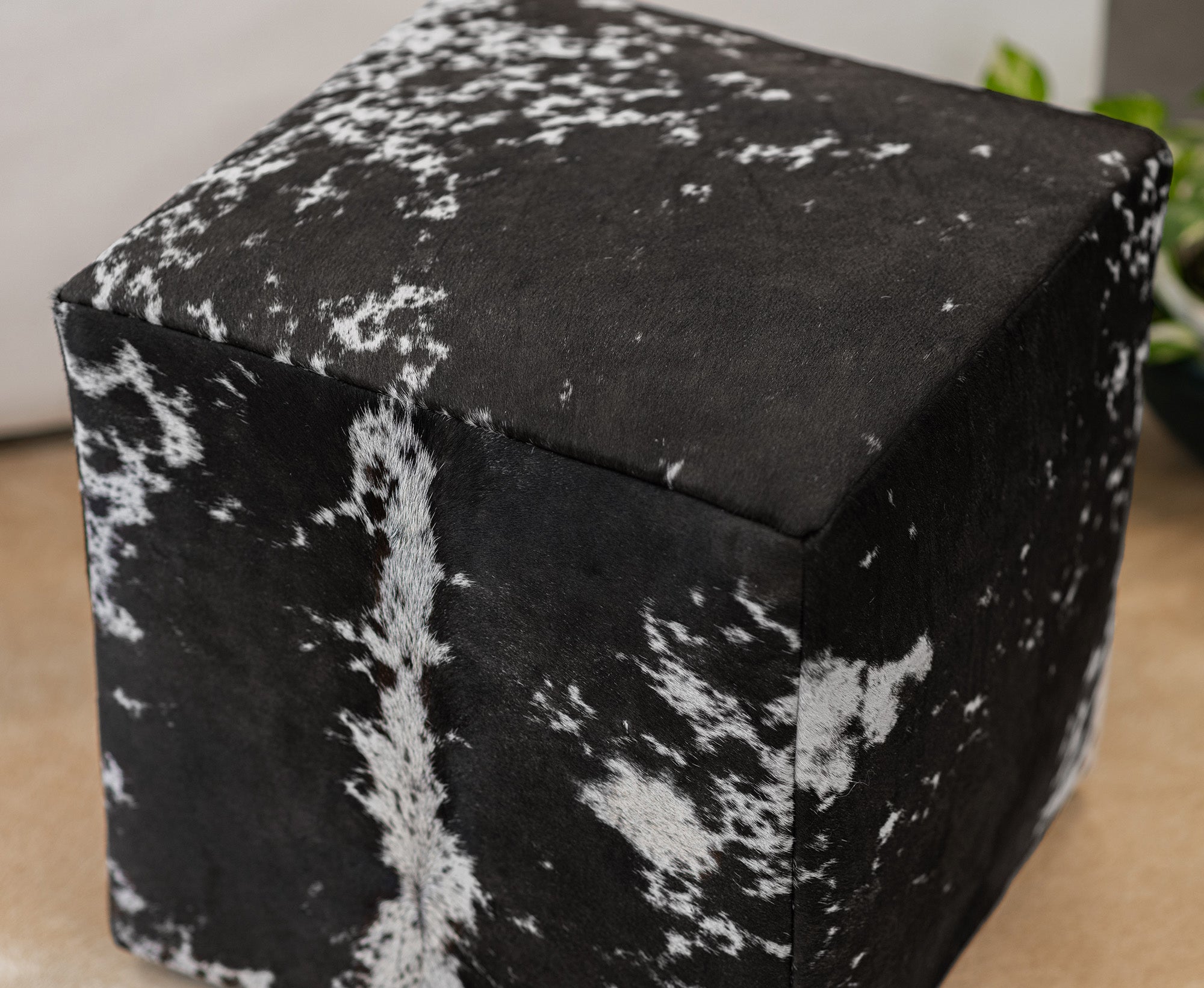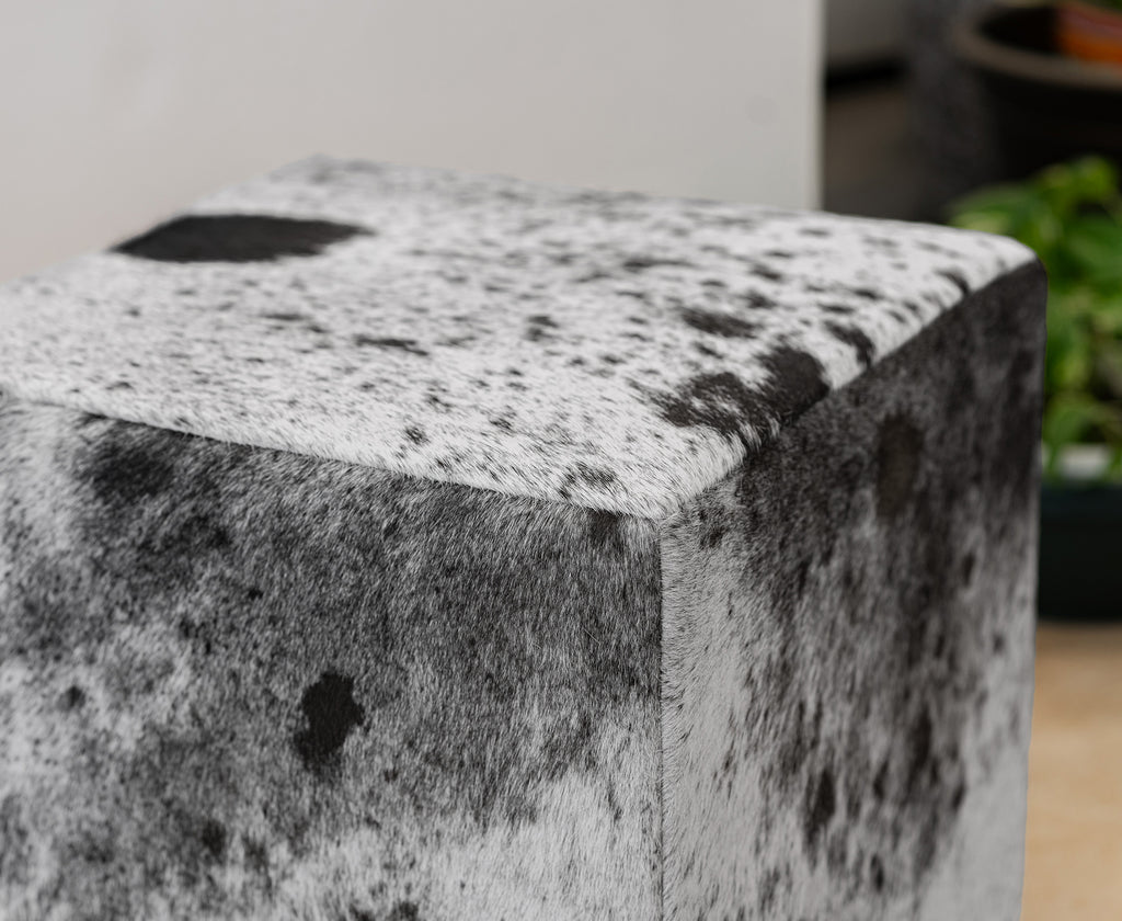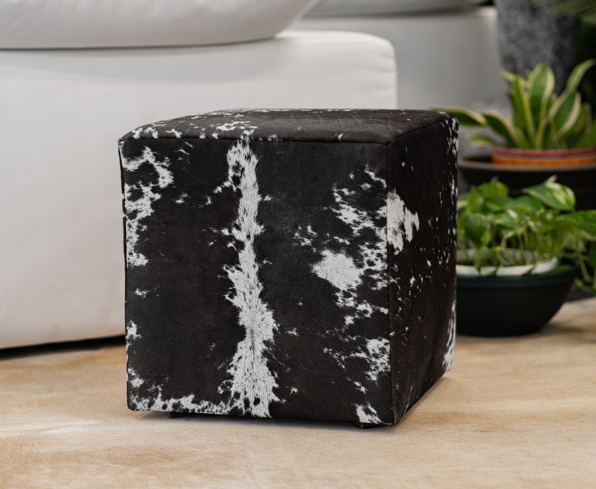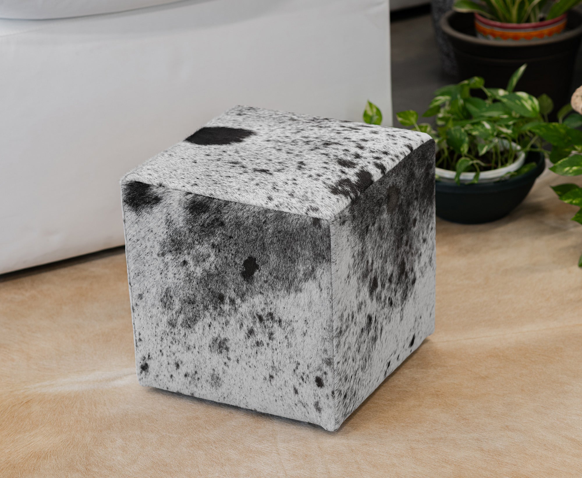 Cowhide Ottoman/ Pouf - Salt & Pepper Black and White