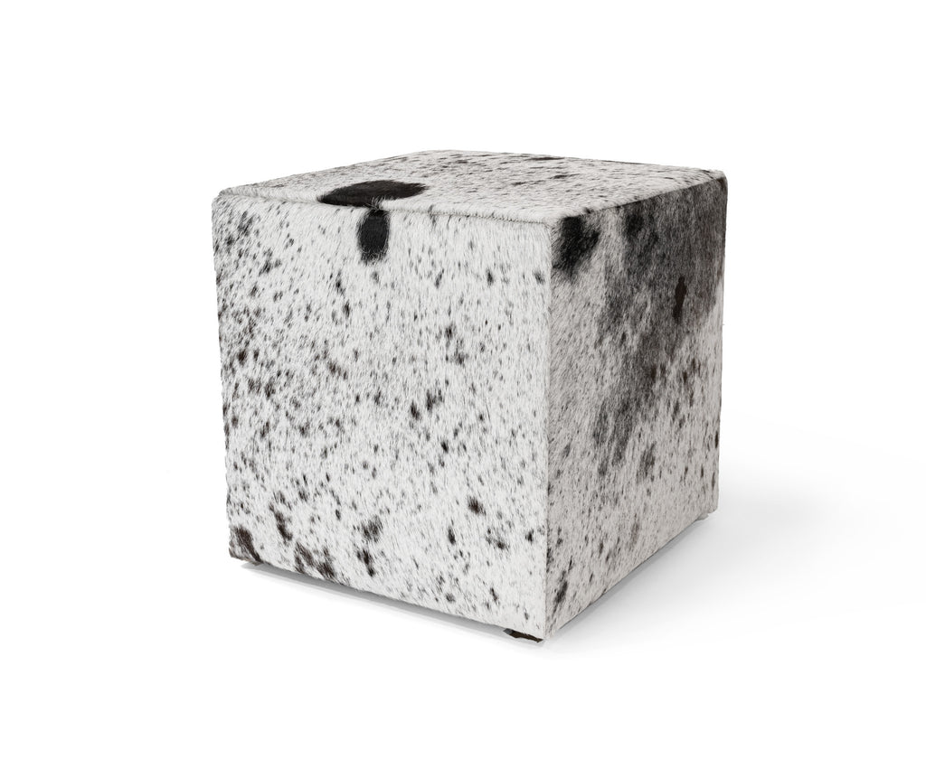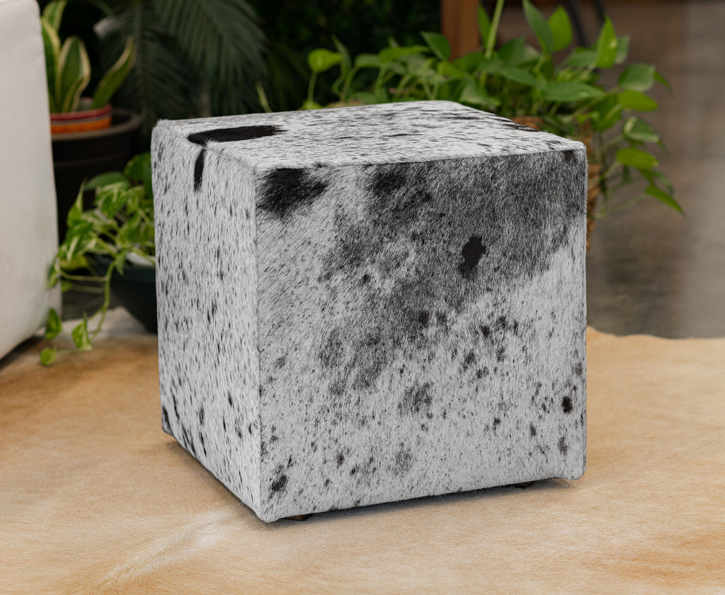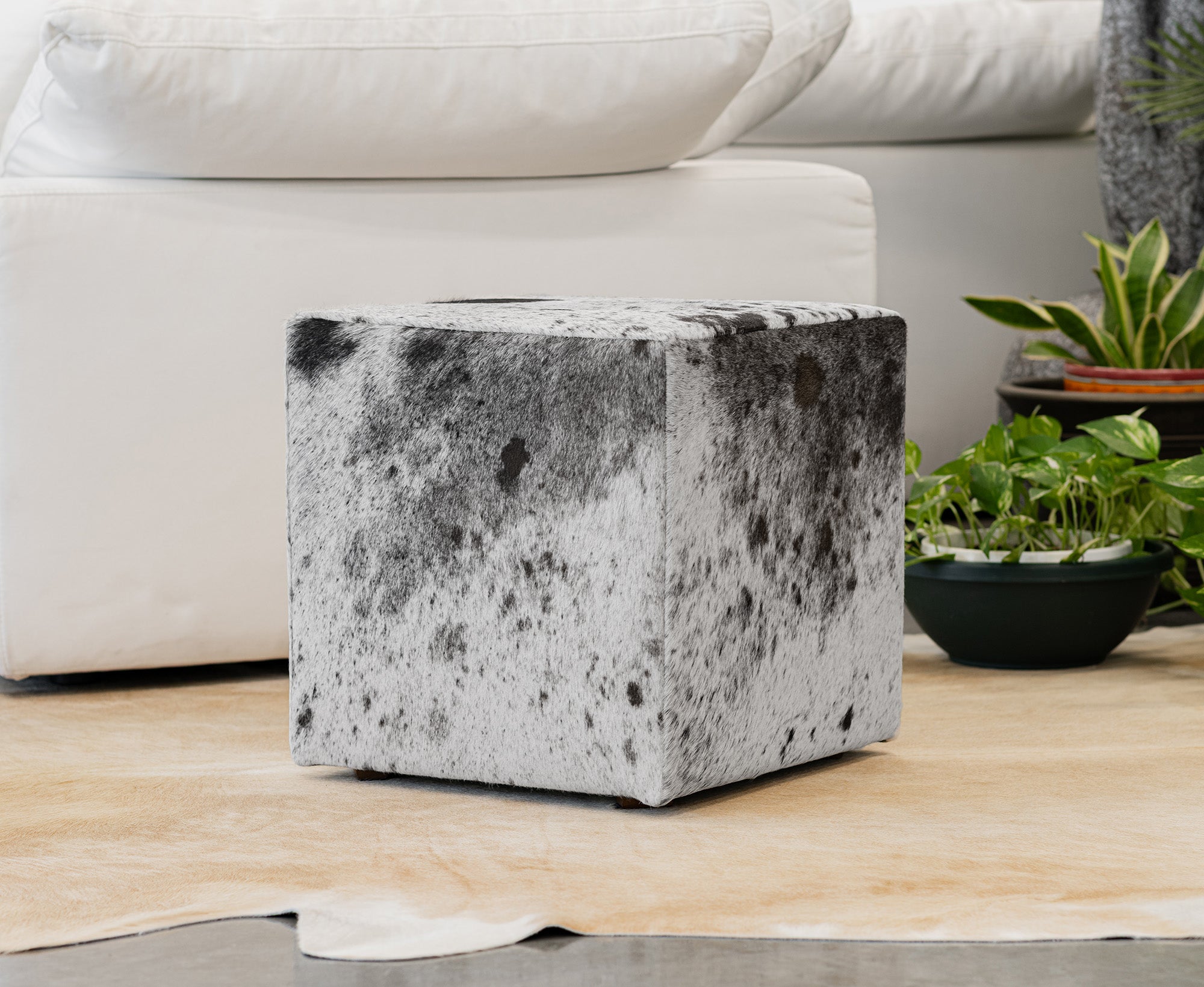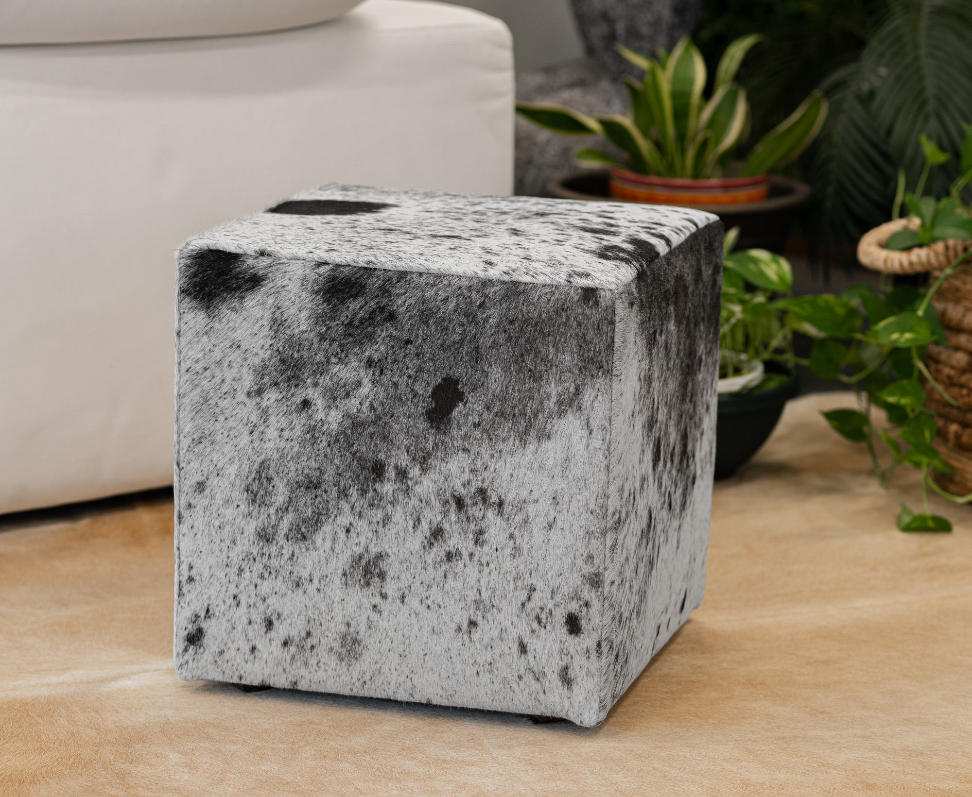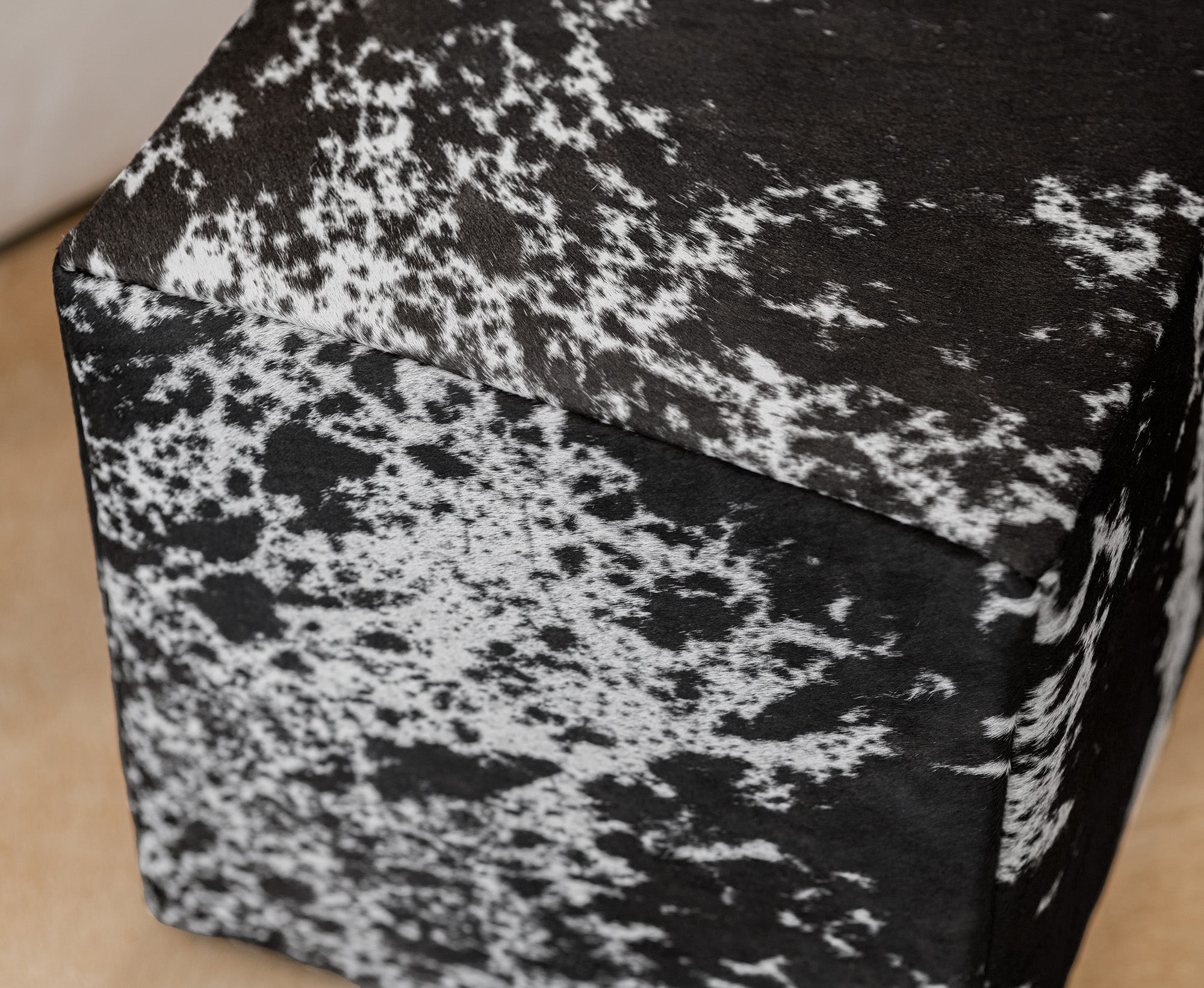Cowhide Ottoman/ Pouf - Salt & Pepper Black and White