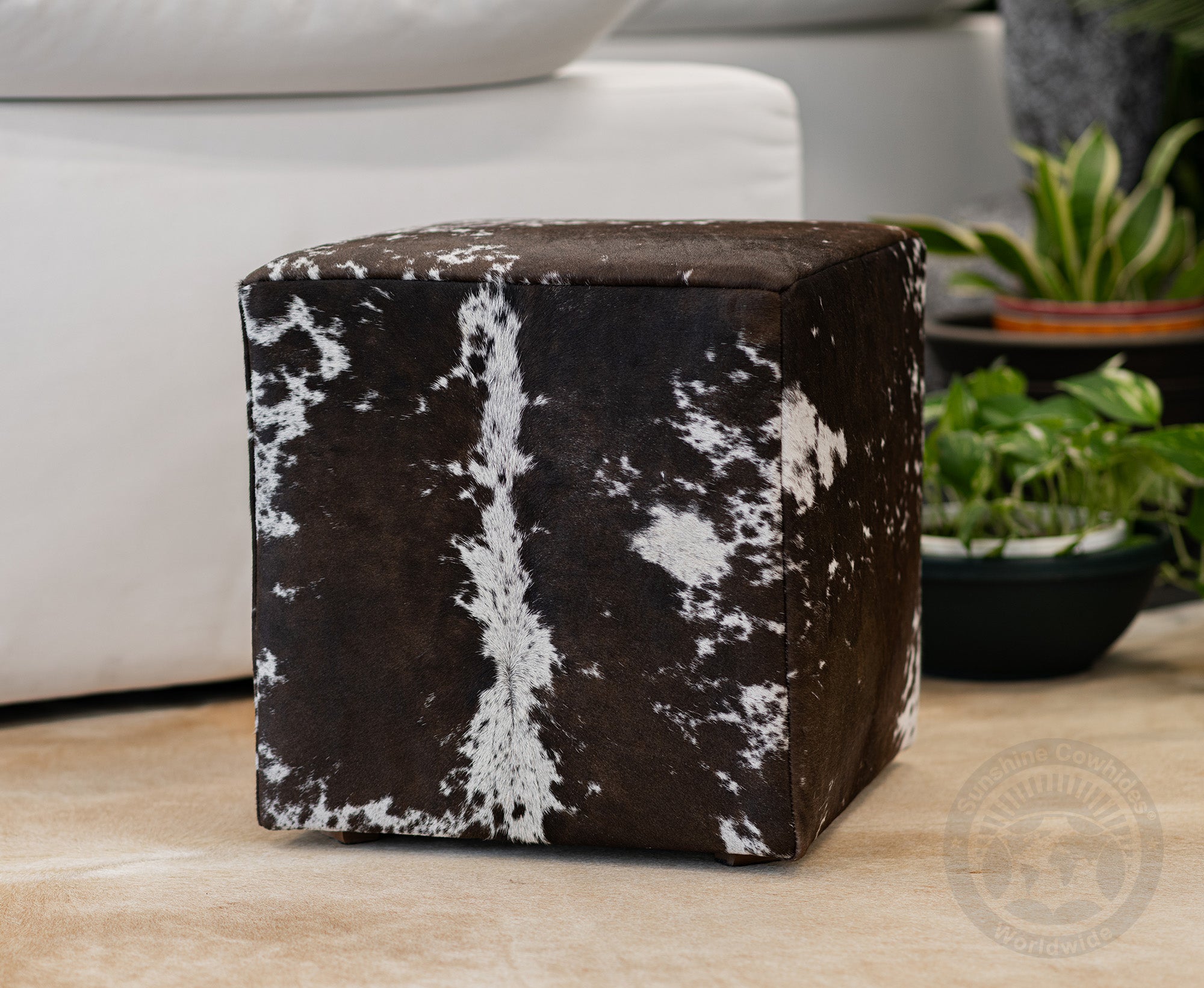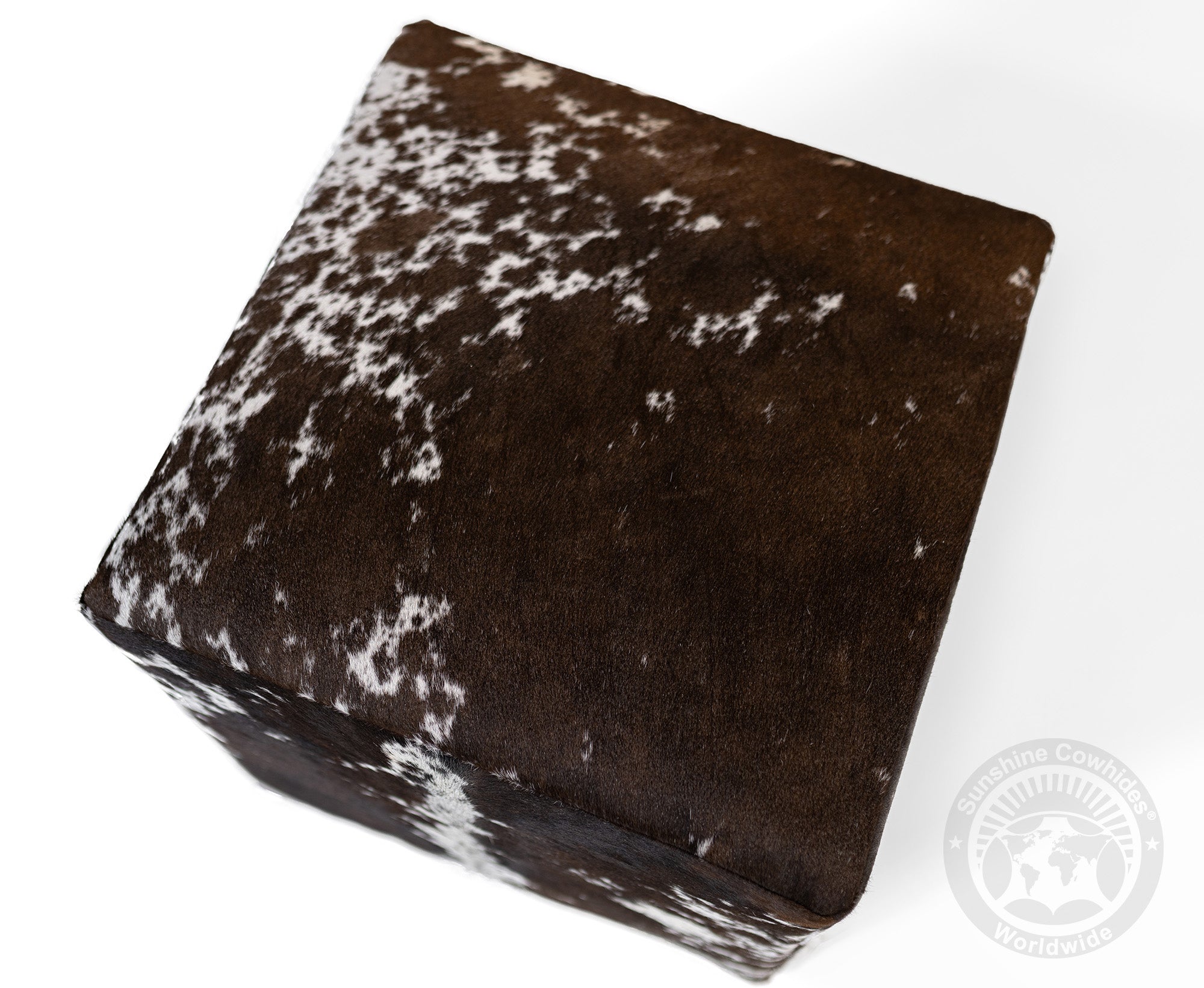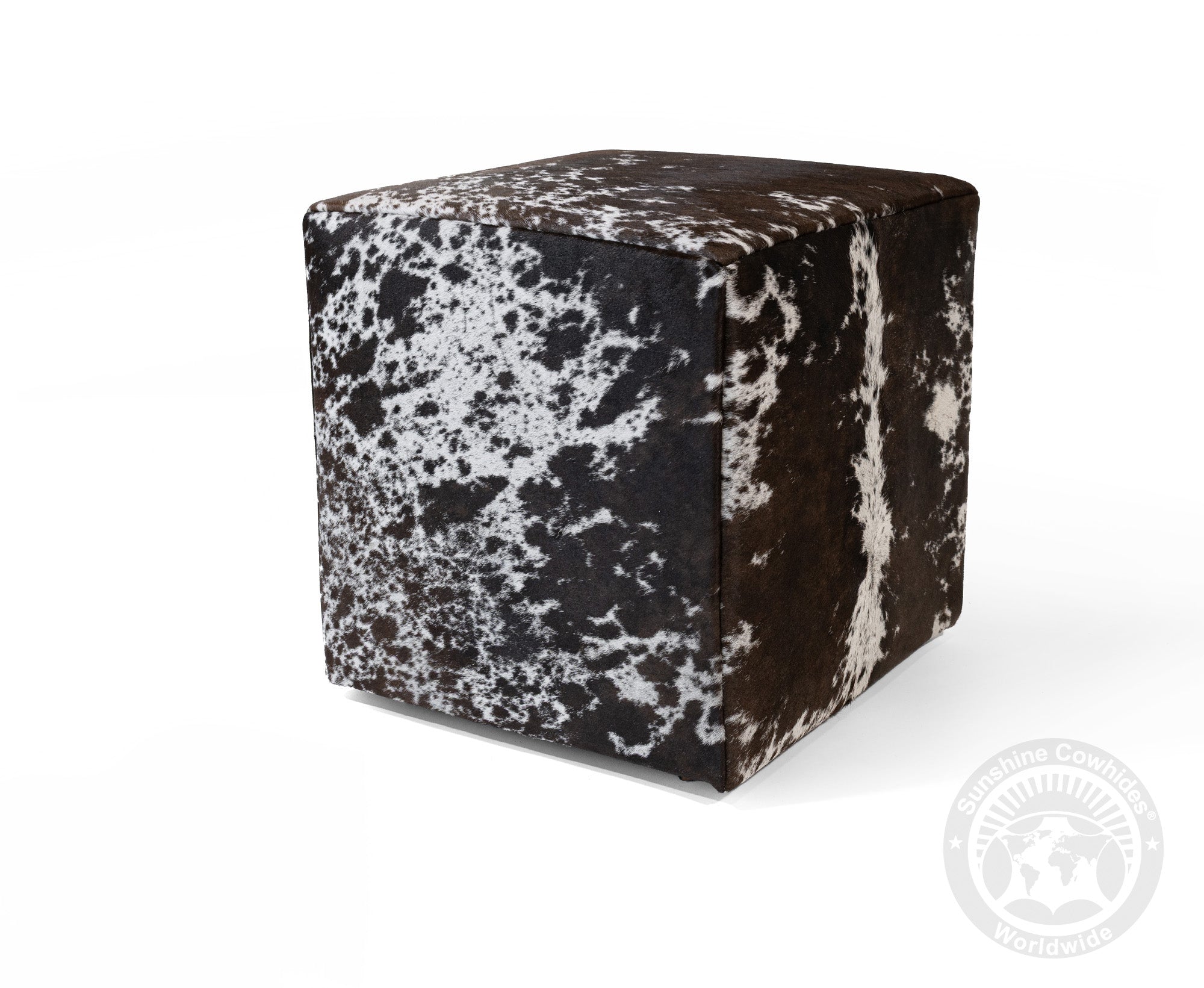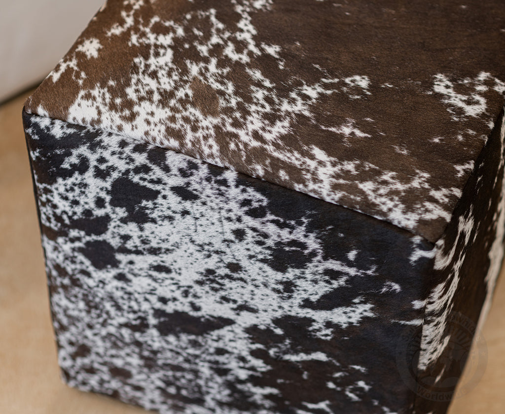 Cowhide Ottoman Salt & Pepper Tricolor Dark