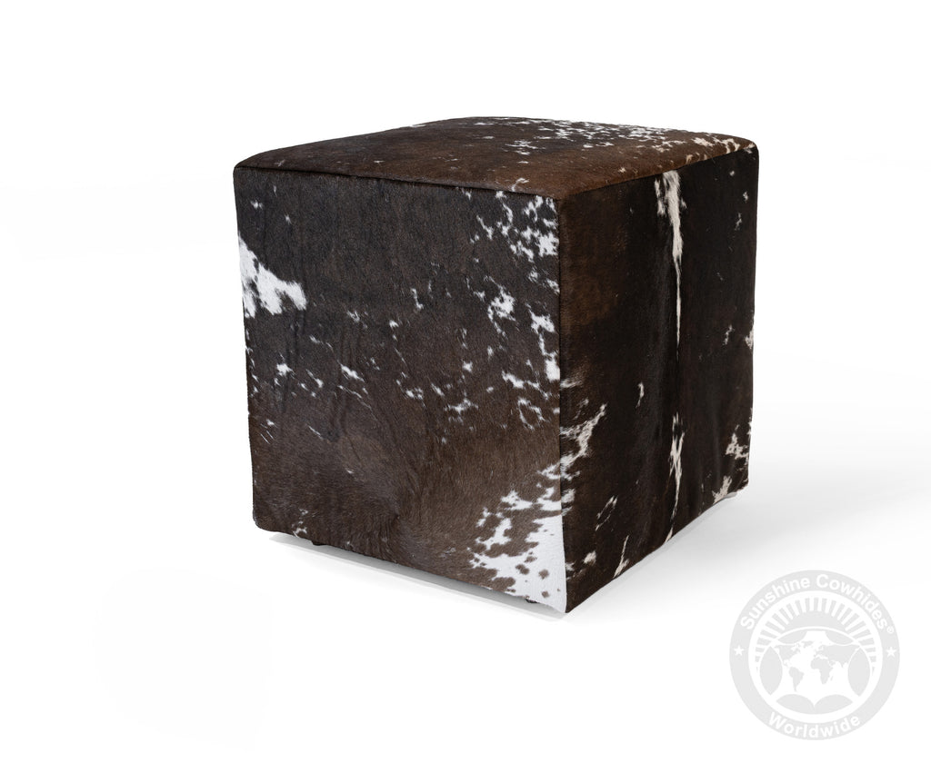 Cowhide Ottoman/ Pouf - Salt & Pepper Tricolor dark