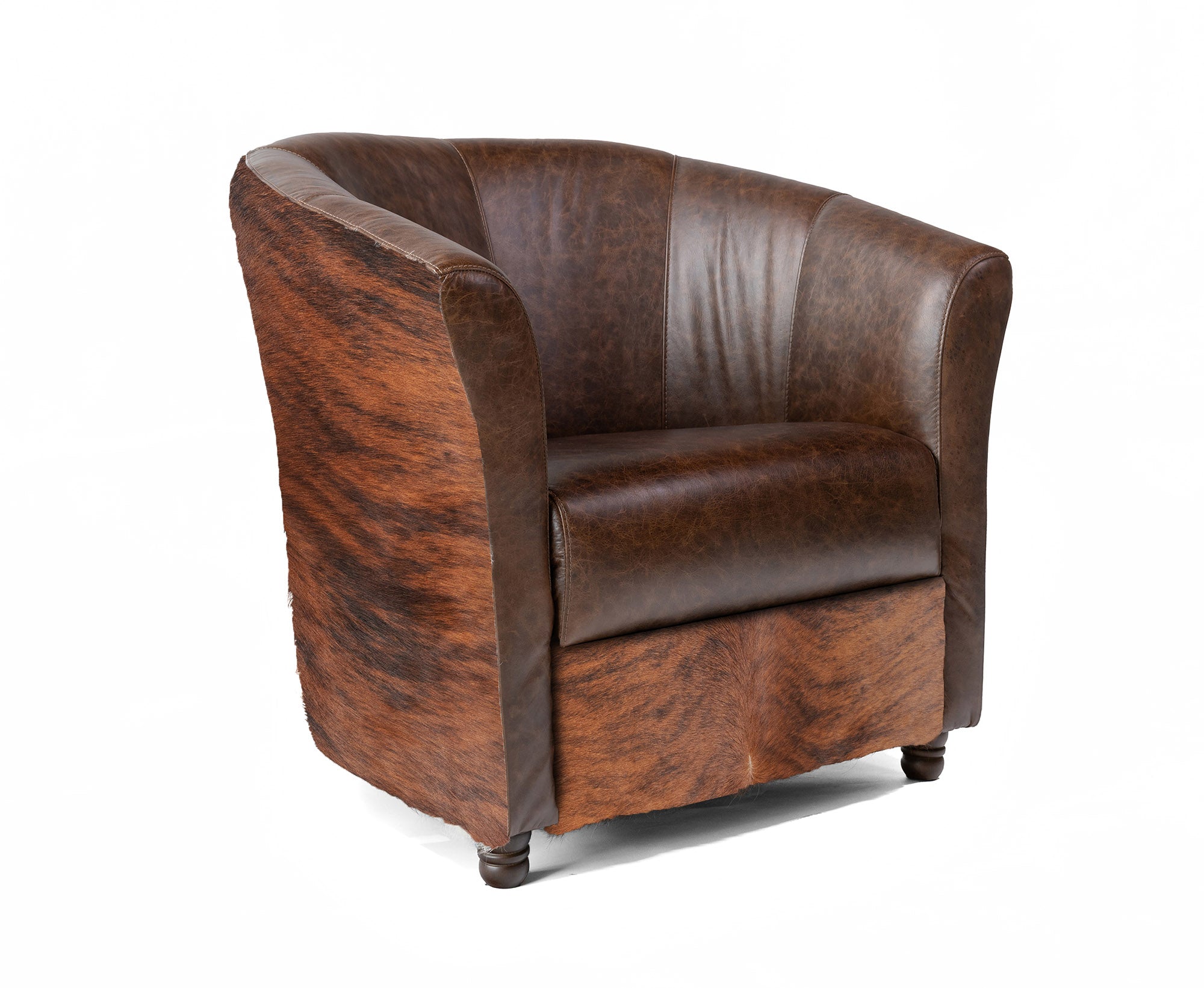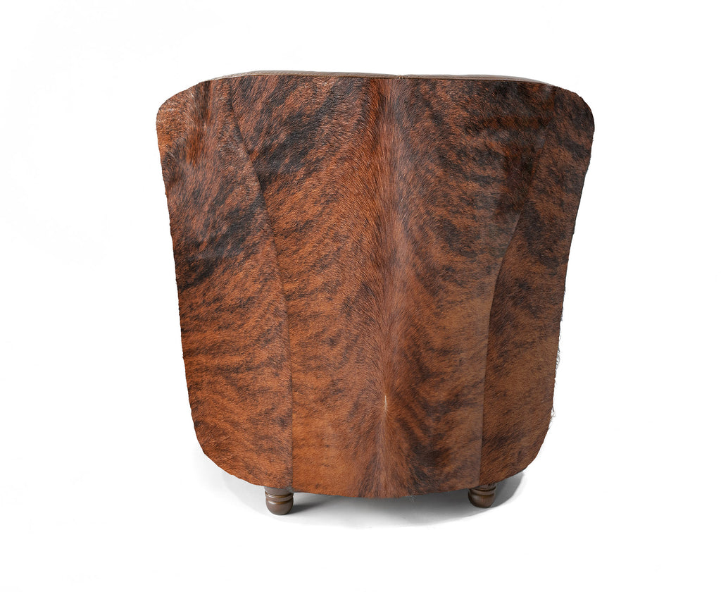 Custom Leather Barrel Chair - Brown Leather with Brindle Medium Cowhide Accents