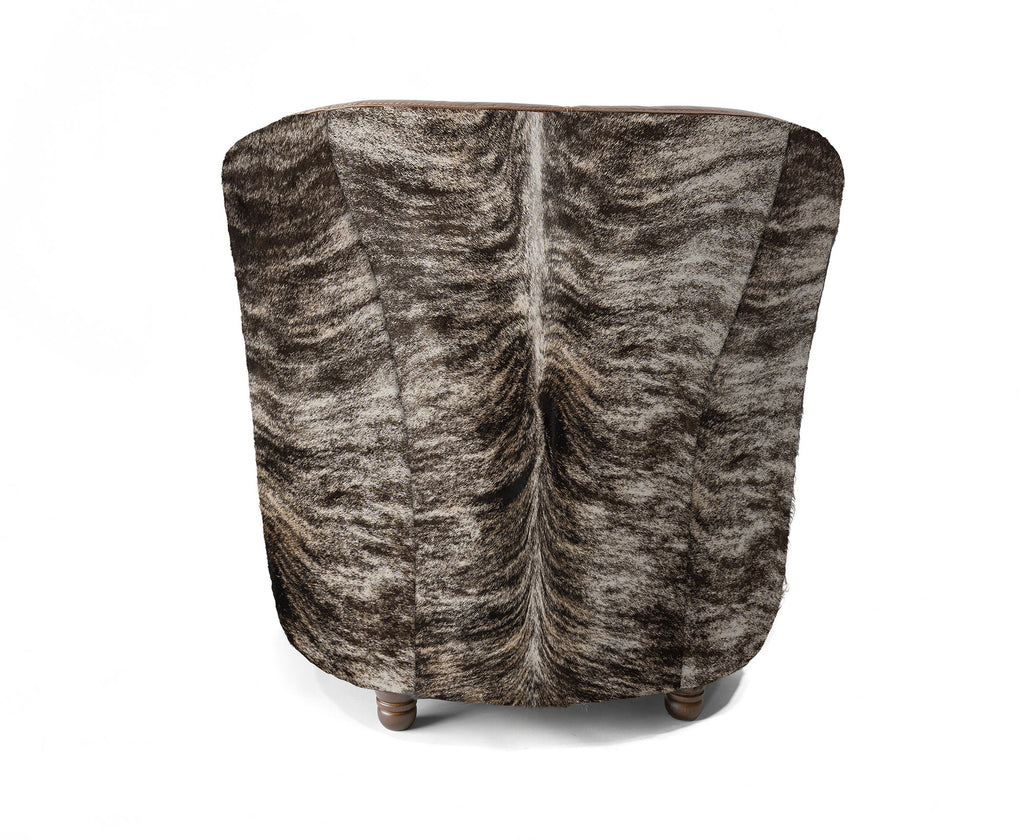 Custom Leather Barrel Chair - Brown Leather with Dark Brindle Cowhide Accents