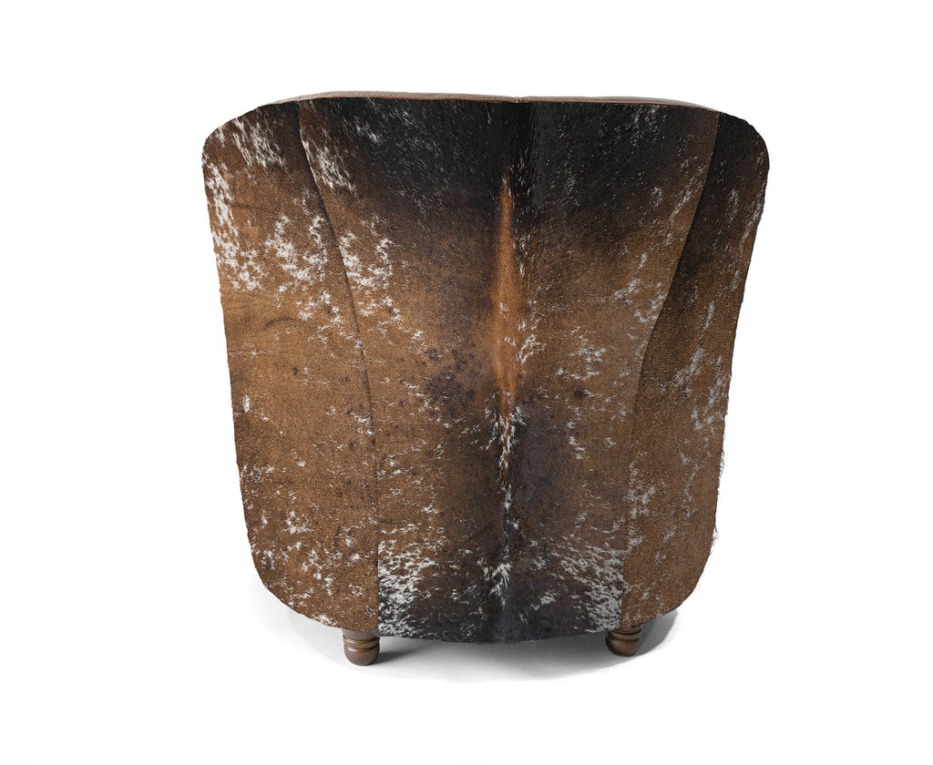 Custom Leather Barrel Chair - Brown Leather with Salt & Pepper Tricolor Cowhide Accents
