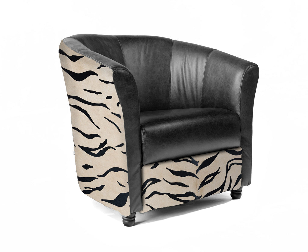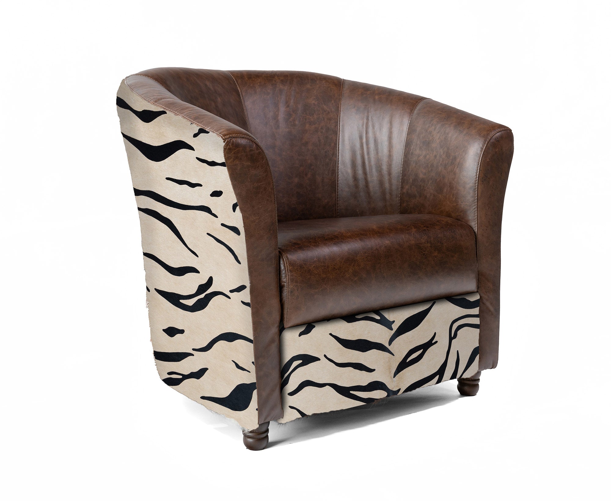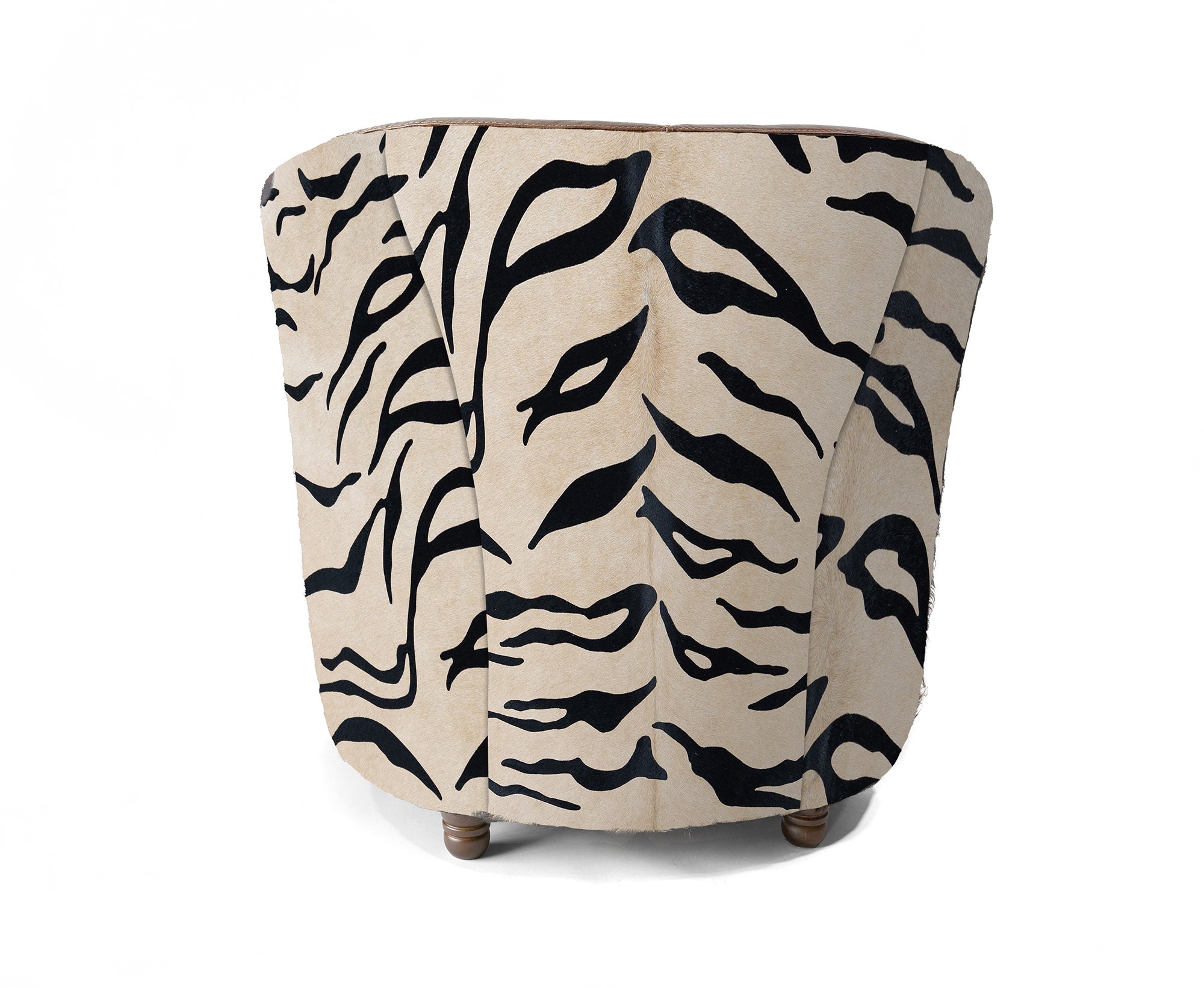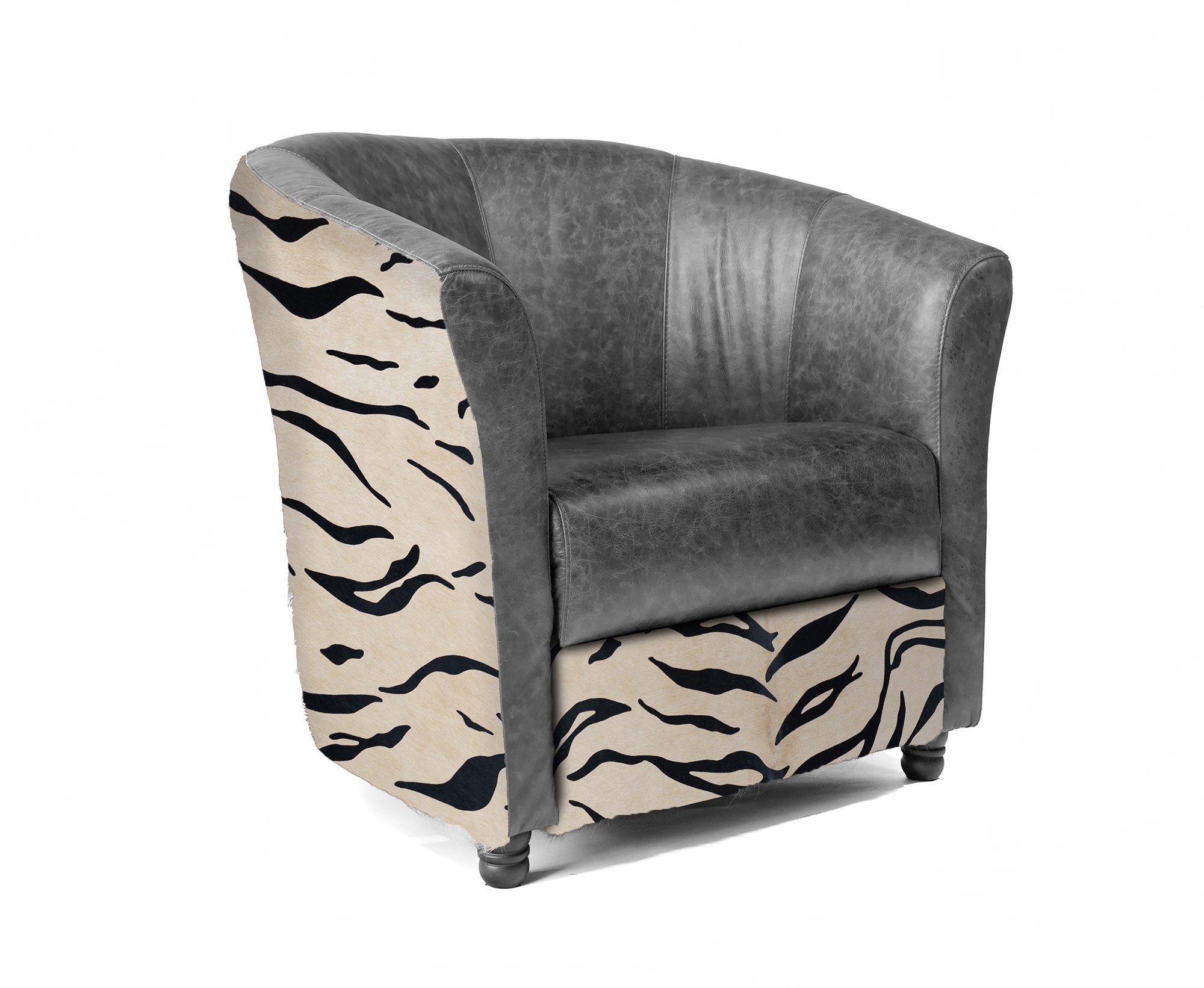 Custom Leather Barrel Chair - Grey/black/Brown Leather with Tiger Animal Print Cowhide Accents